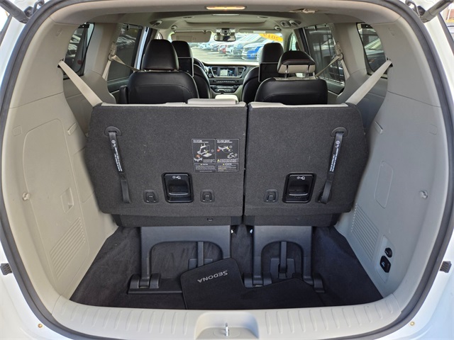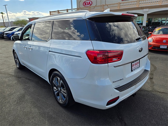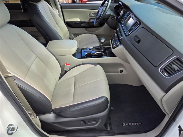 Snow White Pearl 2019 Kia Sedona SX FWD 8-Speed Automatic 3.3L V6 DGIIf you don't drive here, you can't save here!Price may not include recon fee. 3.041 Axle Ratio, 3rd row seats: split-bench, 4-way Power Driver's Lumbar Support, 4-Wheel Disc Brakes, 8 Speakers, 8-Way Power Driver Seat, 8-Way Power Passenger Seat, ABS brakes, Air Conditioning, Alloy wheels, AM/FM radio: SiriusXM, Apple CarPlay & Android Auto, Auto High-beam Headlights, Auto-dimming Rear-View mirror, Automatic temperature control, Brake assist, Bumpers: body-color, CD player, Compass, Delay-off headlights, Driver door bin, Driver vanity mirror, Driver's Seat & Mirrors Memory System, Dual front impact airbags, Dual front side impact airbags, Dual Screen Rear Seat Entertainment System, Electronic Stability Control, Emergency communication system, Four wheel independent suspension, Front anti-roll bar, Front Bucket Seats, Front Center Armrest, Front dual zone A/C, Front fog lights, Front reading lights, Fully automatic headlights, Garage door transmitter: HomeLink, harman/kardon® Speakers, Heated & Ventilated Front Captain Seats, Heated door mirrors, Heated front seats, Heated steering wheel, Illuminated entry, Leather Shift Knob, Leather steering wheel, Leather-Trimmed Seats, Low tire pressure warning, Memory seat, Navigation System, Occupant sensing airbag, Outside temperature display, Overhead airbag, Overhead console, Panic alarm, Passenger door bin, Passenger vanity mirror, Power door mirrors, Power driver seat, Power Liftgate, Power moonroof, Power passenger seat, Power steering, Power windows, Radio: AM/FM/MP3 Audio System, Rear air conditioning, Rear anti-roll bar, Rear reading lights, Rear Seat Entertainment System, Rear window defroster, Rear window wiper, Reclining 3rd row seat, Remote keyless entry, Remote Start (Push-Button Start), Roof rack: rails only, Security system, Speed control, Speed-sensing steering, Split folding rear seat, Spoiler, Steering wheel mounted audio controls, Tachometer, Telescoping steering wheel, Tilt steering wheel, Traction control, Trip computer, Turn signal indicator mirrors, Variably intermittent wipers, Ventilated front seats, and Wheels: 18" x 7.0J Alloy w/Premium Machined Finish.