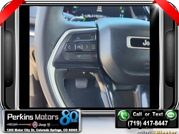 Baltic Gray Metallic Clearcoat 4WD 2.0L I4 DOHC 8-Speed Automatic<br><br>2.0L I4 DOHC, 4WD.<br><br><br>CARFAX One-Owner.<br><br>Check us out at www.perkinsmotors.com to see our specials! Since opening our doors in 1944, we’ve been proud to serve Colorado Springs, CO, and the surrounding areas of Pueblo, Castle Rock and Denver, CO. Throughout this time of being family owned for 80 years, we’ve maintained a firm commitment to our customers: to offer a wide selection of New Chrysler, Dodge, Fiat, Jeep, and Ram vehicles and quality pre-owned vehicles, and provide a quick, no-hassle car-buying process that ensures everyone drives off the lot satisfied with their purchase.<br><br><br>Advanced Protech Group II (Intersection Collision Assist System, Night Vision/Pedestrian-Animal Detection, ParkSense Front/Rear Park Assist w/Stop, and Surround View Camera System), Luxury Tech Group III (2nd-Row Manual Window Shades, Hands-Free Power Liftgate, Memory Steering Column, Passive Entry - Front/Rear Doors, Liftgate, Power Tilt/Telescope Steering Column, Rain Sensitive Windshield Wipers, Rearview Autodim Digital Display Mirror, and Wireless Charging Pad), Quick Order Package 27K, Two Tone Paint Group, 2.0L I4 DOHC, 4WD, 10 Speakers, 3.70 Rear Axle Ratio, 4-Wheel Disc Brakes, ABS brakes, Adaptive suspension, Air Conditioning, Alloy wheels, AM/FM radio: SiriusXM with 360L, Anti-whiplash front head restraints, Audio memory, Auto High-beam Headlights, Auto-dimming door mirrors, Auto-dimming Rear-View mirror, Auto-leveling suspension, Automatic temperature control, Brake assist, Bumpers: body-color, Capri Leather/Suede Seats, Compass, Cruise Control, Delay-off headlights, Driver door bin, Driver vanity mirror, Dual front impact airbags, Dual front side impact airbags, Electronic Stability Control, Four wheel independent suspension, Front anti-roll bar, Front Bucket Seats, Front Center Armrest w/Storage, Front dual zone A/C, Front fog lights, Front License Plate Bracket, Front reading lights, Fully automatic headlights, Garage door transmitter, Heated door mirrors, Heated front seats, Heated rear seats, Heated steering wheel, Heavy Duty Suspension, Illuminated entry, Knee airbag, Leather Shift Knob, Low tire pressure warning, Memory seat, Navigation System, Occupant sensing airbag, Outside temperature display, Overhead airbag, Overhead console, Panic alarm, Passenger door bin, Passenger vanity mirror, Power door mirrors, Power driver seat, Power Liftgate, Power passenger seat, Power steering, Power windows, Radio data system, Radio: Uconnect 5 Nav w/10.1 Display, Rear anti-roll bar, Rear reading lights, Rear seat center armrest, Rear window defroster, Rear window wiper, Remote keyless entry, Roof rack: rails only, Security system, Speed-Sensitive Wipers, Split folding rear seat, Spoiler, Steering wheel mounted audio controls, Tachometer, Telescoping steering wheel, Tilt steering wheel, Traction control, Trip computer, Turn signal indicator mirrors, Variably intermittent wipers, Ventilated front seats, Voltmeter, and Wheels: 18 x 8 Machined Face/Painted Aluminum.