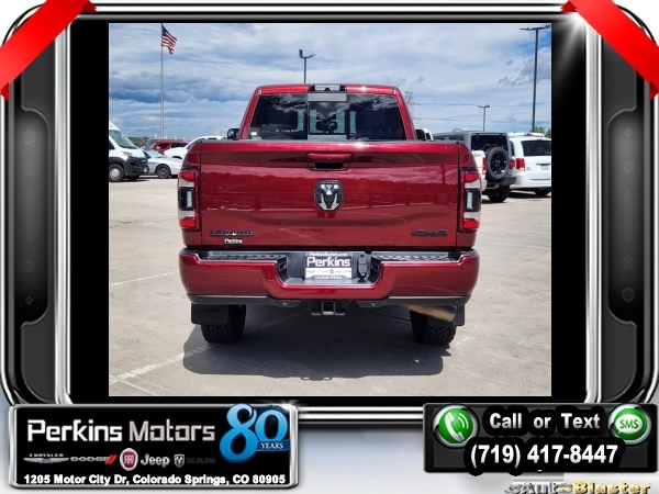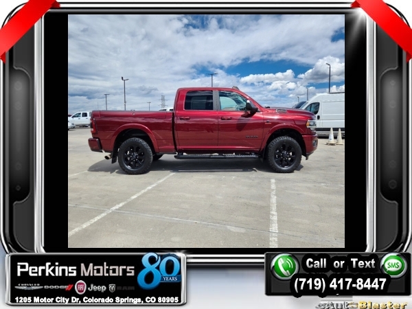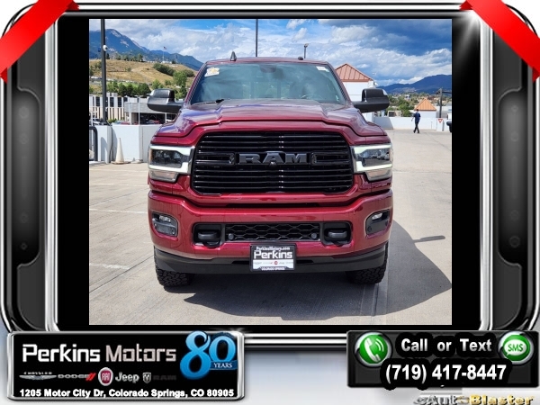 Delmonico Red Pearlcoat 4WD 6.7L I6 Aisin 6-Speed Automatic<br><br>1-Year SiriusXM Guardian Trial, 17 Speaker harman kardon Premium Sound, 2nd Row In Floor Storage Bins, 3.73 Axle Ratio, 4 Adjustable Cargo Tie-Down Hooks, 5-Year SiriusXM Traffic Service, 5-Year SiriusXM Travel Link Service, 8.4 Touchscreen Display, Apple CarPlay, Auto High Beam Headlamp Control, Black Exterior Mirrors, Black Exterior Truck Badging, Black Headlamp Bezels, Black Interior Accents, Black Ram Head Tailgate Badge, Black Tail Lamp Bezels, Black Wheel Center Hub, Blind Spot & Cross Path Detection, Body Color Door Handles, Body Color Grille Surround, Cold Weather Group, CTR Stop Lamp w/Cargo View Camera, Disassociated Touchscreen Display, Engine Block Heater, Exterior Mirrors w/Memory, Foam Bottle Insert (Door Trim Panel), For Details Visit DriveUconnect.com, Gloss Black Grille Billets/Accents, Google Android Auto, GPS Antenna Input, GPS Navigation, HD Radio, Heated Second Row Seats, Integrated Center Stack Radio, Integrated Voice Command w/Bluetooth, Laramie Level 2 Equipment Group, Media Hub w/2 Charge Only USBs, Mirror-Mounted Aux Reverse Lamps, Night Edition, Painted Front Bumper, Painted Rear Bumper, Power Adjustable Convex Aux Mirrors, Power Adjustable Pedals w/Memory, Power Black Tow Mirrors w/Convex Spotter & Memory, Power Chrome Tow Mirrors w/Convex Spotter & Memory, Power Sunroof, Quick Order Package 21H Laramie, Radio: Uconnect 4C Nav w/8.4 Display, Radio/Driver Seat/Mirrors/Pedals Memory, Rain Sensitive Windshield Wipers, RamBox Utility Group, Remote Tailgate Release, SiriusXM Satellite Radio, SiriusXM Traffic Plus, SiriusXM Travel Link, Surround View Camera System, Towing Technology Group, Trailer Reverse Guidance, Truck Bed Cargo Divider, USB Host Flip, Ventilated Front Seats, Wheels: 20 x 8.0 Black Painted Aluminum, Winter Front Grille Cover.<br><br><br>CARFAX One-Owner. Clean CARFAX.<br><br>Check us out at www.perkinsmotors.com to see our specials! Since opening our doors in 1944, we’ve been proud to serve Colorado Springs, CO, and the surrounding areas of Pueblo, Castle Rock and Denver, CO. Throughout this time of being family owned for 80 years, we’ve maintained a firm commitment to our customers: to offer a wide selection of New Chrysler, Dodge, Fiat, Jeep, and Ram vehicles and quality pre-owned vehicles, and provide a quick, no-hassle car-buying process that ensures everyone drives off the lot satisfied with their purchase.<br><br><br>Awards:<br> * Motor Trend Automobiles of the year<br><br>Cold Weather Group (Engine Block Heater and Winter Front Grille Cover), Laramie Level 2 Equipment Group (1-Year SiriusXM Guardian Trial, 17 Speaker harman kardon Premium Sound, 2nd Row In Floor Storage Bins, 5-Year SiriusXM Traffic Service, 5-Year SiriusXM Travel Link Service, 8.4 Touchscreen Display, Apple CarPlay, Auto High Beam Headlamp Control, Blind Spot & Cross Path Detection, Disassociated Touchscreen Display, Exterior Mirrors w/Memory, Foam Bottle Insert (Door Trim Panel), For Details Visit DriveUconnect.com, Google Android Auto, GPS Antenna Input, GPS Navigation, HD Radio, Heated Second Row Seats, Integrated Center Stack Radio, Integrated Voice Command w/Bluetooth, Media Hub w/2 Charge Only USBs, Mirror-Mounted Aux Reverse Lamps, Power Adjustable Convex Aux Mirrors, Power Adjustable Pedals w/Memory, Power Chrome Tow Mirrors w/Convex Spotter & Memory, Radio: Uconnect 4C Nav w/8.4 Display, Radio/Driver Seat/Mirrors/Pedals Memory, Rain Sensitive Windshield Wipers, Remote Tailgate Release, SiriusXM Satellite Radio, SiriusXM Traffic Plus, SiriusXM Travel Link, USB Host Flip, and Ventilated Front Seats), Night Edition (Black Exterior Mirrors, Black Exterior Truck Badging, Black Headlamp Bezels, Black Interior Accents, Black Ram Head Tailgate Badge, Black Tail Lamp Bezels, Black Wheel Center Hub, Body Color Door Handles, Body Color Grille Surround, Gloss Black Grille Billets/Accents, Painted Front Bumper, Painted Rear Bumper, Power B