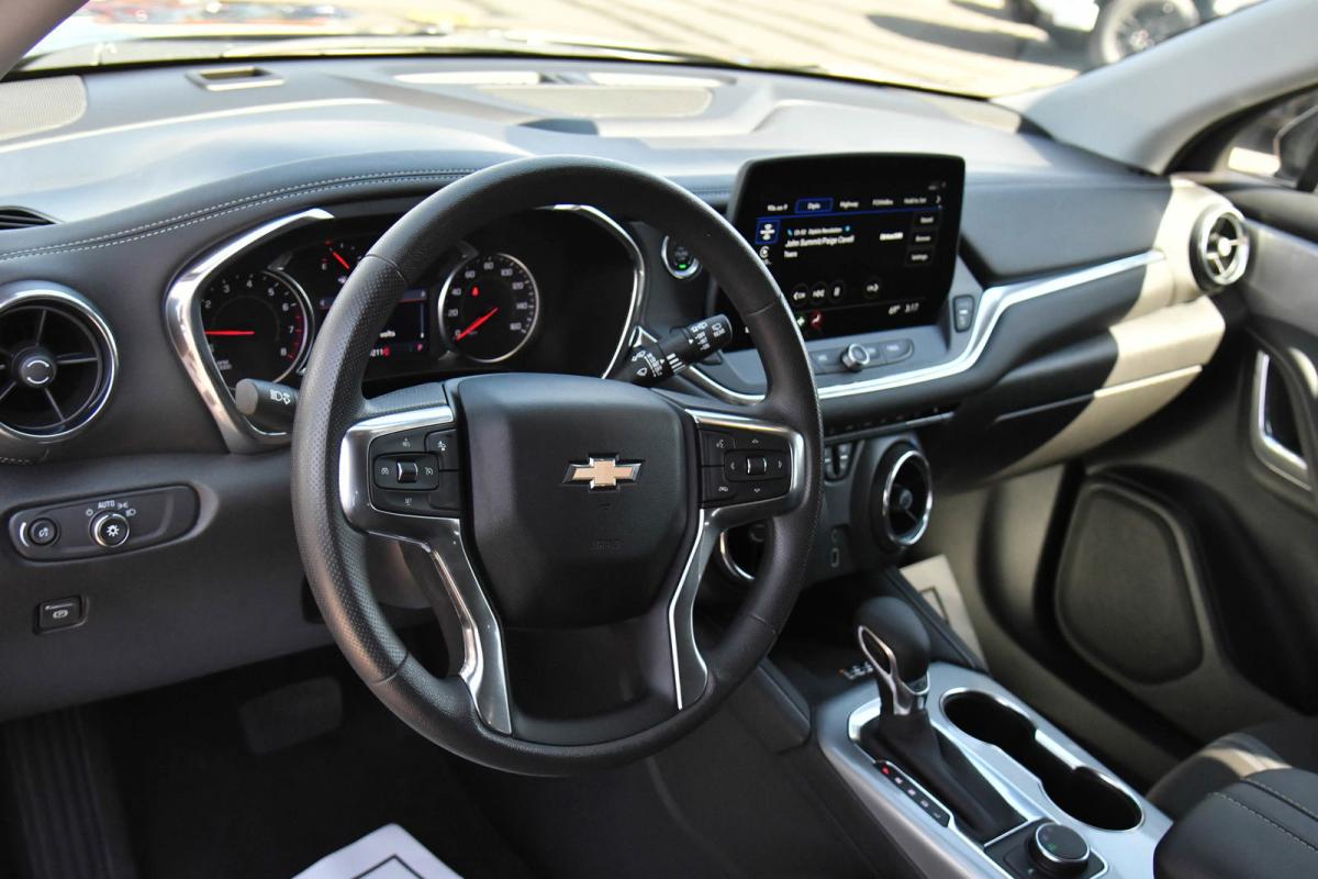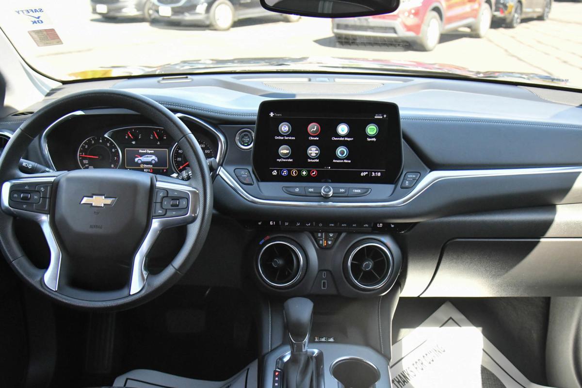 Only 9,130 Miles! Boasts 29 Highway MPG and 22 City MPG! This Chevrolet Blazer boasts a Turbocharged Gas I4 2.0L/ engine powering this Automatic transmission. WIRELESS CHARGING, WHEELS, 18 (45.7 CM) HIGH GLOSS BLACK PAINTED ALUMINUM, UNIVERSAL HOME REMOTE includes garage door opener, programmable.*This Chevrolet Blazer Features the Following Options *LICENSE PLATE FRONT MOUNTING PACKAGE (will be forced on orders with ship-to states that require a front license plate), CONVENIENCE PACKAGE includes (KSG) Adaptive Cruise Control, (KA1) driver and front passenger heated seats, (UG1) Universal Home Remote, (K4C) Wireless Charging, (TB5) power programmable liftgate, (V59) Black roof-mounted side rails, (UGN) Enhanced Automatic Emergency Braking and (DD8) auto-dimming inside rearview mirror , TRANSMISSION, 9-SPEED AUTOMATIC, ELECTRONICALLY-CONTROLLED with overdrive, includes Driver Shift Control (STD), TIRES, P235/65R18 ALL-SEASON BLACKWALL (STD), SEATS, HEATED DRIVER AND FRONT PASSENGER, SEATS, FRONT BUCKET (STD), ROOF RAILS, BLACK roof-mounted side rails, MIRROR, INSIDE REARVIEW AUTO-DIMMING, MIDNIGHT/SPORT EDITION includes Gloss Black grille bar, (B94) front and rear Black bowties, Black mirrors, Gloss Black nameplate (and AWD badge on AWD models), (WQN) 18 High Gloss Black painted aluminum wheels, and Black center caps with Black logo (Also includes (V59) Black roof-mounted side rails., LT PREFERRED EQUIPMENT GROUP Includes Standard Equipment.