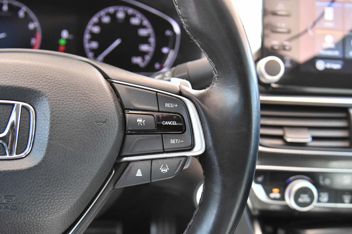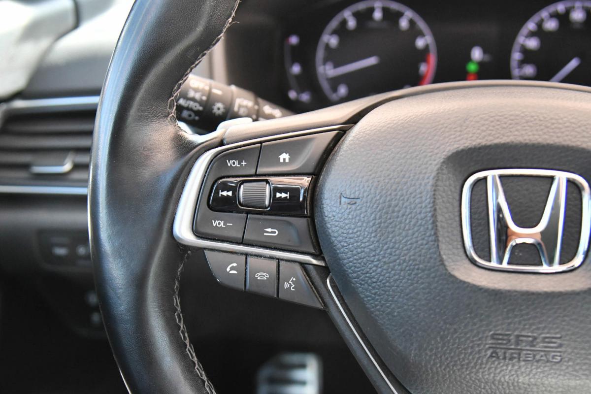 Boasts 35 Highway MPG and 29 City MPG! This Honda Accord Sedan boasts a Intercooled Turbo Regular Unleaded I-4 1.5 L/91 engine powering this Variable transmission. Wheels: 19 Machine-Finished Alloy w/Black Inserts, Vehicle Stability Assist (VSA) Electronic Stability Control (ESC), Valet Function.*This Honda Accord Sedan Comes Equipped with These Options *Trunk Rear Cargo Access, Trip Computer, Transmission: Continuously Variable -inc: sport mode and paddle shifters, Tires: 235/40R19 AS, Strut Front Suspension w/Coil Springs, Steel Spare Wheel, Speed Sensitive Variable Intermittent Wipers, Side Impact Beams, Seats w/Leatherette Back Material, Remote Releases -Inc: Power Cargo Access.