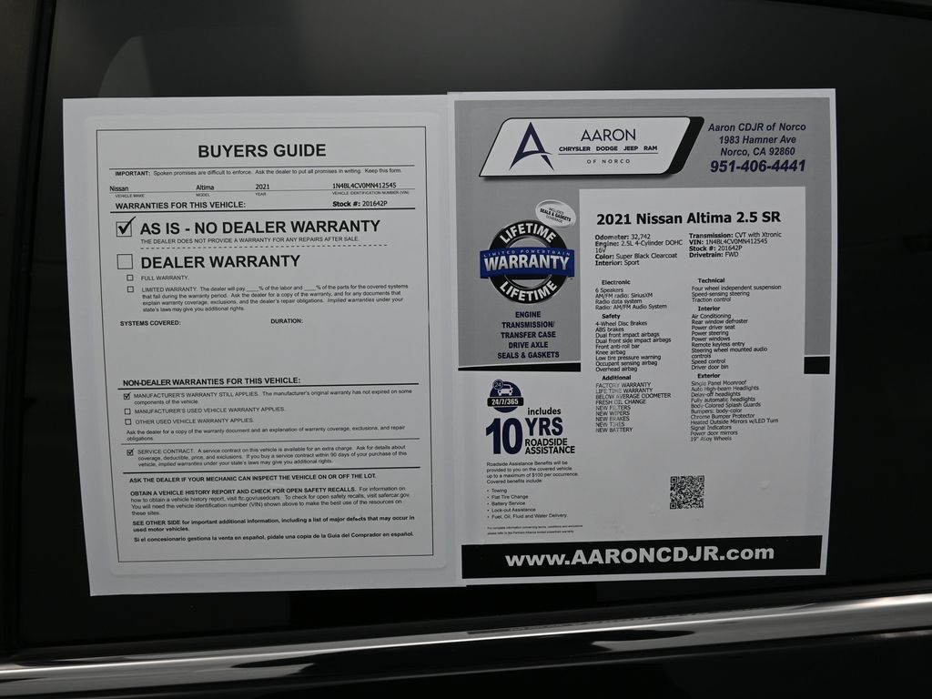 Priced below KBB Fair Purchase Price!FACTORY WARRANTY, LIFE TIME WARRANTY, BELOW AVERAGE ODOMETER, FRESH OIL CHANGE, NEW FILTERS, NEW WIPERS, Altima 2.5 SR, 4D Sedan, 2.5L 4-Cylinder DOHC 16V, FWD, 19" Alloy Wheels, Alloy wheels, Heated Front Seats, Heated Outside Mirrors w/LED Turn Signal Indicators, Knee airbag, Low tire pressure warning, NissanConnect featuring Apple CarPlay and Android Auto, Rear Parking Sensors, Single Panel Moonroof, SR Premium Package.CARFAX One-Owner.Awards: * JD Power Initial Quality Study (IQS)