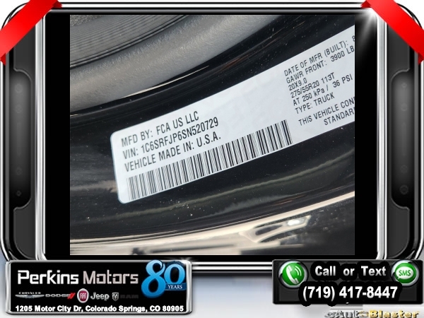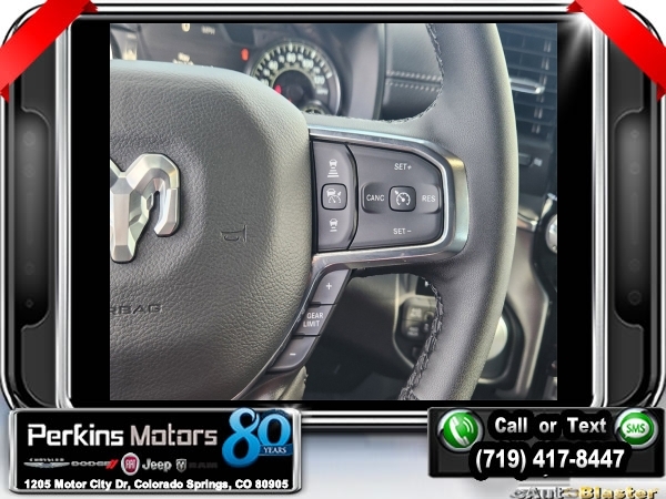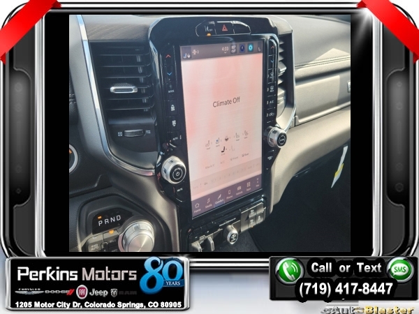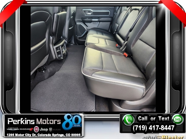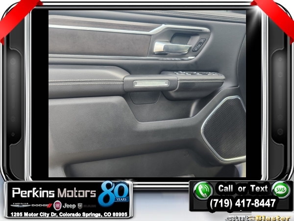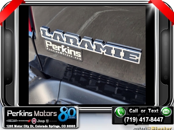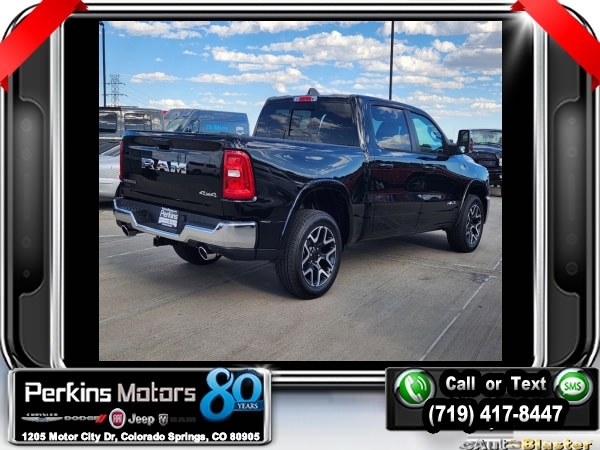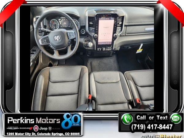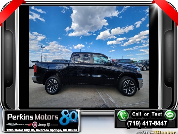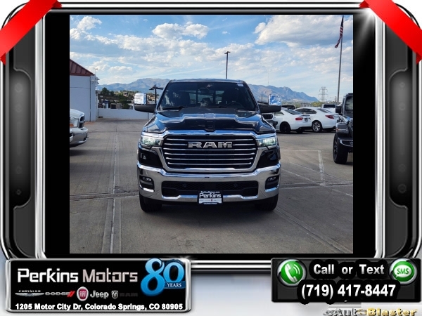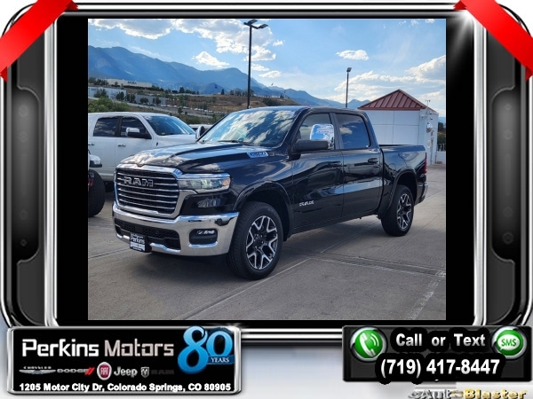 Factory MSRP: $69,345 $10,000 off MSRP! Priced below KBB Fair Purchase Price! Diamond Black Crystal Pearlcoat 2025 Ram 1500 Laramie 4WD 8-Speed Automatic 3.0L I6<br><br>Check us out at www.perkinsmotors.com to see our specials! Since opening our doors in 1944, we’ve been proud to serve Colorado Springs, CO, and the surrounding areas of Pueblo, Castle Rock and Denver, CO. Throughout this time of being family owned for 80 years, we’ve maintained a firm commitment to our customers: to offer a wide selection of New Chrysler, Dodge, Fiat, Jeep, and Ram vehicles and quality pre-owned vehicles, and provide a quick, no-hassle car-buying process that ensures everyone drives off the lot satisfied with their purchase.<br><br>Laramie Level 1 Equipment Group (Rain Sensitive Windshield Wipers and Remote Tailgate Release), Quick Order Package 21H Laramie, Trailer Tow Group (Auto Power-Folding Mirrors, Auto-Dimming Exterior Driver Mirror, Auto-Dimming Exterior Passenger Mirror, Black Exterior Mirrors, Chrome Exterior Mirrors, Exterior Mirrors Courtesy Lamps, Exterior Mirrors w/Heating Element, Exterior Mirrors w/Memory, Exterior Mirrors w/Supplemental Signals, Forward & Reverse Utility Lights, Mirror Clearance/Running Lights, Power Telescoping Mirrors, Power-Adjustable Convex Aux Mirrors, Trailer Brake Control, Trailer Light Check, Trailer Reverse Steering Control, Trailer Tire Pressure Monitoring System, and Trailer Tow Mirrors), 10 Speakers, 3 Rear Seat Head Restraints, 3.55 Rear Axle Ratio, 3.92 Rear Axle Ratio, 33 Gallon Fuel Tank, 4 Way Front Headrests, 4-Wheel Disc Brakes, 4G LTE Wi-Fi Hot Spot, ABS brakes, Adaptive Cruise Control, Air Conditioning, Alloy wheels, AM/FM radio: SiriusXM with 360L, Anti-Spin Differential Rear Axle, Apple CarPlay, Apple CarPlay/Android Auto, Audio memory, Auto High-beam Headlights, Auto-dimming door mirrors, Auto-dimming Rear-View mirror, Automatic temperature control, Brake assist, Bumpers: chrome, Compass, Connected Travel & Traffic Services, Connectivity - US/Canada, Convex Wide-Angle Exterior Mirror Insert, Cruise Control, Delay-off headlights, Driver door bin, Driver Seat Memory, Driver vanity mirror, Dual front impact airbags, Dual front side impact airbags, Electronic Stability Control, Front anti-roll bar, Front Center Armrest w/Storage, Front dual zone A/C, Front fog lights, Front License Plate Bracket, Front reading lights, Front Seat Back Map Pockets, Front wheel independent suspension, Fully automatic headlights, Garage door transmitter, Google Android Auto, GPS Antenna Input, GPS Navigation, HD Radio, Heated door mirrors, Heated Front Seats, Heated front seats, Heated rear seats, Heated Steering Wheel, Heated steering wheel, Illuminated entry, Integrated Voice Command w/Bluetooth, Leather steering wheel, Leather Trim 40/20/40 Bench Seat, Low tire pressure warning, Manufacturer's Statement of Origin, Memory seat, Occupant sensing airbag, Outside temperature display, Overhead airbag, Overhead console, Panic alarm, ParkView Rear Back-Up Camera, Passenger door bin, Passenger vanity mirror, Power 2-Way Driver Lumbar Adjust, Power 2-Way Passenger Lumbar Adjust, Power Adjust 8-Way Front Passenger Seat, Power door mirrors, Power driver seat, Power passenger seat, Power steering, Power windows, Radio data system, Radio: Uconnect 5 Nav w/12.0 Display, RAM Grille Badge - Chrome, Rear anti-roll bar, Rear reading lights, Rear seat center armrest, Rear step bumper, Remote keyless entry, Security system, SiriusXM w/360L, Split folding rear seat, Steering wheel mounted audio controls, Tachometer, Telescoping steering wheel, Tilt steering wheel, Traction control, Trip computer, Turn signal indicator mirrors, USB Host Flip, Variably intermittent wipers, Ventilated Front Seats, Ventilated front seats, Voltmeter, and Whe Sale price includes all manufacture's incentives and dealer discounts. Sale price not available on lease or compatible with special APR. $4000 - 2025 National Retail Consumer Cash. Exp. 1