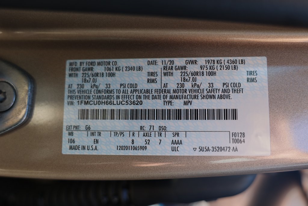Priced below KBB Fair Purchase Price!18" Machined-Face Aluminum Wheels, 6 Speakers, Adaptive Cruise Control w/Stop-and-Go, Air Conditioning, AppLink/Apple CarPlay and Android Auto, Black Roof-Rack Side Rails, Brake assist, Electronic Stability Control, Equipment Group 301A, Exterior Parking Camera Rear, Ford Co-Pilot360 Assist, Front Bucket Seats, Front fog lights, Fully automatic headlights, Heated ActiveX Front Sport Contour Bucket Seats, Heated front seats, Panoramic Vista Roof, Power Liftgate, Radio data system, Speed control, Spoiler, SYNC 3 Communications & Entertainment System, Voice-Activated Touchscreen Navigation System.Odometer is 25162 miles below market average!27/33 City/Highway MPGCARFAX One-Owner.Clean CARFAX.To see more quality vehicles like this one right just click on AaronFordofPoway.com or dial (858) 748-1400.Awards: * JD Power Automotive Performance, Execution and Layout (APEAL) Study