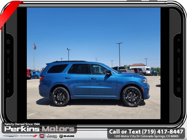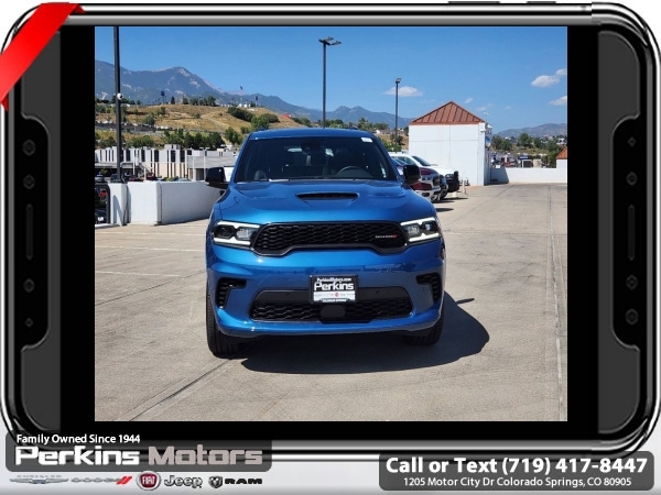 Factory MSRP: $49,975 $8,031 off MSRP! Priced below KBB Fair Purchase Price! Frostbite Pearlcoat 2025 Dodge Durango GT AWD 8-Speed Automatic 3.6L V6 24V VVT<br>AWD.<br>Check us out at www.perkinsmotors.com to see our specials! Since opening our doors in 1944, we’ve been proud to serve Colorado Springs, CO, and the surrounding areas of Pueblo, Castle Rock and Denver, CO. Throughout this time of being family owned for 80 years, we’ve maintained a firm commitment to our customers: to offer a wide selection of New Chrysler, Dodge, Fiat, Jeep, and Ram vehicles and quality pre-owned vehicles, and provide a quick, no-hassle car-buying process that ensures everyone drives off the lot satisfied with their purchase.<br><br>Blacktop Package (Black Roof Rails, Gloss Black Badges, Gloss Black Exterior Mirrors, GT Gloss Black Badging, Integrated Roof Rail Crossbars, Satin Black Dodge Tail Lamp Badge, and Wheels: 20 x 8.0 Black Noise Aluminum), Quick Order Package 2BH GT Plus (115V Auxiliary Power Outlet, 180 Amp Alternator, 506 Watt Amplifier, 7 & 4 Pin Wiring Harness, 9 Alpine Amplified Speakers w/Subwoofer, Adaptive Cruise Control w/Stop, Advanced Brake Assist, Auto High Beam Headlamp Control, Auto-Dimming Exterior Driver Mirror, Blind Spot w/Trailer Detection, Bright Cargo Area Scuff Pads, Bright Front Door Sill Scuff Pads, Class IV Receiver Hitch, Dual Remote USB Port - Charge Only, Exterior Mirrors w/Heating Element, Exterior Mirrors w/Memory, Exterior Mirrors w/Supplemental Signals, Full Speed Forward Collision Warning Plus, Heated Second Row Seats, Heavy-Duty Engine Cooling, Lane Departure Warning Plus, Leather Trimmed Bucket Seats, Leather Wrapped Door Panels, LED Auxiliary Low Beam & Turn Signal, ParkSense Front/Rear Park Assist w/Stop, Power 6x9 Multi-Function Foldaway Mirrors, Power Driver/Passenger 4-Way Lumbar Adjust, Power Sunroof, Power Tilt & Telescopic Steering Column, Radio/Driver Seat/Mirrors Memory, Rain Sensitive Windshield Wipers, Rear Load Leveling Suspension, Red Accent Stitching, Security Alarm, Sun Visors w/Illuminated Vanity Mirrors, Trailer Brake Control, Ventilated Front Seats, and Wireless Charging Pad), AWD, 2nd Row Fold/Tumble Captain Chairs, 2nd Row Mini Console w/Cupholders, 2nd Row Seat Mounted Inboard Armrests, 3.45 Rear Axle Ratio, 3rd Row Floor Mat & Mini Console, 3rd row seats: split-bench, 4-Wheel Disc Brakes, 6 Speakers, 6-Passenger Seating, ABS brakes, Air Conditioning, Alloy wheels, AM/FM radio: SiriusXM w/360L, Anti-whiplash front head restraints, Apple CarPlay/Android Auto, Auto-dimming Rear-View mirror, Automatic temperature control, Brake assist, Bumpers: body-color, Cloth Bucket Seats w/Shift Insert, Compass, Cruise Control, Delay-off headlights, Driver door bin, Driver vanity mirror, Dual front impact airbags, Dual front side impact airbags, Electronic Stability Control, Emergency communication system: Dodge Connect, Four wheel independent suspension, Front anti-roll bar, Front Bucket Seats, Front Center Armrest w/Storage, Front dual zone A/C, Front License Plate Bracket, Front reading lights, Fully automatic headlights, Garage door transmitter, Heated door mirrors, Heated front seats, Heated steering wheel, Illuminated entry, Knee airbag, Leather steering wheel, Low tire pressure warning, Navigation System, Occupant sensing airbag, Outside temperature display, Overhead airbag, Overhead console, Panic alarm, ParkView Rear Back-Up Camera, Passenger door bin, Passenger vanity mirror, Power door mirrors, Power driver seat, Power Liftgate, Power steering, Power windows, Radio data system, Radio: Uconnect 5 Nav w/10.1 Display, Rear air conditioning, Rear anti-roll bar, Rear reading lights, Rear seat center armrest, Rear window defroster, Rear window wiper, Remote keyless entry, Speed-sensing steering, Speed-Sensitive Wipers, Split folding rear seat, Spoiler, Sport steering wheel, Steering wheel mounted audio controls, Tachometer, Telescoping steering wheel, Tilt steering wheel, Traction con