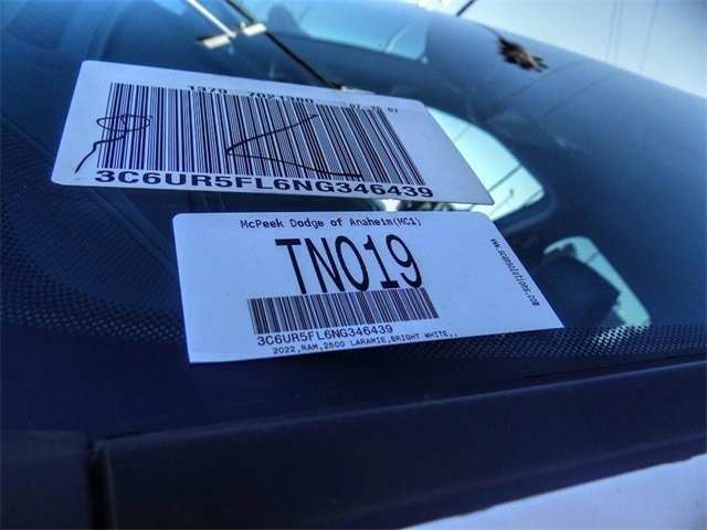 Recent Arrival! INTERIOR & EXTERIOR PROFESSIONALLY DETAILED FOR DELIVERY, MCPEEK CHRYSLER DODGE JEEP RAM FAMILY OWNED AND OPERATED SINCE 1961 !!!!!.Bright White Clearcoat 2022 Ram 2500 Laramie 4WD 6-Speed AutomaticReceive Free lube and oil filter changes for up to 45,000 miles for 3 years!!! McPeek's Dodge of Anahiem 1221 S. Auto Center Drive Anahiem, CA 92806 714-262-4902.