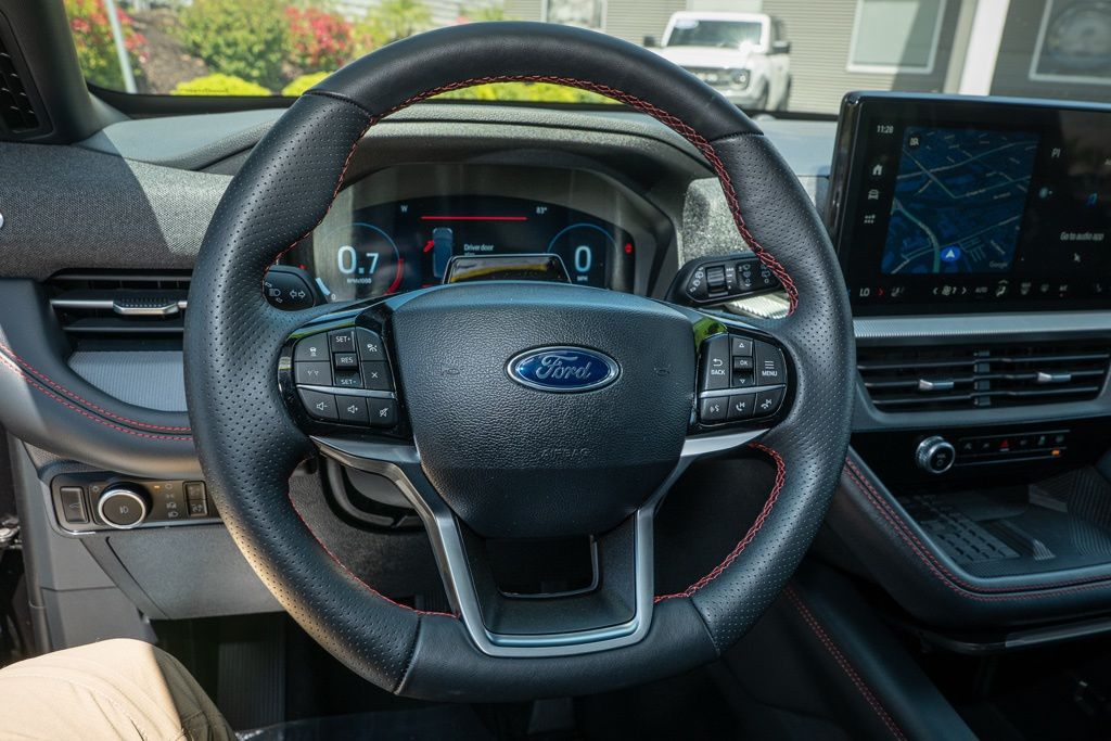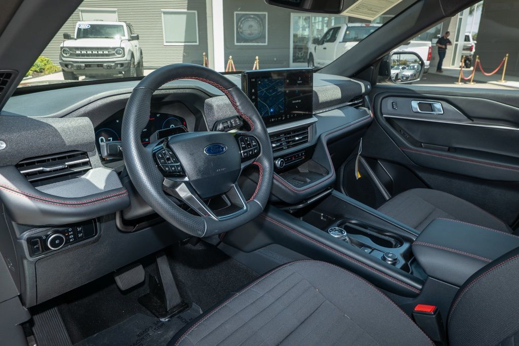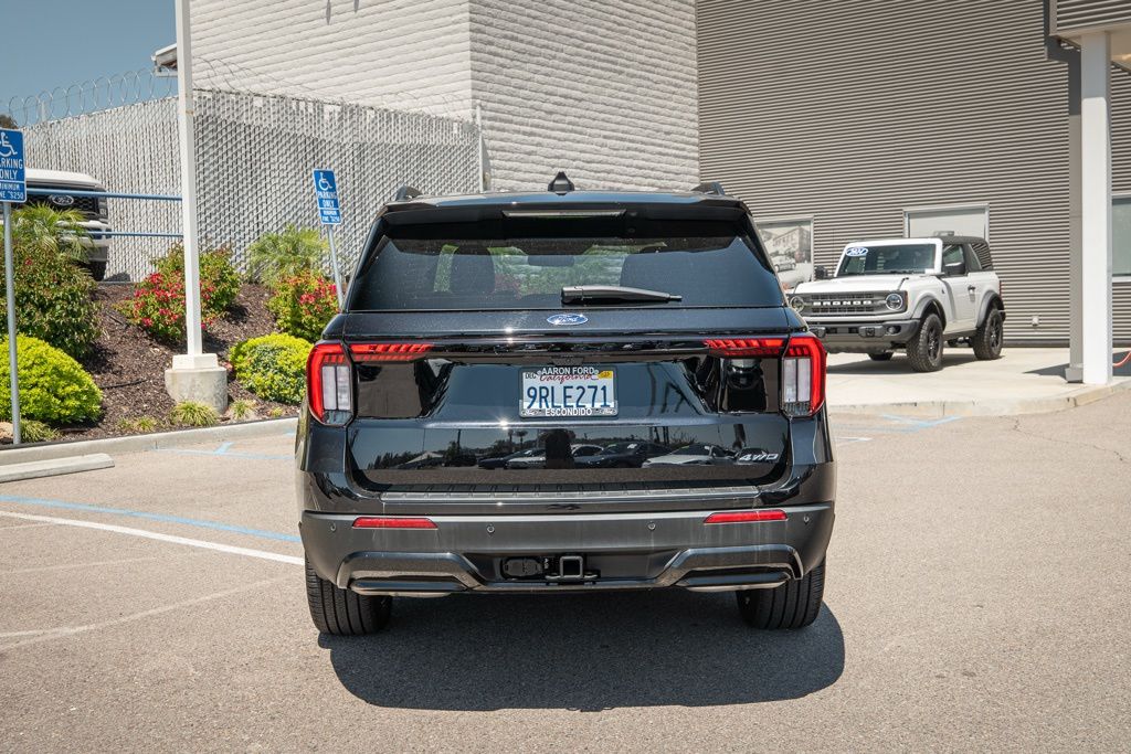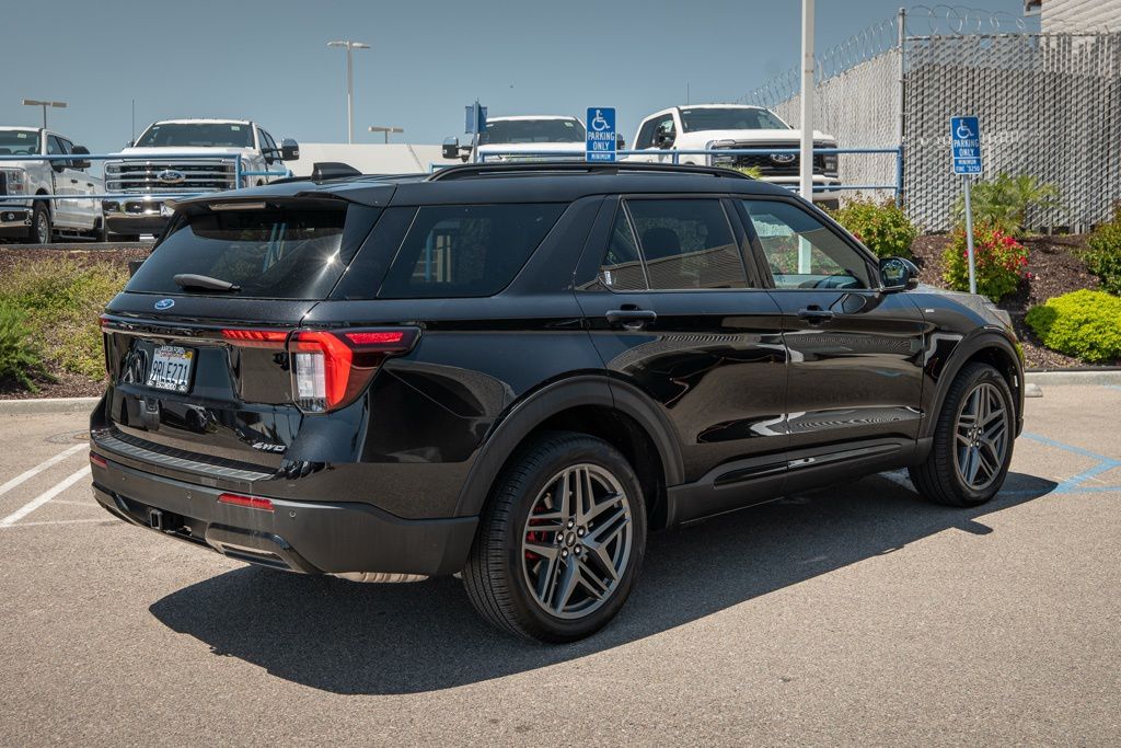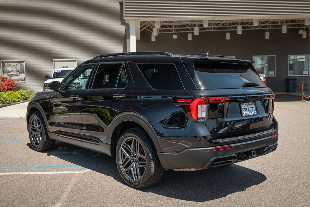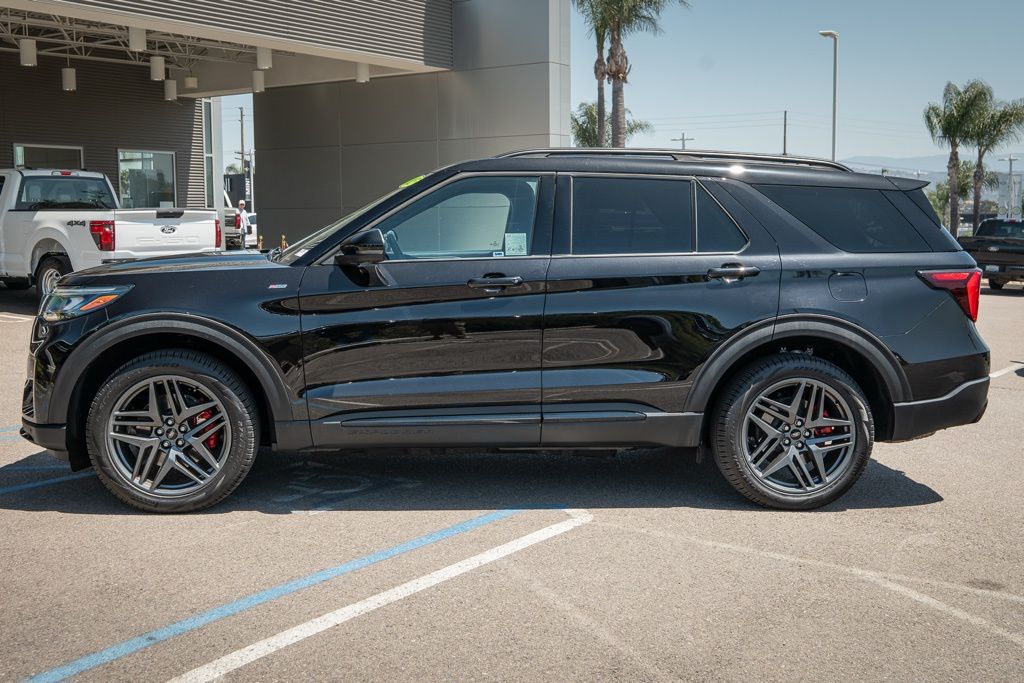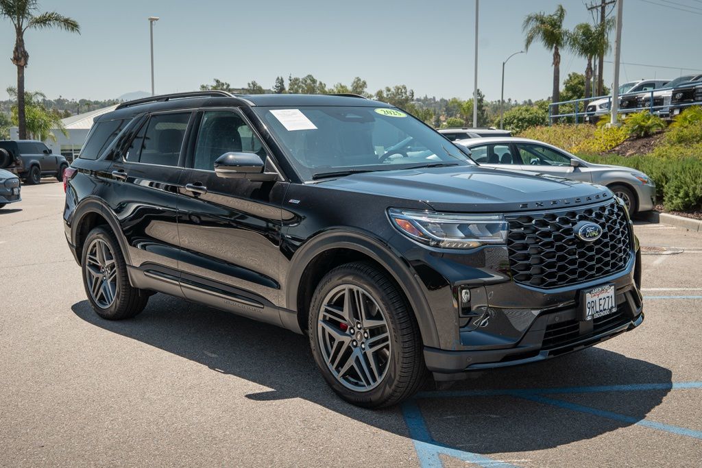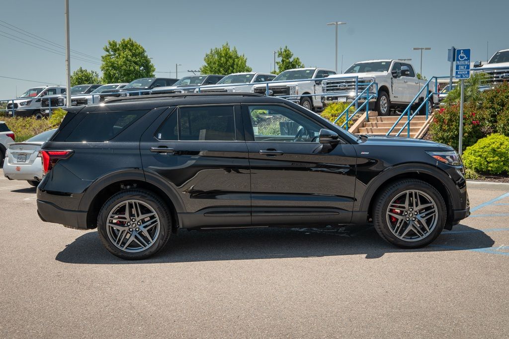 Agate Black Metallic 2025 Ford Explorer ST-Line 4WD 10-Speed Automatic 2.3L EcoBoost I-4 4WD, 110V/150W AC Power Outlet, 2nd Row Heated Seats, Ambient Lighting, Auto-Dimming Interior Rear-View Mirror, Equipment Group 300A Standard Package, Exterior Parking Camera Rear, Navigation System, Panoramic Vista Roof w/Power Shade, Performance Brakes, Power Liftgate, Power-Folding Sideview Mirrors w/Autofold, Premium Package, Rain-Sensing Wipers (Front Only), Red Painted Perf Front & Rear Brake Calipers, Remote keyless entry, ST-Line Street Pack, Wheels: 21" Magnetite-Painted Aluminum, Wireless Charging Pad.20/27 City/Highway MPG