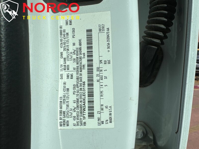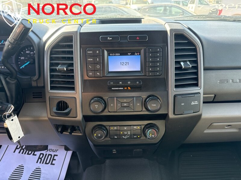 INSTALLED FEATURES: Air filtration, Front air conditioning, Front air conditioning zones: single, Airbag deactivation: passenger switch, Front airbags: dual, Side airbags: front, Side curtain airbags: front / rear, Antenna type: mast, Auxiliary audio input: Bluetooth / USB, Radio: AM/FM / voice operated, Speed sensitive volume control, Total speakers: 4, ABS: 4-wheel, Braking assist, Electronic brakeforce distribution, Front brake diameter: 14.29, Front brake type: ventilated disc, Power brakes, Rear brake diameter: 14.3, Rear brake type: ventilated disc, Armrests: front center, Door sill trim: scuff plate, Floor material: rubber/vinyl, Steering wheel trim: urethane, Assist handle: front / rear, Cupholders: front, Overhead console: front, Power outlet(s): 12V front / USB front / USB-C front, Power steering, Reading lights: front / rear, Rearview mirror: manual day/night, Steering wheel: tilt and telescopic, Steering wheel mounted controls: audio / multi-function / phone / voice control, Storage: accessory hook / door pockets, Vanity mirrors: passenger, Axle ratio: 3.73, Alternator: 157 amps, Battery: maintenance-free, Battery rating: 650 CCA, Battery saver, Door handle color: black, Front bumper color: black, Grille color: black, License plate bracket: front, Mirror color: black, Pickup bed light, Rear bumper color: black, Tailgate: lift assist / removable, Window trim: black, Connected in-car apps: app marketplace integration, Infotainment: SYNC, Infotainment screen size: 4.2 in., Clock, Digital odometer, External temperature display, Gauge: oil pressure / tachometer / transmission temperature, Instrument cluster screen size: 2.3 in., Powertrain hour meter, Warnings and reminders: low fuel level / maintenance due, Headlights: auto delay off / auto on/off / halogen / quad headlights / wiper activated, Side mirror adjustments: manual / manual folding / manual telescoping, Towing mirrors, Automatic hazard warning lights, Camera system: rearview, Child seat anchors: LATCH system, Crumple zones: front, Impact sensor: alert system / door unlock / post-collision safety system, Programmable safety key, Rearview monitor: in dash, Emergency locking retractors: front / rear, Front seatbelts: 3-point, Rear seatbelts: 3-point, Seatbelt pretensioners: front, Seatbelt warning sensor: front, Driver seat manual adjustments: lumbar / reclining / 6, Front headrests: adjustable / 2, Front seat type: 40-20-40 split bench, Passenger seat manual adjustments: reclining / 4, Rear headrests: adjustable / 3, Rear seat folding: folds up / split, Rear seat type: 60-40 split bench, Upholstery: vinyl, Anti-theft system: vehicle immobilizer, Hill holder control, Roll stability control, Stability control, Traction control, Trailer stability control, Front shock type: gas, Front spring type: coil, Front stabilizer bar, Front suspension classification: independent, Front suspension type: twin I-beam, Rear shock type: gas, Rear spring type: leaf, Rear suspension classification: solid live axle, Rear suspension type: multi-leaf, Electronic messaging assistance: voice operated / with read function, Hands-free phone call integration: voice operated, Smart device app compatibility: FordPass Connect, Smart device app function: engine start / lock operation / maintenance status / vehicle location, Wi-Fi: hotspot, Wireless data link: Bluetooth, Spare tire mount location: underbody, Spare tire size: full-size, Spare wheel type: steel, Tire Pressure Monitoring System, Tire type: all season, Wheels: painted steel, Tow hooks: front, Trailer hitch, Trailer wiring: 4-pin / 7-pin, Front wipers: variable intermittent, Solar-tinted glass: front