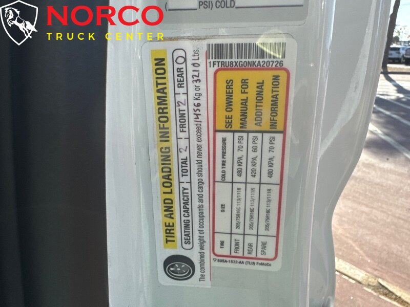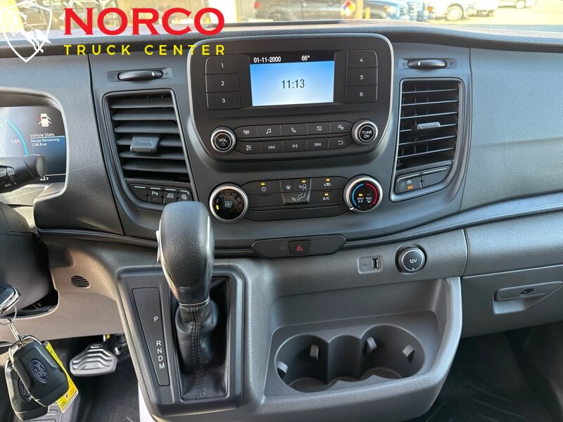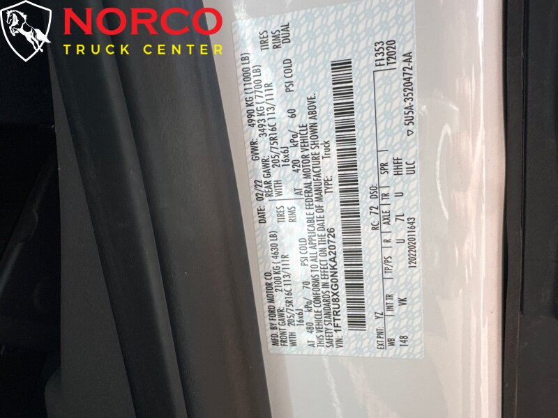 -- INSTALLED FEATURES: Front air conditioning, Front air conditioning zones: single, Airbag deactivation: passenger switch, Front airbags: dual, Side airbags: front, Side curtain airbags: front, Antenna type: mast, Auxiliary audio input: Bluetooth / USB, Radio: AM/FM, Total speakers: 4, ABS: 4-wheel, Braking assist, Cornering brake control, Electronic brakeforce distribution, Emergency braking preparation, Front brake diameter: 12.1, Front brake type: ventilated disc, Power brakes, Rear brake diameter: 12.1, Rear brake type: ventilated disc, Armrests: dual front, Floor material: rubber/vinyl, Shift knob trim: urethane, Steering wheel trim: urethane, Assist handle: front / rear, Capless fuel filler system, Cargo area light, Center console: front console with storage, Cupholders: front, Multi-function remote: keyless entry / panic alarm / trunk release, One-touch windows: 1, Power outlet(s): 12V front / USB front, Power steering: variable/speed-proportional, Reading lights: front, Steering wheel: tilt and telescopic, Steering wheel mounted controls: audio / multi-function / phone, Storage: door pockets, Sun visors, Axle ratio: 3.73, Alternator: 250 amps, Auto start/stop, Battery: AGM / maintenance-free, Battery rating: 610 CCA, Body side moldings: black, Door handle color: black, Front bumper color: black, Grille color: black / black surround, Mirror color: black, Rear bumper color: black, Rear trunk/liftgate: barn, Side door type: passenger-side manual sliding, Window trim: black, Infotainment screen size: 4 in., Clock, Digital odometer, External temperature display, Fuel economy display: range, Gauge: tachometer, Trip odometer, Warnings and reminders: coolant temperature warning / low fuel level / low oil pressure, Headlights: auto delay off / auto high beam dimmer / auto on/off / halogen, Roof-mounted lights, Side mirror adjustments: manual folding / power, OEM roof height: high, Automatic emergency braking: front / front pedestrian, Automatic hazard warning lights, Camera system: rearview, Driver attention alert system, Impact sensor: door unlock / post-collision safety system, Lane deviation sensors, Pre-collision warning system: audible warning / pedestrian detection / visual warning, Rearview monitor: in dash, Front seatbelts: 3-point, Seatbelt warning sensor: front, Driver seat manual adjustments: reclining / 2, Front headrests: adjustable / 2, Front seat type: bucket, Passenger seat manual adjustments: reclining / 2, Upholstery: vinyl, Anti-theft system: vehicle immobilizer, Power door locks: auto-locking, Crosswind stabilization, Hill holder control, Roll stability control, Stability control, Traction control, Trailer stability control, Front shock type: gas, Front spring type: coil, Front stabilizer bar, Front struts: MacPherson, Front suspension classification: independent, Front suspension type: lower control arms, Rear shock type: gas, Rear spring type: leaf, Rear suspension classification: solid live axle, Rear suspension type: multi-leaf, Hands-free phone call integration, Smart device app compatibility: FordPass Connect, Smart device app function: engine start / lock operation / maintenance status / vehicle location, Wi-Fi: hotspot, Wireless data link: Bluetooth, Dual rear wheels, Spare tire mount location: underbody, Spare tire size: full-size, Spare wheel type: steel, Tire Pressure Monitoring System, Tire type: all season, Wheels: steel, Auxiliary transmission fluid cooler, Front wipers: rain sensing / variable intermittent, Power windows: safety reverse, Solar-tinted glass