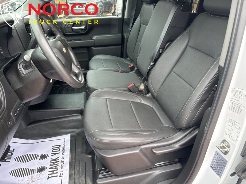 INSTALLED FEATURES: Air filtration, Front air conditioning, Front air conditioning zones: single, Rear vents: second row, Airbag deactivation: occupant sensing passenger, Front airbags: dual, Side airbags: front, Side curtain airbags: front / rear, Antenna type: mast, Auxiliary audio input: Bluetooth / iPod/iPhone / USB, Radio: AM/FM / touch screen display, Radio data system, Speed sensitive volume control, Total speakers: 6, ABS: 4-wheel, Braking assist, Electronic brakeforce distribution, Electronic parking brake: auto off, Front brake type: ventilated disc, Power brakes, Rear brake type: ventilated disc, Armrests: front center, Floor material: rubber/vinyl, Steering wheel trim: urethane, Assist handle: front / rear, Capless fuel filler system, Cupholders: front, One-touch windows: 4, Overhead console: front, Power outlet(s): 12V front / USB front, Power steering, Power windows: lockout button, Reading lights: front / rear, Rearview mirror: manual day/night, Steering wheel: tilt, Storage: door pockets, Sun visors, Bumper detail: rear step, Door handle color: black, Exhaust tip color: stainless steel, Fender lip moldings: black, Front bumper color: black, Grille color: black, Hood scoop, Mirror color: black, Pickup bed light, Rear bumper color: black, Tailgate: removable, Window trim: black, Infotainment: Chevrolet Infotainment System, Infotainment screen size: 7 in., Smartphone integration: Android Auto / Apple CarPlay, Clock, Digital odometer, External temperature display, Fuel economy display: MPG / range, Gauge: oil pressure / tachometer, Instrument cluster screen size: 3.5 in., Multi-function display, Powertrain hour meter, Trip odometer, Warnings and reminders: coolant temperature warning / lamp failure / low battery / low fuel level / low oil pressure / maintenance due, Daytime running lights, Headlights: auto delay off / auto on/off / halogen / wiper activated, Roof-mounted lights, Taillights: LED, Side mirror adjustments: manual / manual folding / manual telescoping, Towing mirrors, Alternator: 170 amps, Auxiliary oil cooler, Auxiliary transmission fluid cooler, Battery: heavy duty / maintenance-free, Battery rating: 720 CCA, Battery saver, Locking differential: rear, Camera system: rearview, Check rear seat reminder, Child safety door locks, Child seat anchors: LATCH system, Programmable safety key, Rearview monitor: in dash, Emergency locking retractors: front, Front seatbelts: 3-point, Rear seatbelts: 3-point, Seatbelt pretensioners: front, Seatbelt warning sensor: front, Driver seat manual adjustments: 4 / reclining, Front headrests: 2 / adjustable, Front seat type: 40-20-40 split bench, Passenger seat manual adjustments: 4 / reclining, Rear headrests: 3 / adjustable, Rear seat folding: folds up, Rear seat type: 60-40 split bench, Upholstery: vinyl, Anti-theft system: vehicle immobilizer, Power door locks: anti-lockout / auto-locking, Hill holder control, Roll stability control, Stability control, Traction control, Trailer stability control, Front shock type: twin-tube gas, Front spring type: torsion bars, Front stabilizer bar: diameter 35 mm, Front suspension classification: independent, Front suspension type: upper and lower control arms, Rear shock type: twin-tube gas, Rear spring type: leaf, Rear suspension classification: solid live axle, Rear suspension type: multi-leaf, Electronic messaging assistance: voice operated / with read function, Hands-free phone call integration: voice operated, Wireless data link: Bluetooth, Pickup bed cargo management: tie-down anchors, Tow hooks: front, Tow/Haul mode, Trailer hitch, Trailer wiring: 4-pin / 7-pin, Dual rear wheels, Spare tire mount location: underbody, Spare tire size: full-size, Spare wheel type: steel, Tire Pressure Monitoring System, Wheel covers: wheel skins, Wheels: painted steel, Front wipers: variable intermittent, Power windows: safety reverse, Solar-tinted glass
