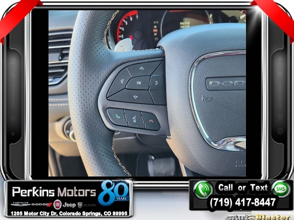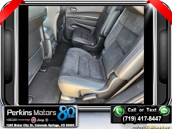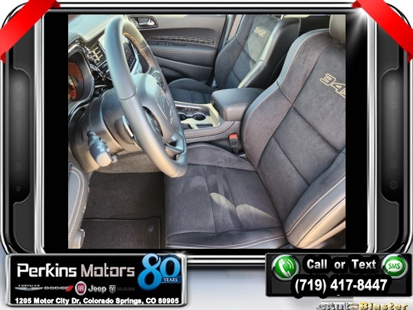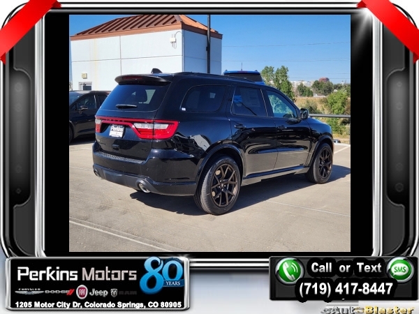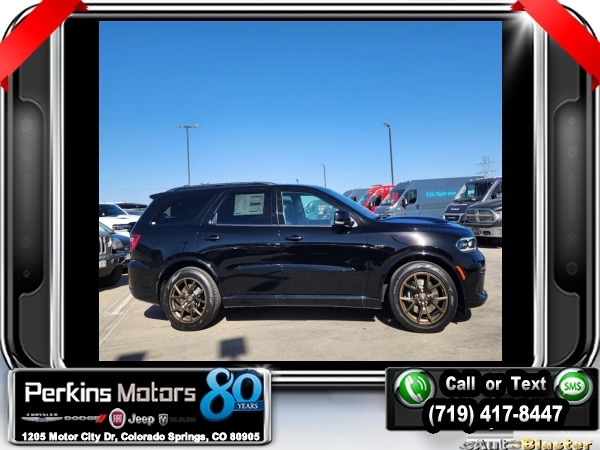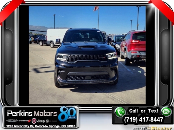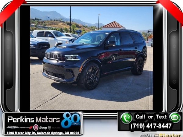 Factory MSRP: $72,065 $7,000 off MSRP! DB Black Crystal Clearcoat 2025 Dodge Durango R/T AWD 8-Speed Automatic HEMI 5.7L V8 Multi Displacement VVT<br>AWD.<br>Check us out at www.perkinsmotors.com to see our specials! Since opening our doors in 1944, we’ve been proud to serve Colorado Springs, CO, and the surrounding areas of Pueblo, Castle Rock and Denver, CO. Throughout this time of being family owned for 80 years, we’ve maintained a firm commitment to our customers: to offer a wide selection of New Chrysler, Dodge, Fiat, Jeep, and Ram vehicles and quality pre-owned vehicles, and provide a quick, no-hassle car-buying process that ensures everyone drives off the lot satisfied with their purchase.<br><br>Quick Order Package 22R R/T 20th Anniversary Premium (#6 Seat Foam Cushion, 115V Auxiliary Power Outlet, 19 harman/kardon Amplified Speakers w/Subwoofer, 7 & 4 Pin Wiring Harness, Adaptive Cruise Control w/Stop, Advanced Brake Assist, Auto-Dimming Exterior Driver Mirror, Black Brake Calipers, Black Roof Rails, Blind Spot w/Trailer Detection, Brembo Brakes, Bright Cargo Area Scuff Pads, Class IV Receiver Hitch, Exterior Mirrors w/Heating Element, Exterior Mirrors w/Memory, Exterior Mirrors w/Supplemental Signals, Gloss Black Exterior Mirrors, Heated Second Row Seats, HEMI Hood Graphic, LED Auxiliary Low Beam & Turn Signal, Power 8-Way Driver Memory 8-Way Passenger Seats, Power Driver/Passenger 4-Way Lumbar Adjust, Power Tilt & Telescopic Steering Column, Radford Track Experience, and Trailer Brake Control), Tow 'N Go Package (145 mph Maximum Speed Calibration, Active Noise Control System, Body Color Upper & Lower Rear Fascia, Drive Modes - Sport/Track/Tow/Snow, Electronic Limited Slip Differential Rear Axle, High Performance Exhaust, and Quadra-Trac Active on Demand 4WD), AWD, 3.09 Rear Axle Ratio, 3rd row seats: split-bench, 4-Wheel Disc Brakes, 9 Speakers, ABS brakes, Air Conditioning, Alloy wheels, AM/FM radio: SiriusXM w/360L, Anti-whiplash front head restraints, Apple CarPlay/Android Auto, Auto-dimming Rear-View mirror, Auto-leveling suspension, Automatic temperature control, Brake assist, Bumpers: body-color, Cloth Bucket Seats w/Shift Insert, Compass, Cruise Control, Delay-off headlights, Driver door bin, Driver vanity mirror, Dual front impact airbags, Dual front side impact airbags, Electronic Stability Control, Emergency communication system: Dodge Connect, Four wheel independent suspension, Front anti-roll bar, Front Bucket Seats, Front Center Armrest w/Storage, Front dual zone A/C, Front License Plate Bracket, Front reading lights, Fully automatic headlights, Garage door transmitter, Heated door mirrors, Heated front seats, Heated steering wheel, Illuminated entry, Knee airbag, Leather steering wheel, Low tire pressure warning, Navigation System, Occupant sensing airbag, Outside temperature display, Overhead airbag, Overhead console, Panic alarm, ParkView Rear Back-Up Camera, Passenger door bin, Passenger vanity mirror, Power door mirrors, Power driver seat, Power Liftgate, Power steering, Power windows, Radio data system, Radio: Uconnect 5 Nav w/10.1 Display, Rain sensing wipers, Rear air conditioning, Rear anti-roll bar, Rear Load Leveling Suspension, Rear reading lights, Rear seat center armrest, Rear window defroster, Rear window wiper, Red Accent Stitching, Remote keyless entry, Security system, Speed-sensing steering, Speed-Sensitive Wipers, Split folding rear seat, Spoiler, Sport steering wheel, Steering wheel mounted audio controls, Tachometer, Telescoping steering wheel, Tilt steering wheel, Traction control, Trip computer, Variably intermittent wipers, Voltmeter, and Wheels: 20 x 8.0 Fine Silver. Sale price includes all manufacture's incentives and dealer discounts. Sale price not available on lease or compatible with special APR. $3500 - 2025 National Retail Bonus Cash. Exp. 01/02/2025 $500 - 2025 National Holiday Bonus Cash. Exp. 01/02/2025