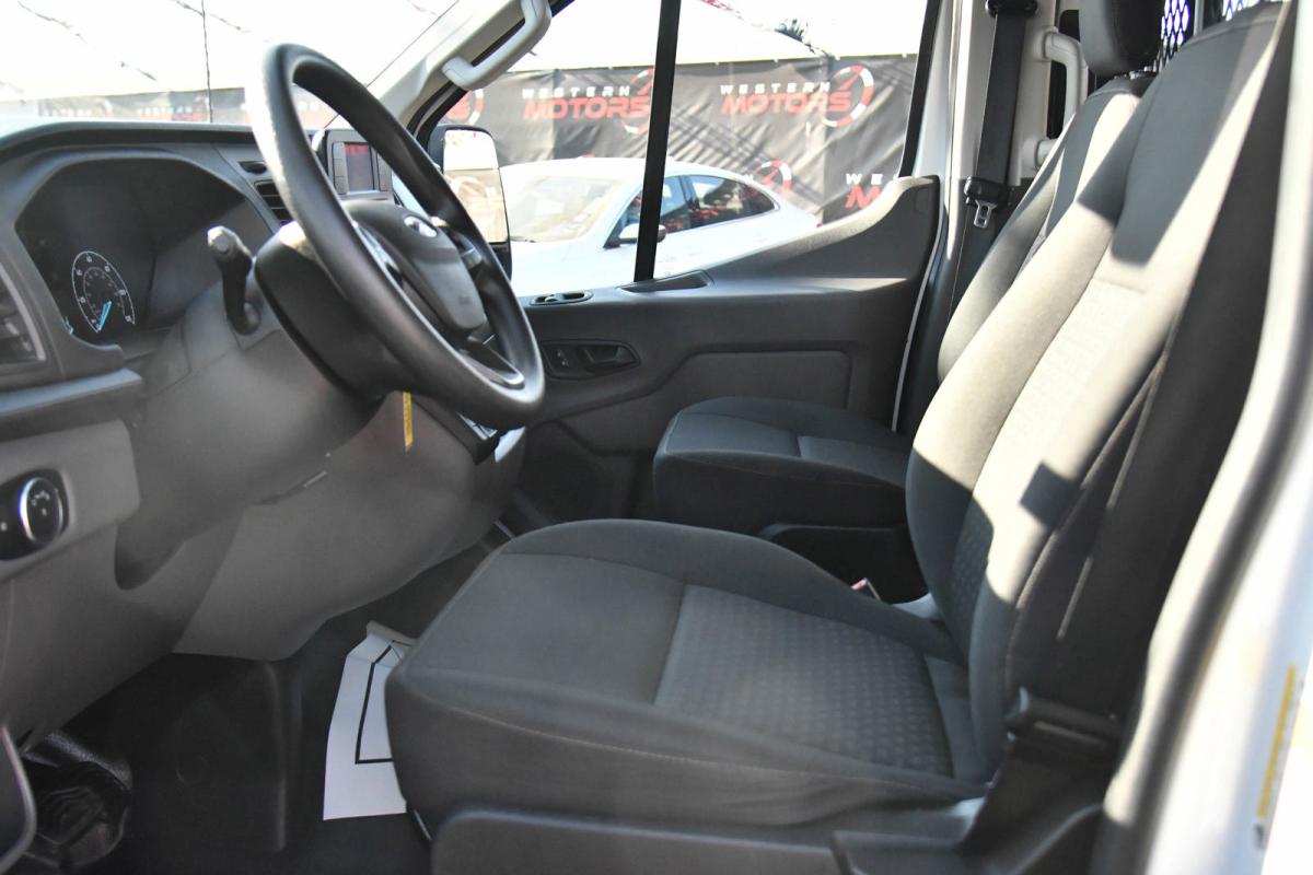 This Ford Transit Cargo Van boasts a Regular Unleaded V-6 3.5 L/213 engine powering this Automatic transmission. ENGINE: 3.5L PFDI V6 FLEX-FUEL -inc: port injection, Auto Start-Stop Switch Delete, Deletes button on dash which disables auto start-stop technology, Deletes auto stop-start technology disable button on dash, however, the feature remains permanently active (STD), Wheels: 16 Silver Steel w/Black Hubcap, Vinyl Front Bucket Seats.*This Ford Transit Cargo Van Comes Equipped with These Options *Variable Intermittent Wipers, Urethane Gear Shifter Material, Transmission: 10-Spd Automatic w/OD & SelectShift -inc: auxiliary transmission oil cooler, Tires: 235/65R16C 121/119 R AS BSW, Tailgate/Rear Door Lock Included w/Power Door Locks, Strut Front Suspension w/Coil Springs, Streaming Audio, Steel Spare Wheel, Split Swing-Out Rear Cargo Access, Solid Axle Rear Suspension w/Leaf Springs.