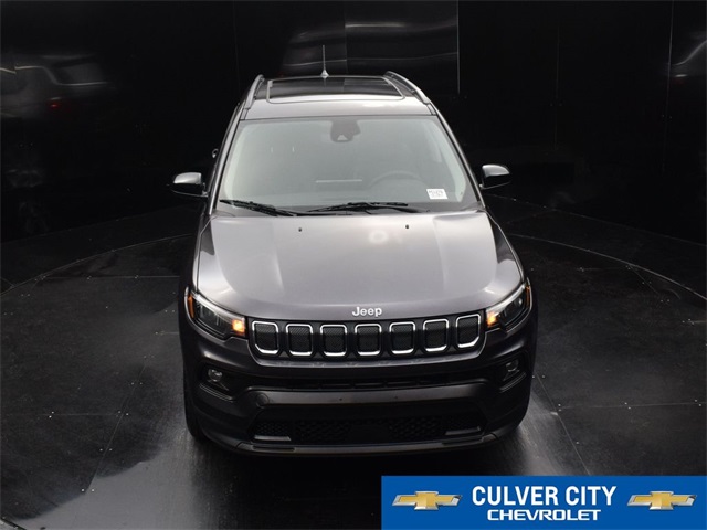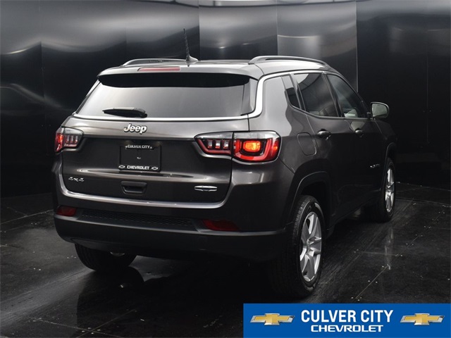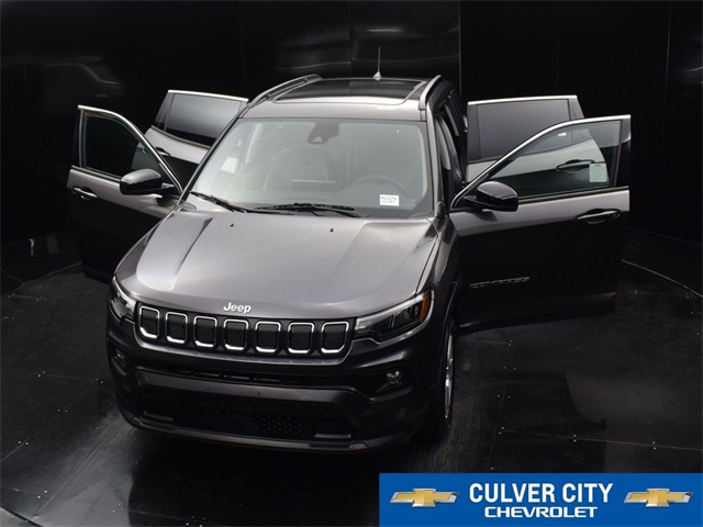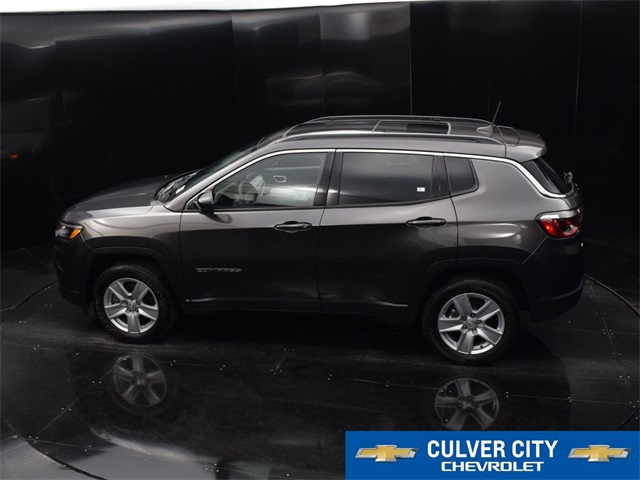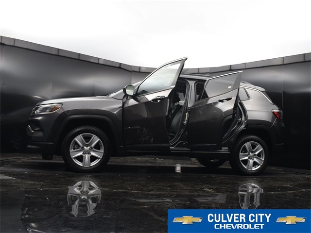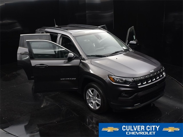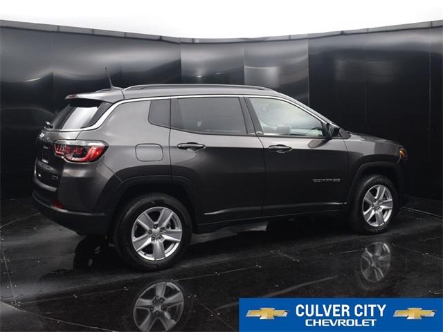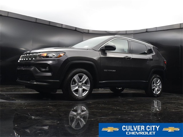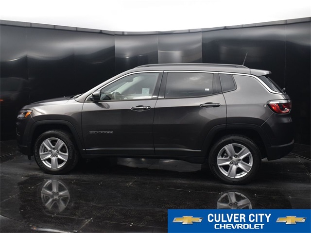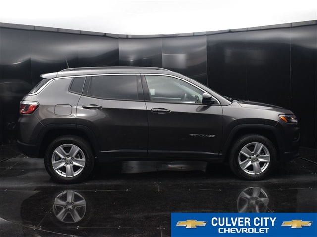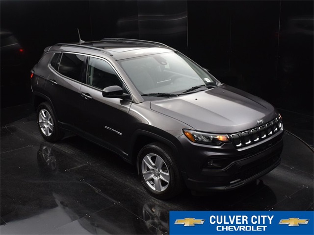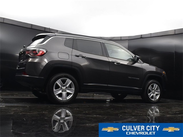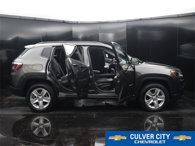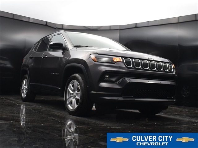 The 2022 Jeep Compass Latitude is the perfect combination of rugged capability and modern sophistication. With its signature seven-slot grille, sleek LED headlights, and bold exterior design, the Compass Latitude is built to make a statement both on and off the road.Powered by a 2.4-liter I4 engine that delivers 177 horsepower, the Compass Latitude offers smooth handling and excellent fuel efficiency, making it ideal for city driving or weekend adventures. Paired with a 9-speed automatic transmission, and available with Jeeps legendary 4x4 capability, this SUV is ready to conquer any terrain.Step inside the refined cabin, where premium cloth and leather-trimmed seating provide comfort for up to five passengers. The 8.4-inch touchscreen infotainment system features Uconnect, offering seamless connectivity with Apple CarPlay, Android Auto, and Bluetooth. Ample cargo space and flexible seating configurations ensure you have room for all your gear.Safety is a top priority in the Compass Latitude, equipped with advanced features like Blind Spot Monitoring, Rear Cross Path Detection, and Adaptive Cruise Control. These driver-assistance technologies help keep you and your passengers safe on every journey.Stylish, capable, and packed with features, the 2022 Jeep Compass Latitude is the perfect choice for those who seek adventure without sacrificing comfort or technology.At Culver City Chevrolet, our entire team works together to provide you with the ultimate Chevrolet shopping experience. We are family owned and operated, so we treat you just like you are part of our family. We are also very passionate about serving the community in which we work, live and play! From the Little League teams we support, to the next customer that walks in the door, we are committed to doing the right thing. Our goal is to exceed your expectations, deliver the best service possible, and make car shopping fun again. We offer a large inventory of Chevrolet cars, trucks, SUVs and electric vehicles, and an incredible lineup of luxury vehicles for sale as well! Just find the specific vehicle that fits your needs and schedule your test drive by calling 424-216-6027 today. We provide plenty of buying and leasing options for drivers in the Los Angeles area. WE LOOK FORWARD TO BEING THE NEW AND USED CHEVROLET VEHICLE SOURCE FOR YOU IN CULVER CITY!Priced below KBB Fair Purchase Price! 2022 Jeep Compass Latitude Granite Crystal Metallic Clearcoat 2.4L I4 22/30 City/Highway MPG 22/30 City/Highway MPG KBB Fair Market Range Low: $21,727CARFAX One-Owner. Clean CARFAX. Odometer is 19250 miles below market average!4WD.