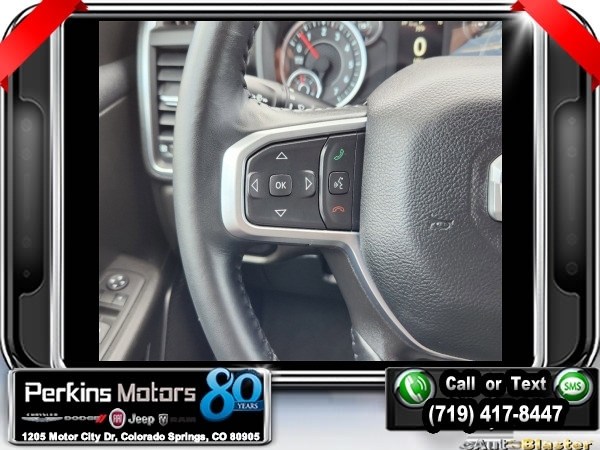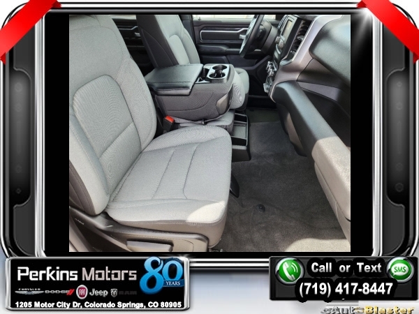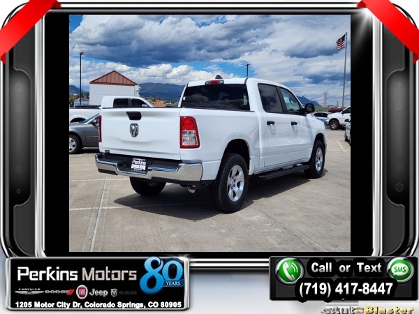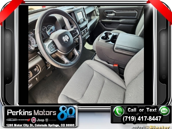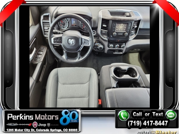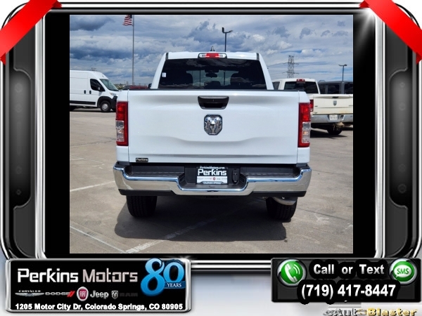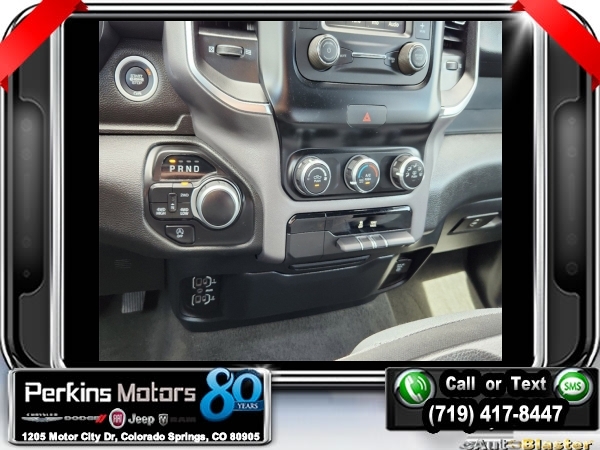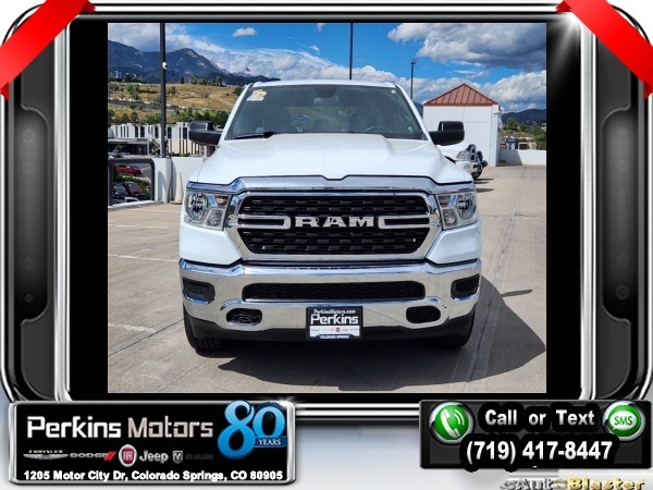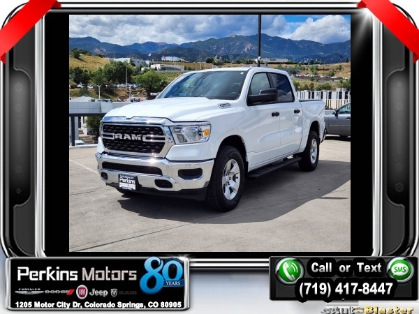 Bright White Clearcoat 4WD 3.6L V6 24V VVT 8-Speed Automatic<br><br><br>Clean CARFAX.<br><br>Check us out at www.perkinsmotors.com to see our specials! Since opening our doors in 1944, we’ve been proud to serve Colorado Springs, CO, and the surrounding areas of Pueblo, Castle Rock and Denver, CO. Throughout this time of being family owned for 80 years, we’ve maintained a firm commitment to our customers: to offer a wide selection of New Chrysler, Dodge, Fiat, Jeep, and Ram vehicles and quality pre-owned vehicles, and provide a quick, no-hassle car-buying process that ensures everyone drives off the lot satisfied with their purchase.<br><br><br>Quick Order Package 23Z Big Horn (Big Horn Badge), 115V Auxiliary Power Outlet, 3 Rear Seat Head Restraints, 3.21 Rear Axle Ratio, 4 Way Front Headrests, 4-Wheel Disc Brakes, 48V Belt Starter Generator, 6 Speakers, ABS brakes, Air Conditioning, Alloy wheels, AM/FM radio, Brake assist, Bumpers: chrome, Cloth Bench Seat, Compass, Convex Wide-Angle Exterior Mirror Insert, Cruise Control, Delay-off headlights, Driver door bin, Dual front impact airbags, Dual front side impact airbags, Electronic Stability Control, Emergency communication system: RAM Connect, Exterior Mirrors w/Heating Element, For Details, Visit DriveUconnect.com, Front anti-roll bar, Front Center Armrest w/Storage, Front License Plate Bracket, Front reading lights, Front Seat Back Map Pockets, Front wheel independent suspension, Fully automatic headlights, Global Telematics Box Module (TBM), Heated door mirrors, Illuminated entry, Integrated Voice Command w/Bluetooth, Leather steering wheel, Low tire pressure warning, Manufacturer's Statement of Origin, MOPAR Front & Rear Rubber Floor Mats, Occupant sensing airbag, Outside temperature display, Overhead airbag, Overhead console, Panic alarm, ParkView Rear Back-Up Camera, Passenger door bin, Passenger vanity mirror, Power door mirrors, Power steering, Power windows, Radio data system, Radio: Uconnect 3 w/5 Display, RAM Grille Badge - Chrome, Rear 60/40 Folding Seat, Rear anti-roll bar, Rear seat center armrest, Rear step bumper, Remote keyless entry, Split folding rear seat, Steering wheel mounted audio controls, Tachometer, Telescoping steering wheel, Tilt steering wheel, Traction control, Trip computer, Variably intermittent wipers, Voltmeter, and Wheels: 18 x 8 Cast-Aluminum PainteD.