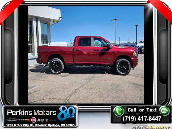 Factory MSRP: $79,960 $14,400 off MSRP! Delmonico Red Pearlcoat 2024 Ram 2500 Big Horn 4WD 6-Speed Automatic Cummins 6.7L I6 Turbodiesel<br><br>Check us out at www.perkinsmotors.com to see our specials! Since opening our doors in 1944, we’ve been proud to serve Colorado Springs, CO, and the surrounding areas of Pueblo, Castle Rock and Denver, CO. Throughout this time of being family owned for 80 years, we’ve maintained a firm commitment to our customers: to offer a wide selection of New Chrysler, Dodge, Fiat, Jeep, and Ram vehicles and quality pre-owned vehicles, and provide a quick, no-hassle car-buying process that ensures everyone drives off the lot satisfied with their purchase.<br><br>Bed Utility Group (LED Bed Lighting, MOPAR Deployable Bed Step, and MOPAR Spray In Bedliner), Cold Weather Group (Engine Block Heater and MOPAR Winter Front Grille Cover), Heated Seats & Wheel Group (Heated Front Seats, Heated Steering Wheel, Leather Wrapped Steering Wheel, and Steering Wheel Mounted Audio Controls), Level 1 Equipment Group (2 Way Rear Headrest Seat, 2nd Row In Floor Storage Bins, 4 Way Front Headrests, 40/20/40 Split Bench Seat, 4G LTE Wi-Fi Hot Spot, 8.4 Touchscreen Display, Apple CarPlay, Auto Power-Folding Mirrors, Big Horn IP Badge, Black Exterior Mirrors, Bluetooth Handsfree Phone & Audio, Center Hub, Connectivity - US/Canada, Dual Glove Boxes, Exterior Mirrors Courtesy Lamps, Exterior Mirrors w/Heating Element, Exterior Mirrors w/Supplemental Signals, Foam Bottle Insert (Door Trim Panel), Footwell Courtesy Lamp, For Details, Visit DriveUconnect.com, For More Info, Call 800-643-2112, Forward & Reverse Utility Lights, Front Armrest w/Cupholders, Front Center Seat Cushion Storage, Front Fog Lamps, Front Seat Back Map Pockets, Global Telematics Box Module (TBM), Glove Box Lamp, Google Android Auto, GPS Antenna Input, Integrated Center Stack Radio, Integrated Voice Command w/Bluetooth, Locking Lower Glove Box, Manual Adjust 4-Way Front Passenger Seat, Mirror Running Lights, Power 2-Way Driver Lumbar Adjust, Power Adjust 8-Way Driver Seat, Power Adjust Mirrors, Power Adjustable Convex Aux Mirrors, Power Heated Fold Telescope Mirrors, Power Telescoping Mirrors, Rear 60/40 Folding Seat, Rear Dome w/On/Off Switch Lamp, Remote USB Port - Charge Only, Selectable Tire Fill Alert, SiriusXM Radio Service, SiriusXM Satellite Radio, Storage Tray, and Wheels: 18 x 8.0 Polished Aluminum), Night Edition (Black Exterior Truck Badging, Black Headlamp Bezels, Black Interior Accents, Black Ram Head Tailgate Badge, Black Tail Lamp Bezels, Black Wheel Center Hub, Body Color Door Handles, Body Color Grille Surround, Gloss Black Nostrils/MIC Black Grille, Painted Front Bumper, Painted Rear Bumper, ParkSense Front/Rear Park Assist System, and Wheels: 20 x 8.0 Black Painted Aluminum), Protection Group (Tow Hooks), Quick Order Package 2HZ Big Horn, 12 Touchscreen Display, 220 Amp Alternator, 3.73 Axle Ratio, 4-Wheel Disc Brakes, 5th Wheel/Gooseneck Towing Prep Group, 6 Speakers, 9 Alpine Speakers w/Subwoofer, ABS brakes, Active Noise Control System, Air Conditioning, Air Conditioning ATC w/Dual Zone Control, Alexa Built-In, All R1 High Radios, All Radio Equipped Vehicles, Auto Level Rear Air Suspension, Blind Spot & Cross Path Detection, Brake assist, Bumpers: chrome, Center Stack Storage Drawer, Clearance Lamps, Cloth 40/20/40 Bench Seat, Compass, Connected Travel & Traffic Services, Cruise Control, Dash Pass Thru Wire Circuits, Delay-off headlights, Disassociated Touchscreen Display, Driver door bin, Dual front impact airbags, Dual front side impact airbags, Electronic Stability Control, Electronically Controlled Throttle, Emergency communication system: SiriusXM Guardian, Front anti-roll bar, Front Center Armrest w/Storage, Front License Plate Bracket, Front readi Sale price includes all manufacture's incentives and dealer discounts. Sale price not available on lease or compatible with special APR. $1000 - 2024 Bonus Cash . Exp. 1