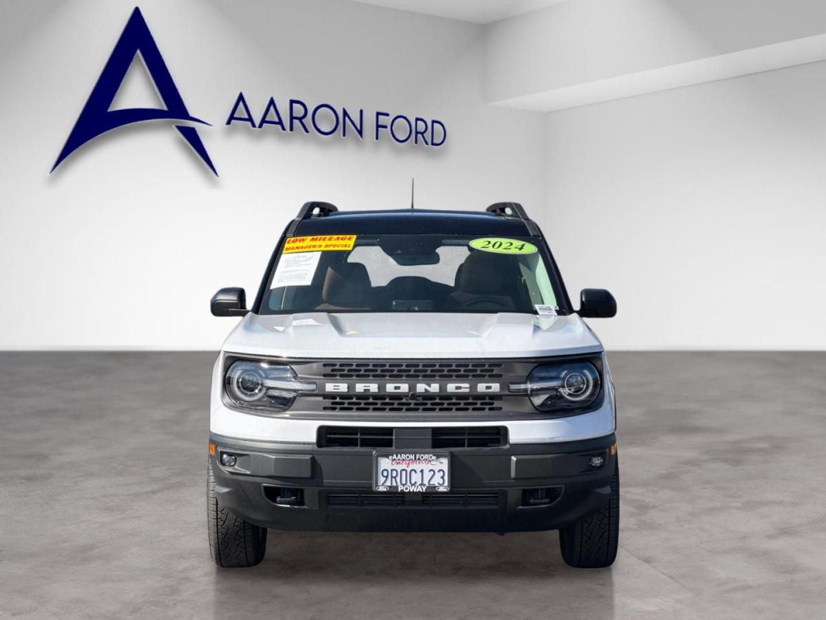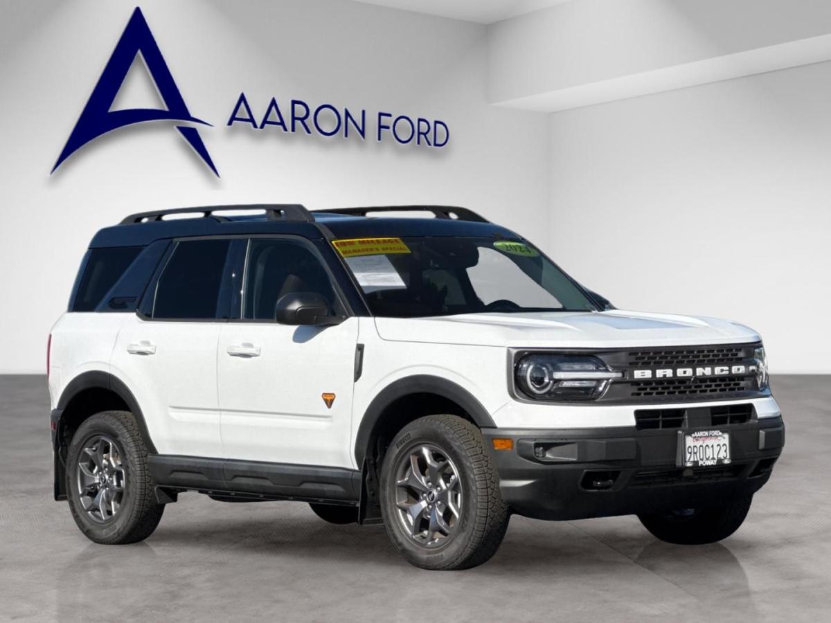 Introducing the 2024 Ford Bronco Sport Badlands, a rugged and versatile SUV that's ready to take on any adventure. With its powerful EcoBoost engine, advanced 4WD system, and an impressive array of premium features, this Bronco Sport is the perfect companion for the modern adventurer.Highlights of this well-equipped Bronco Sport Badlands include:• Premium Package: Dual-Zone Electronic Automatic Temperature Control, Bang & Olufsen Sound System, Wireless Charging Pad, Heated Steering Wheel, and more• Ford Co-Pilot360 Assist+: Evasive Steering Assist, Voice-Activated Navigation, Intelligent Adaptive Cruise Control, and more• Power MoonroofThis one-owner Bronco Sport also boasts a clean CARFAX report and low mileage, making it an exceptional value. With its striking white exterior and leather-trimmed interior, this SUV is not only capable but also stylish and comfortable.Imagine yourself behind the wheel, exploring the great outdoors with confidence and convenience. The Bronco Sport's turbocharged engine delivers an exhilarating driving experience, while the advanced 4WD system ensures you can tackle any terrain with ease.The premium features inside the cabin, such as the Bang & Olufsen sound system and wireless charging pad, will keep you connected and entertained on your adventures. And with the power moonroof, you can enjoy the great outdoors from the comfort of your Bronco Sport.Safety is also a top priority, with the Ford Co-Pilot360 Assist+ suite of advanced driver-assistance technologies. Features like Evasive Steering Assist and Intelligent Adaptive Cruise Control will give you added peace of mind on the road.This 2024 Ford Bronco Sport Badlands is a true gem, offering the perfect blend of capability, technology, and style. With its low mileage and impressive list of features, it's an opportunity you won't want to miss.We invite you to experience the power and versatility of the Bronco Sport Badlands for yourself. Visit our showroom today and let us demonstrate why this SUV is the perfect choice for your next adventure.