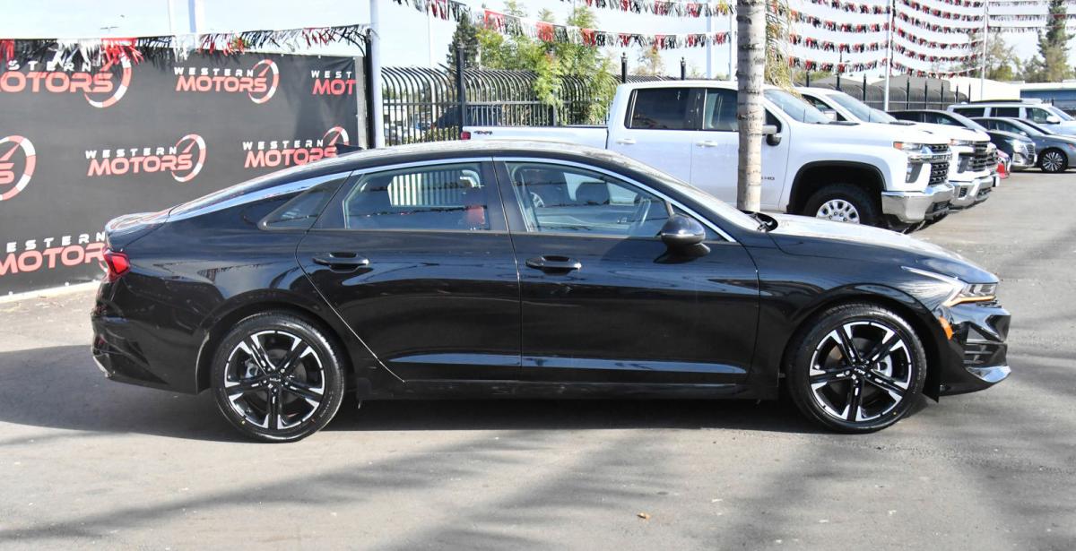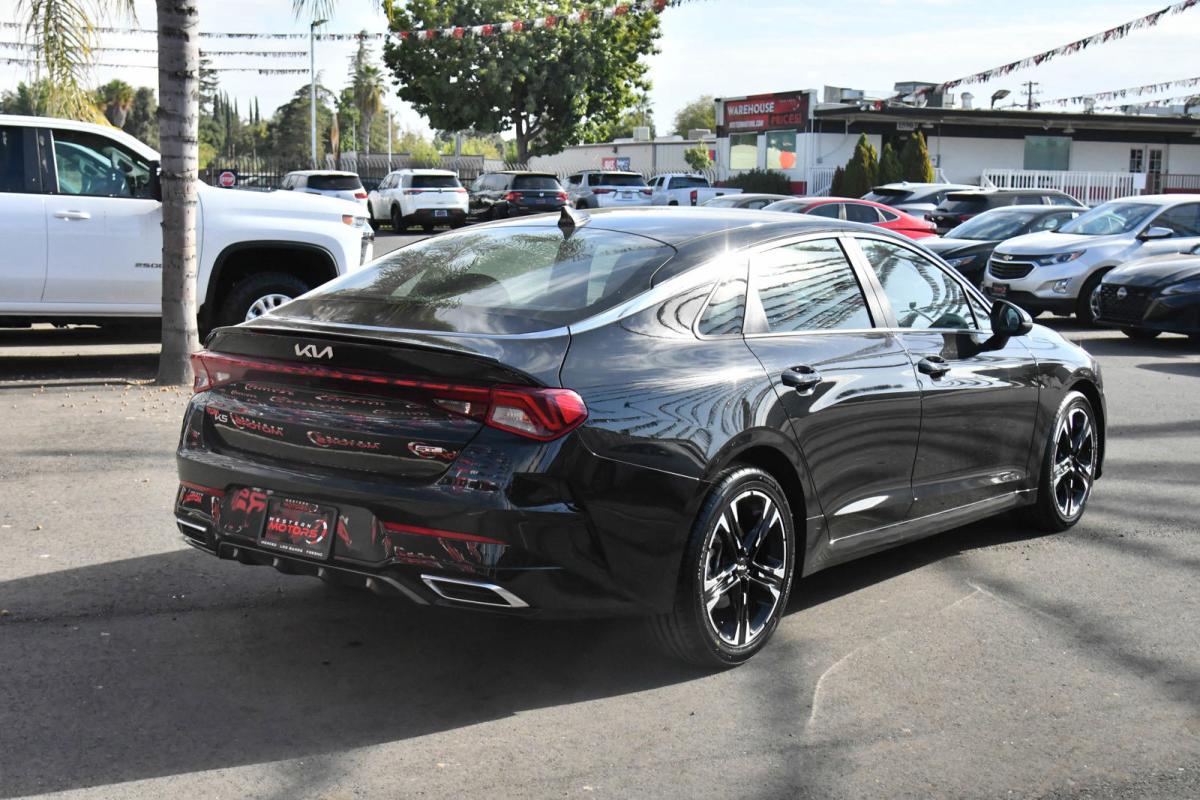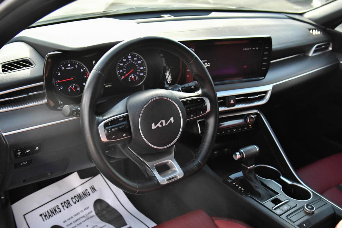 Boasts 37 Highway MPG and 27 City MPG! This Kia K5 boasts a Intercooled Turbo Regular Unleaded I-4 1.6 L/98 engine powering this Automatic transmission. GT-LINE RED INTERIOR PACKAGE, GT-LINE PREMIUM PACKAGE -inc: Smart Cruise Control w/Stop & Go, LED Projection Headlamps, Highway Driving Assist, Forward Collision Avoidance-Assist, cyclist and junction turning, EBONY BLACK.*This Kia K5 Features the Following Options *Window Grid Antenna, Wheels: 18 Gloss Black Machined Finish Alloy, Variable Intermittent Wipers, Urethane Gear Shifter Material, Turn-By-Turn Navigation Directions, Trunk Rear Cargo Access, Trip Computer, Transmission: 8-Speed Automatic -inc: drive mode select system, Transmission w/Sequential Shift Control, Tires: 235/45R18.