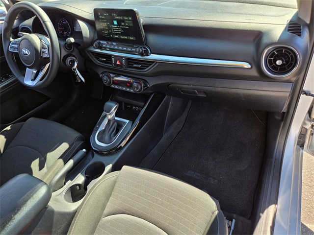 Odometer is 13449 miles below market average!30/40 City/Highway MPGSilky Silver 2019 Kia Forte S FWD CVT 2.0L I4 DOHC Dual CVVTIf you don't drive here, you can't save here!Awards: * JD Power Automotive Performance, Execution and Layout (APEAL) Study, Initial Quality Study (IQS) * 2019 KBB.com 10 Best Sedans Under $30,000Price may not include recon fee. S Premium Package (Overhead LED Front & Rear Reading Lights, Power Sunroof, and Single Projection LED Headlights), 4-Wheel Disc Brakes, 6 Speakers, ABS brakes, Air Conditioning, Alloy wheels, AM/FM radio: SiriusXM, Apple CarPlay & Android Auto, Automatic temperature control, Brake assist, Bumpers: body-color, Carpeted Floor Mats, Delay-off headlights, Driver door bin, Driver vanity mirror, Dual front impact airbags, Dual front side impact airbags, Electronic Stability Control, Exterior Parking Camera Rear, Front anti-roll bar, Front Bucket Seats, Front Center Armrest, Front dual zone A/C, Front fog lights, Front reading lights, Front wheel independent suspension, Fully automatic headlights, Illuminated entry, Low tire pressure warning, Occupant sensing airbag, Overhead airbag, Overhead console, Panic alarm, Passenger door bin, Passenger vanity mirror, Power door mirrors, Power steering, Power windows, Radio data system, Radio: UVO eServices AM/FM/MP3 Audio System, Rear seat center armrest, Rear window defroster, Remote keyless entry, Security system, Speed control, Split folding rear seat, Steering wheel mounted audio controls, Tachometer, Telescoping steering wheel, Tilt steering wheel, Traction control, Tricot Cloth Seat Trim, Trip computer, Variably intermittent wipers, and Wheels: 17" x 7.0" Machine Finish Alloy.