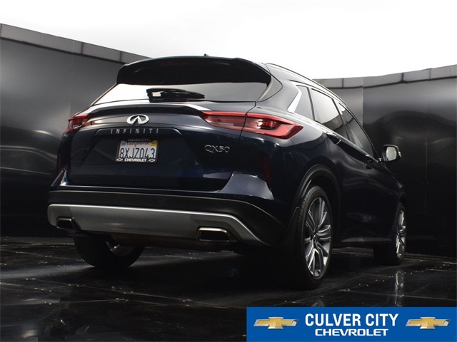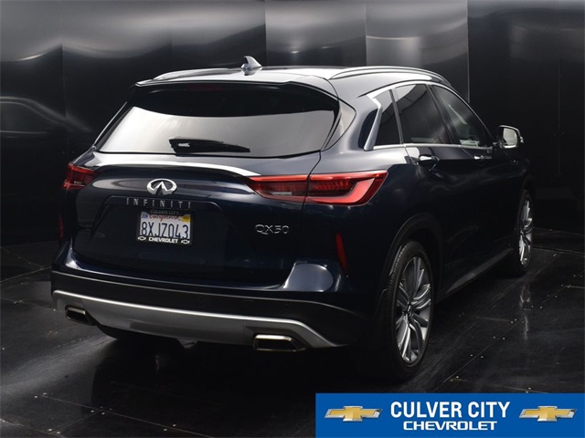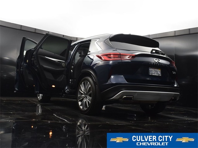 VIP LOYALTY PROGRAM When you purchase a new Chevrolet or Certified Pre-Owned Chevy, Buick, GMC or Cadillac from Culver City Chevrolet, you will be enrolled in our VIP Loyalty Program and receive the following VIP privileges for as long as you own your vehicle: *FREE Lube, Oil, and Filter Changes *FREE Car Washes *Courtesy Loaner Vehicle *And more! SAVE OVER $6,500 BASED ON AVERAGE SERVICE OVER 5 YEARS!At Culver City Chevrolet, our entire team works together to provide you with the ultimate Chevrolet shopping experience. We are family owned and operated, so we treat you just like you are part of our family. We are also very passionate about serving the community in which we work, live and play! From the Little League teams we support, to the next customer that walks in the door, we are committed to doing the right thing. Our goal is to exceed your expectations, deliver the best service possible, and make car shopping fun again. We offer a large inventory of Chevrolet cars, trucks, SUVs and electric vehicles, and an incredible lineup of luxury vehicles for sale as well! Just find the specific vehicle that fits your needs and schedule your test drive by calling 424-216-6027 today. We provide plenty of buying and leasing options for drivers in the Los Angeles area. WE LOOK FORWARD TO BEING THE NEW AND USED CHEVROLET VEHICLE SOURCE FOR YOU IN CULVER CITY!Priced below KBB Fair Purchase Price! 2021 INFINITI QX50 Sensory Hermosa Blue I4 23/29 City/Highway MPG 23/29 City/Highway MPG KBB Fair Market Range Low: $26,510CARFAX One-Owner. Clean CARFAX.