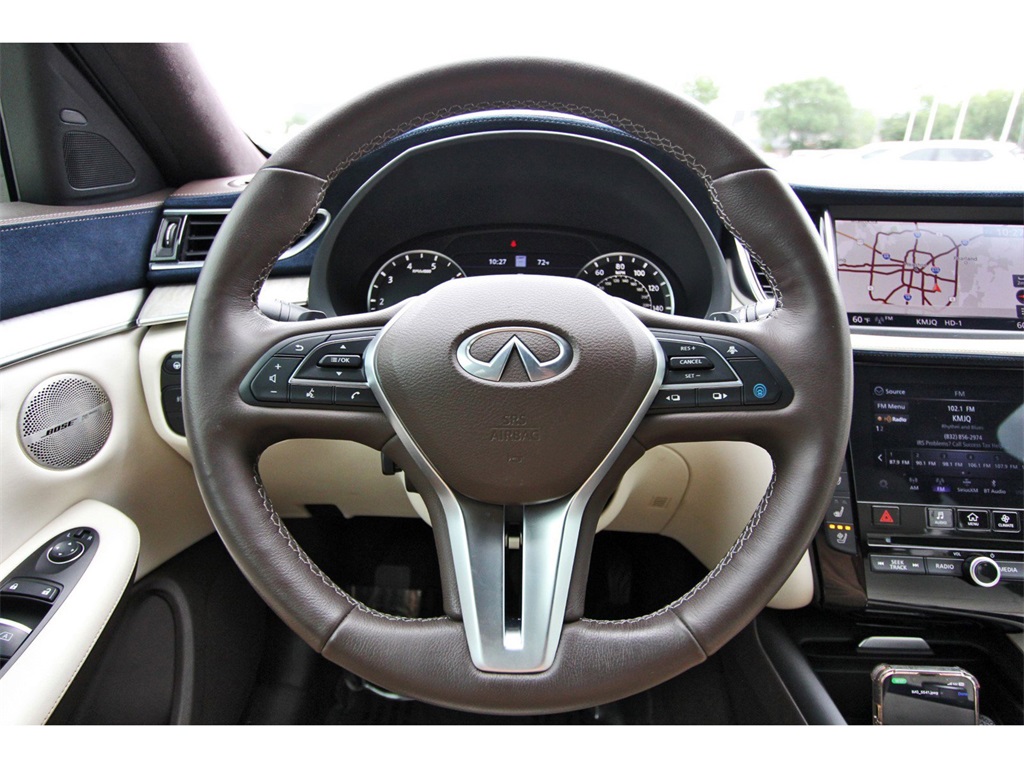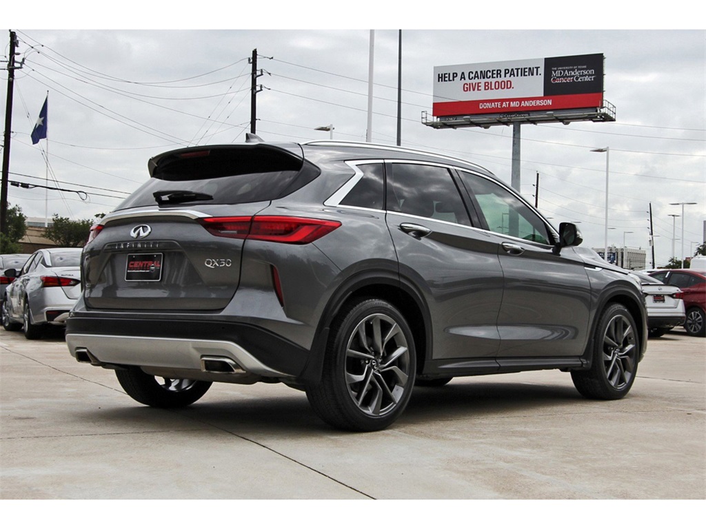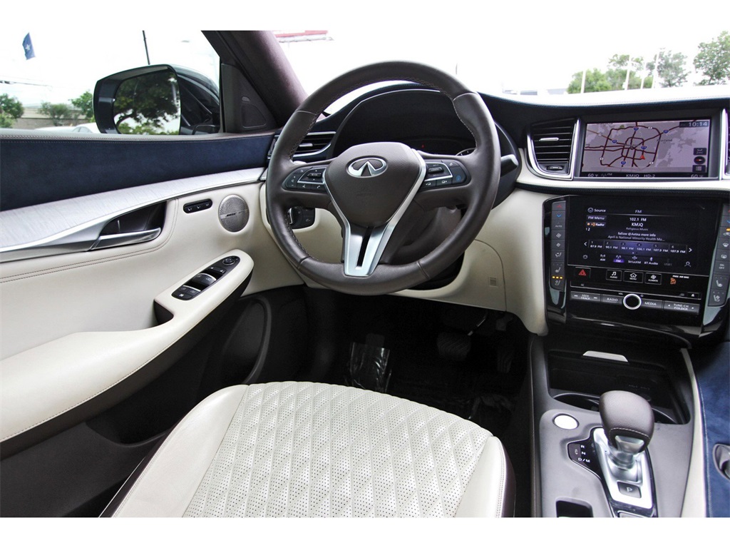 Central Houston Nissan is proud to present you with another True Market Priced Pre-Owned Vehicle. This 2021 INFINITI QX50 Autograph Nissan CPO Select is loaded with the following Factory Options: Premium White Leather Package (Premium Grade Leather Seat Trim), QX50 Autograph, Nissan CPO Select Certified, Graphite Shadow, White Leather, 16 Speakers, Apple CarPlay/Android Auto, Auto tilt-away steering wheel, Climate Controlled Front Bucket Seats, Front dual zone A/C, Heads-Up Display, Illuminated Kick Plates, Memory seat, Navigation system: INFINITI InTouch Navigation, Power driver seat, Power Liftgate, Power moonroof, Power passenger seat, Radio: Bose Performance Series Audio System, Rain sensing wipers, Rear air conditioning, Remote keyless entry, Security system, Semi-Aniline Leather Seat Trim, Steering wheel memory, Telescoping steering wheel, Ventilated front seats, and Wheels: 20" x 8.5J Dark Painted Premium White Leather Package (Premium Grade Leather Seat Trim), QX50 Autograph, Nissan CPO Select Certified, Graphite Shadow, White Leather, 16 Speakers, Apple CarPlay/Android Auto, Auto tilt-away steering wheel, Climate Controlled Front Bucket Seats, Front dual zone A/C, Heads-Up Display, Illuminated Kick Plates, Memory seat, Navigation system: INFINITI InTouch Navigation, Power driver seat, Power Liftgate, Power moonroof, Power passenger seat, Radio: Bose Performance Series Audio System, Rain sensing wipers, Rear air conditioning, Remote keyless entry, Security system, Semi-Aniline Leather Seat Trim, Steering wheel memory, Telescoping steering wheel, Ventilated front seats, Wheels: 20" x 8.5J Dark Painted, 4-Wheel Disc Brakes, 5.846 Axle Ratio, ABS brakes, Air Conditioning, Alloy wheels, AM/FM radio: SiriusXM, Anti-whiplash front head restraints, Auto High-beam Headlights, Auto-dimming Rear-View mirror, Automatic temperature control, Brake assist, Bumpers: body-color, CD player, Delay-off headlights, Driver door bin, Driver vanity mirror, Dual front impact airbags, Dual front side impact airbags, Electronic Stability Control, Emergency communication system: INFINITI InTouch, Floor Mats, Four wheel independent suspension, Front anti-roll bar, Front Bucket Seats, Front Center Armrest, Front fog lights, Front reading lights, Garage door transmitter: HomeLink, Heated door mirrors, Heated front seats, Heated steering wheel, Illuminated entry, Knee airbag, Leather Shift Knob, Literature Kit, Low tire pressure warning, Occupant sensing airbag, Outside temperature display, Overhead airbag, Overhead console, Panic alarm, Passenger door bin, Passenger vanity mirror, Power door mirrors, Power steering, Power windows, Radio data system, Rear anti-roll bar, Rear reading lights, Rear seat center armrest, Rear side impact airbag, Rear window defroster, Rear window wiper, Roof rack: rails only, Speed control, Speed-sensing steering, Speed-Sensitive Wipers, Splash Guards (Set of 4), Split folding rear seat, Spoiler, Steering wheel mounted audio controls, Tachometer, Tilt steering wheel, Traction control, Trip computer, Turn signal indicator mirrors, Variably intermittent wipers, and Welcome Lighting!!Central Houston Nissan is more than just your typical car dealership. When our customers visit us, our goal is to provide quality vehicles, exceptional service and a friendly atmosphere. Our staff has been trained to create ease during your purchase or service experience and we are always making sure you get everything you want and deserve out of your visit. Our vision and mission is an employee-centered and customer-focused environment. Vehicles may be subject to prep package and market adjustment. When you buy from Central Houston Nissan, we'll make it the best car buying experience you've ever had. When you purchase a New Nissan or a qualifying Pre-Owned vehicle from Central Houston Nissan, you are automatically enrolled into our Central Houston Nissan Central Care Program at no cost to you. You can’t beat that! Vehicles may be subject