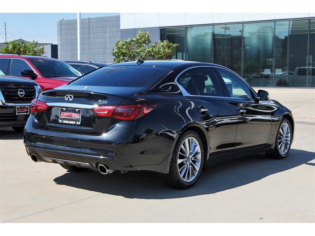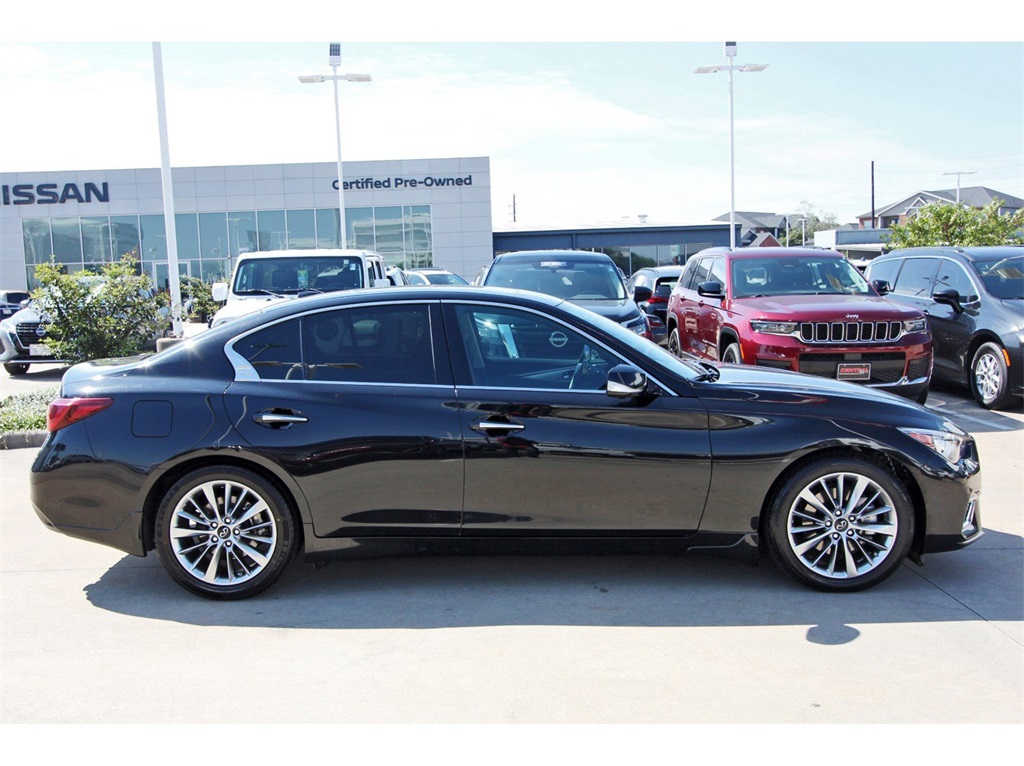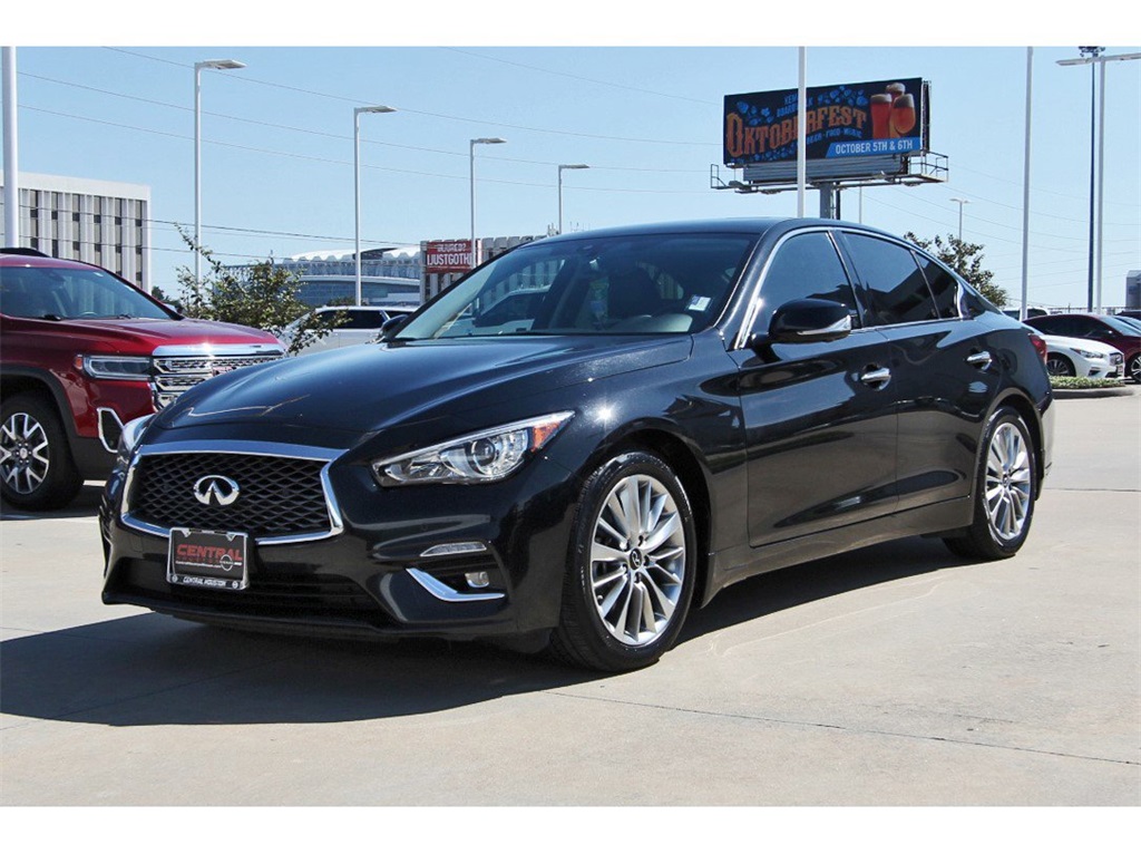 Central Houston Nissan is proud to present you with another True Market Priced Pre-Owned Vehicle. This 2022 INFINITI Q50 LUXE is loaded with the following Factory Options: Cargo Package (Cargo Net, First Aid Kit, Shopping Bag Hooks, and Trunk Mat), 16 Speakers, 18" x 7.5" Aluminum Alloy Wheels, 4-Wheel Disc Brakes, ABS brakes, Air Conditioning, Alloy wheels, AM/FM radio: SiriusXM, Apple CarPlay/Android Auto, Auto High-beam Headlights, Auto tilt-away steering wheel, Auto-dimming Rear-View mirror, Automatic temperature control, Blind Spot Warning, Brake assist, Bumpers: body-color, CD player, Compass, Delay-off headlights, Driver door bin, Driver vanity mirror, Dual front impact airbags, Dual front side impact airbags, Electronic Stability Control, Emergency communication system: INFINITI Connection, Four wheel independent suspension, Front anti-roll bar, Front Bucket Seats, Front Center Armrest, Front dual zone A/C, Front fog lights, Front reading lights, Fully automatic headlights, Garage door transmitter: HomeLink, Heated door mirrors, Heated Front Bucket Seats, Heated front seats, Heated steering wheel, Illuminated entry, INFINITI Radiant Welcome Lighting, Leather Seating Surfaces, Leather Shift Knob, Leather steering wheel, Literature Kit, Low tire pressure warning, Memory seat, Occupant sensing airbag, Outside temperature display, Overhead airbag, Overhead console, Panic alarm, Passenger door bin, Passenger vanity mirror, Power door mirrors, Power driver seat, Power moonroof, Power passenger seat, Power steering, Power windows, Radio data system, Radio: INFINITI InTouch w/AM/FM/HD/CD, Rain sensing wipers, Rear anti-roll bar, Rear reading lights, Rear seat center armrest, Rear USB Charging Ports, Rear window defroster, Remote keyless entry, Security system, Speed control, Speed-Sensitive Wipers, Splash Guards, Split folding rear seat, Steering wheel memory, Steering wheel mounted audio controls, Tachometer, Telescoping steering wheel, Tilt steering wheel, Traction control, Trip computer, Turn signal indicator mirrors, and Variably intermittent wipers!!Central Houston Nissan is more than just your typical car dealership. When our customers visit us, our goal is to provide quality vehicles, exceptional service and a friendly atmosphere. Our staff has been trained to create ease during your purchase or service experience and we are always making sure you get everything you want and deserve out of your visit. Our vision and mission is an employee-centered and customer-focused environment. Vehicles may be subject to prep package and market adjustment. When you buy from Central Houston Nissan, we'll make it the best car buying experience you've ever had. When you purchase a New Nissan or a qualifying Pre-Owned vehicle from Central Houston Nissan, you are automatically enrolled into our Central Houston Nissan Central Care Program at no cost to you. You can’t beat that! Vehicles may be subject to prep package and market adjustment. Stop by 2901 S Loop W, Houston, Texas 77054 today!!!