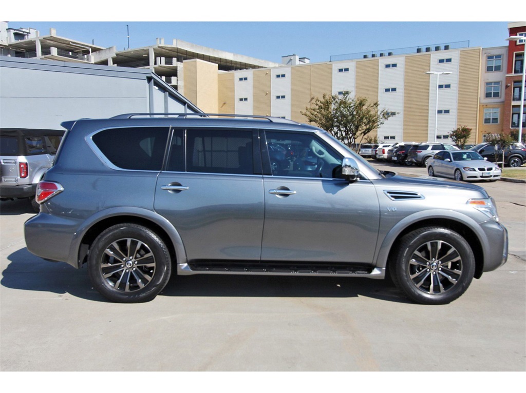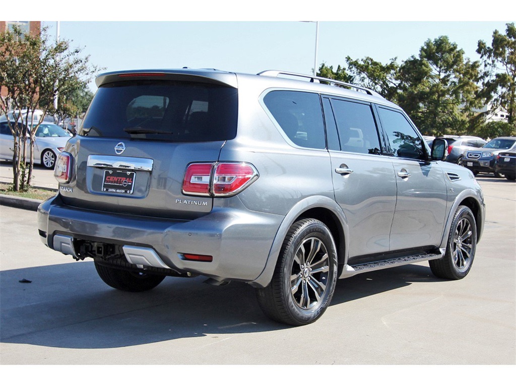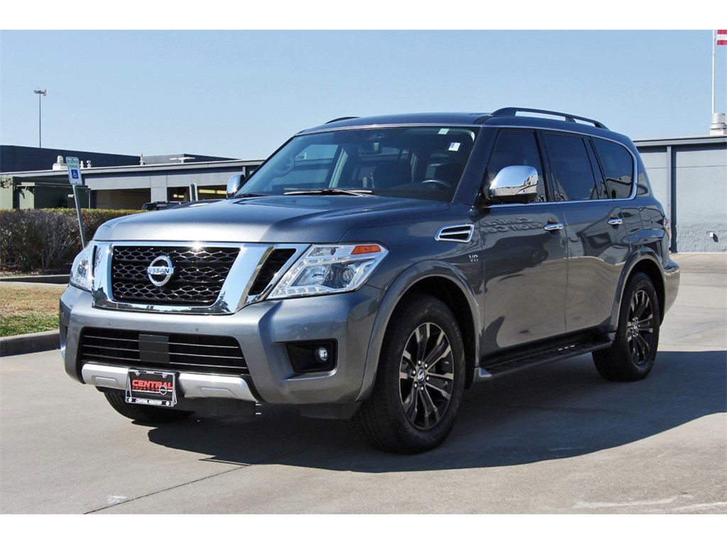 Central Houston Nissan is proud to present you with another True Market Priced Pre-Owned Vehicle. This 2018 Nissan Armada Platinum is loaded with the following Factory Options: 4WD Cargo Package, 4WD, 13 Speakers, 2.937 Axle Ratio, 2nd & 3rd Row Carpeted Mats, 3rd row seats: split-bench, 4-Wheel Disc Brakes, ABS brakes, Air Conditioning, Alloy wheels, AM/FM radio: SiriusXM, Anti-whiplash front head restraints, Auto-leveling suspension, Automatic temperature control, Brake assist, Bumpers: body-color, CD player, Delay-off headlights, Driver door bin, Driver vanity mirror, Dual front impact airbags, Dual front side impact airbags, Electronic Stability Control, Emergency communication system: NissanConnect Services, Four wheel independent suspension, Front anti-roll bar, Front Bucket Seats, Front Center Armrest, Front dual zone A/C, Front reading lights, Fully automatic headlights, Heated door mirrors, Heated front seats, Illuminated entry, Leather Shift Knob, Low tire pressure warning, Navigation System, Occupant sensing airbag, Outside temperature display, Overhead airbag, Overhead console, Panic alarm, Passenger door bin, Passenger vanity mirror, Power door mirrors, Power driver seat, Power passenger seat, Power steering, Power windows, Radio data system, Radio: Bose AM/FM/SXM/CD/MP3/HD Radio, Rear air conditioning, Rear anti-roll bar, Rear reading lights, Rear seat center armrest, Rear window defroster, Rear window wiper, Reclining 3rd row seat, Remote keyless entry, Roof rack: rails only, Security system, Speed control, Speed-sensing steering, Speed-Sensitive Wipers, Split folding rear seat, Spoiler, Steering wheel mounted audio controls, Tachometer, Tilt steering wheel, Traction control, Trip computer, Turn signal indicator mirrors, Variably intermittent wipers, and Voltmeter!!Central Houston Nissan is more than just your typical car dealership. When our customers visit us, our goal is to provide quality vehicles, exceptional service and a friendly atmosphere. Our staff has been trained to create ease during your purchase or service experience and we are always making sure you get everything you want and deserve out of your visit. Our vision and mission is an employee-centered and customer-focused environment. Vehicles may be subject to prep package and market adjustment. When you buy from Central Houston Nissan, we'll make it the best car buying experience you've ever had. When you purchase a New Nissan or a qualifying Pre-Owned vehicle from Central Houston Nissan, you are automatically enrolled into our Central Houston Nissan Central Care Program at no cost to you. You can’t beat that! Vehicles may be subject to prep package and market adjustment. Stop by 2901 S Loop W, Houston, Texas 77054 today!!!