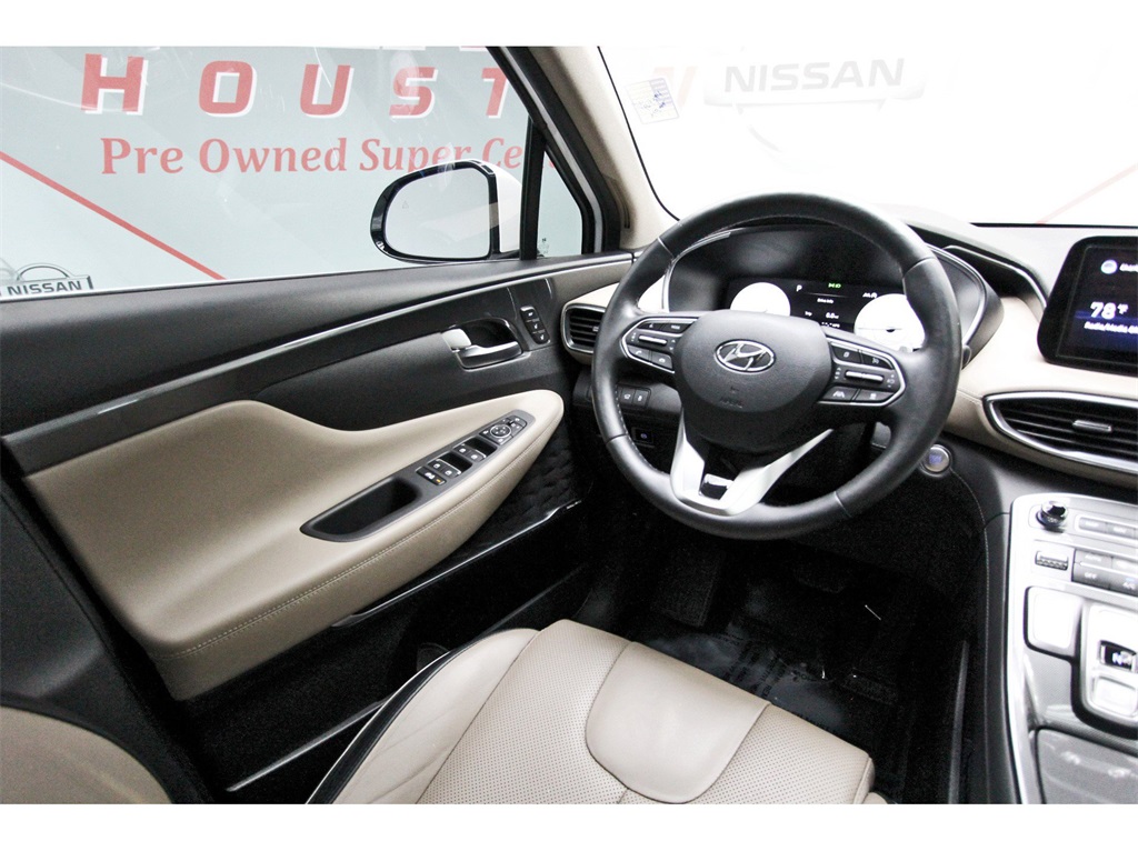 Central Houston Nissan is proud to present you with another True Market Priced Pre-Owned Vehicle. This 2022 Hyundai Santa Fe Limited is loaded with the following Factory Options: Beige Leather Option Group 01, Beige Leather, 12 Speakers, 4-Wheel Disc Brakes, ABS brakes, Air Conditioning, Alloy wheels, AM/FM radio: SiriusXM, Apple CarPlay & Android Auto, Auto High-beam Headlights, Auto-dimming Rear-View mirror, Automatic temperature control, Axle Ratio: 3.316, Brake assist, Bumpers: body-color, Cargo Net, Carpeted Floor Mats, Delay-off headlights, Driver door bin, Driver vanity mirror, Dual front impact airbags, Dual front side impact airbags, Electronic Stability Control, Emergency communication system, First Aid Kit, Four wheel independent suspension, Front anti-roll bar, Front Bucket Seats, Front Center Armrest, Front dual zone A/C, Front reading lights, Fully automatic headlights, Garage door transmitter: HomeLink, harman/kardon® Speakers, Heated & Ventilated Front Bucket Seats, Heated door mirrors, Heated front seats, Heated rear seats, Heated steering wheel, Illuminated entry, Leather Seat Trim, Leather steering wheel, Low tire pressure warning, Memory seat, Mudguards, Navigation System, Occupant sensing airbag, Outside temperature display, Overhead airbag, Overhead console, Panic alarm, Passenger door bin, Passenger vanity mirror, Power door mirrors, Power driver seat, Power Liftgate, Power moonroof, Power passenger seat, Power steering, Power windows, Radio: AM/FM Harman Kardon Display Audio, Rain sensing wipers, Rear anti-roll bar, Rear seat center armrest, Rear window defroster, Rear window wiper, Remote keyless entry, Security system, Speed control, Speed-sensing steering, Split folding rear seat, Spoiler, Steering wheel mounted audio controls, Tachometer, Telescoping steering wheel, Tilt steering wheel, Traction control, Trip computer, Turn signal indicator mirrors, Variably intermittent wipers, Ventilated front seats, and Wheels: 19" x 7.5J Alloy!!Central Houston Nissan is more than just your typical car dealership. When our customers visit us, our goal is to provide quality vehicles, exceptional service and a friendly atmosphere. Our staff has been trained to create ease during your purchase or service experience and we are always making sure you get everything you want and deserve out of your visit. Our vision and mission is an employee-centered and customer-focused environment. Vehicles may be subject to prep package and market adjustment. When you buy from Central Houston Nissan, we'll make it the best car buying experience you've ever had. When you purchase a New Nissan or a qualifying Pre-Owned vehicle from Central Houston Nissan, you are automatically enrolled into our Central Houston Nissan Central Care Program at no cost to you. You can’t beat that! Vehicles may be subject to prep package and market adjustment. Stop by 2901 S Loop W, Houston, Texas 77054 today!!!