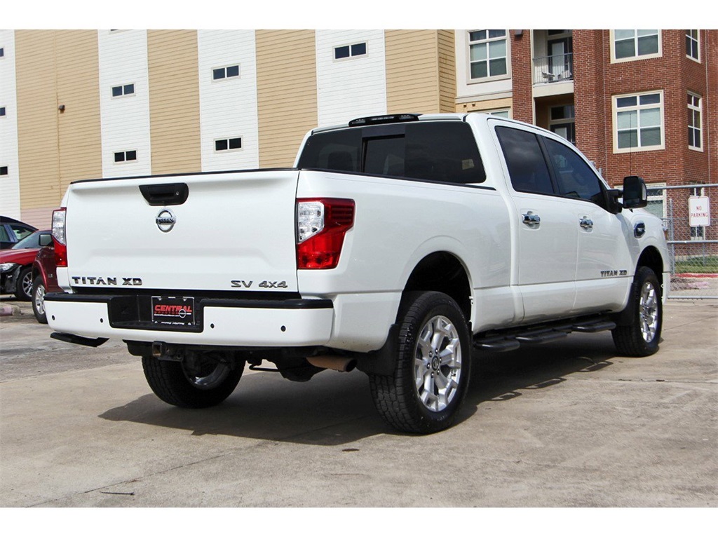 Central Houston Nissan is proud to present you with another True Market Priced Pre-Owned Vehicle. This 2020 Nissan Titan XD SV is loaded with the following Factory Options:9" Touch Screen Navigation, Apple Car Play, Navigation, Protection Package 1 (All-Season Floor Mats), SV Convenience Package (110V/12V Outlets In Back Of Center Console, 2 Illuminated USB-A Ports In Back Of Center Console, 20" Painted Alloy Wheels, 20" Wheels, Auto Dual Zone HVAC, Auto-Dimming Rear-View Mirror, Chrome Interior Door Locks, Dedicated Configurable Cell Phone Holder, Engine Remote Start, Front & Rear Parking Sensors, Heated Front Captain's Chairs, Intelligent Auto Headlights, Intelligent Key System, Leather-Wrapped Steering Wheel, Power Sliding Rear Window w/Defogger, Radio: NissanConnect w/Navigation, Rear HVAC Vents, and Traffic Sign Recognition (TSR)), SV Utility Package (110V Bed Outlet, Flat Floor Function, LED Tailgate Area Illumination, LED Under Rail Bed Lighting, Rain Sensing Wipers, Rear Utility Bed Step, Spray-On Bedliner, and Utilitrack System w/4 Tie-Down Cleats), Titan XD SV, 4D Crew Cab, 5.6L V8 DOHC 32V LEV3-ULEV70 400hp, 4WD, Glacier White, Black Cloth, AM/FM radio: SiriusXM, Auto High-beam Headlights, Blind Spot Warning, Brake assist, Fully automatic headlights, Illuminated entry, Navigation System, NissanConnect featuring Apple CarPlay and Android Auto, Rear-Seat Entertainment, Remote keyless entry, Security system, and Steering wheel mounted audio controls Protection Package 1 (All-Season Floor Mats), SV Convenience Package (110V/12V Outlets In Back Of Center Console, 2 Illuminated USB-A Ports In Back Of Center Console, 20" Painted Alloy Wheels, 20" Wheels, Auto Dual Zone HVAC, Auto-Dimming Rear-View Mirror, Chrome Interior Door Locks, Dedicated Configurable Cell Phone Holder, Engine Remote Start, Front & Rear Parking Sensors, Heated Front Captain's Chairs, Intelligent Auto Headlights, Intelligent Key System, Leather-Wrapped Steering Wheel, Power Sliding Rear Window w/Defogger, Radio: NissanConnect w/Navigation, Rear HVAC Vents, and Traffic Sign Recognition (TSR)), SV Utility Package (110V Bed Outlet, Flat Floor Function, LED Tailgate Area Illumination, LED Under Rail Bed Lighting, Rain Sensing Wipers, Rear Utility Bed Step, Spray-On Bedliner, and Utilitrack System w/4 Tie-Down Cleats), Titan XD SV, 4D Crew Cab, 5.6L V8 DOHC 32V LEV3-ULEV70 400hp, 4WD, Glacier White, Black Cloth, AM/FM radio: SiriusXM, Auto High-beam Headlights, Blind Spot Warning, Brake assist, Fully automatic headlights, Illuminated entry, Navigation System, NissanConnect featuring Apple CarPlay and Android Auto, Rear-Seat Entertainment, Remote keyless entry, Security system, Steering wheel mounted audio controls, 4.083 Axle Ratio, 4-Wheel Disc Brakes, ABS brakes, Air Conditioning, Carpet Floor Mats, Driver door bin, Dual front impact airbags, Dual front side impact airbags, Electronic Stability Control, Front anti-roll bar, Front wheel independent suspension, Illuminated Kick Plate - Titan, Knee airbag, Loop Side Steps, Low tire pressure warning, Occupant sensing airbag, Outside temperature display, Overhead airbag, Overhead console, Panic alarm, Passenger door bin, Passenger vanity mirror, Power steering, Power windows, Radio data system, Rear anti-roll bar, Rear Bumper Step & Electronic Tailgate Lock, Rear seat center armrest, Rear step bumper, Rear Under Seat Storage (M11), Rear window defroster, Speed control, Speed-sensing steering, Speed-Sensitive Wipers, Splash Guards w/o Overfenders, Split folding rear seat, Tachometer, Telescoping steering wheel, Tilt steering wheel, Traction control, and Variably intermittent wipers!!
