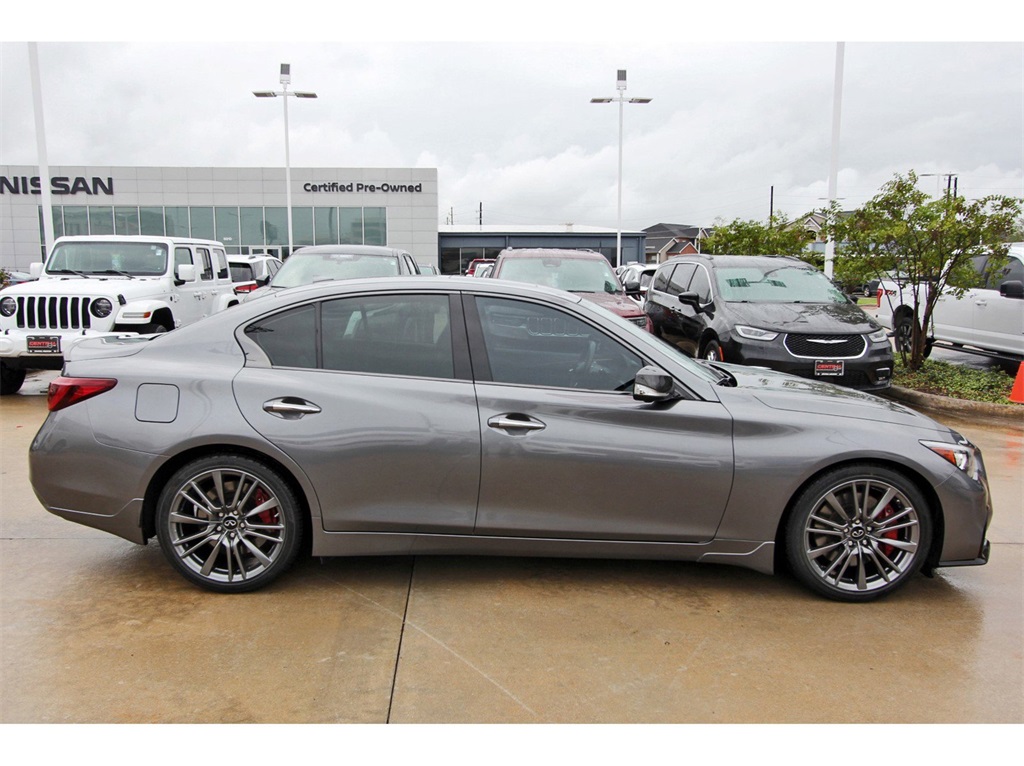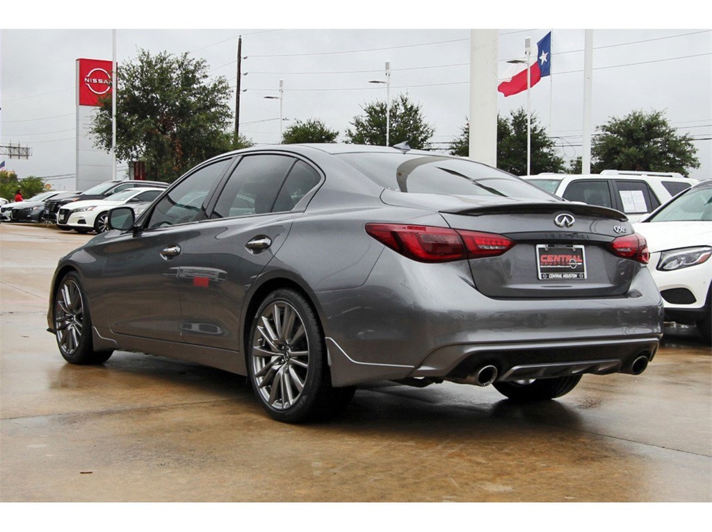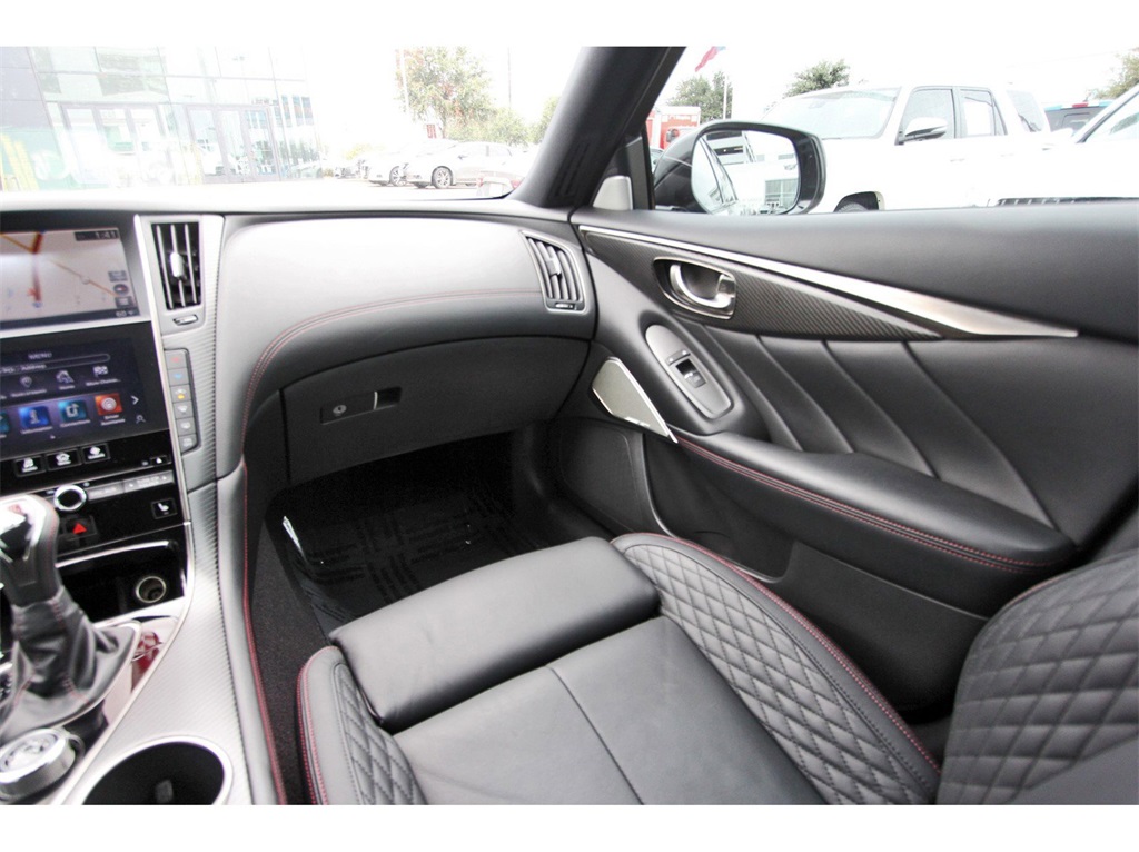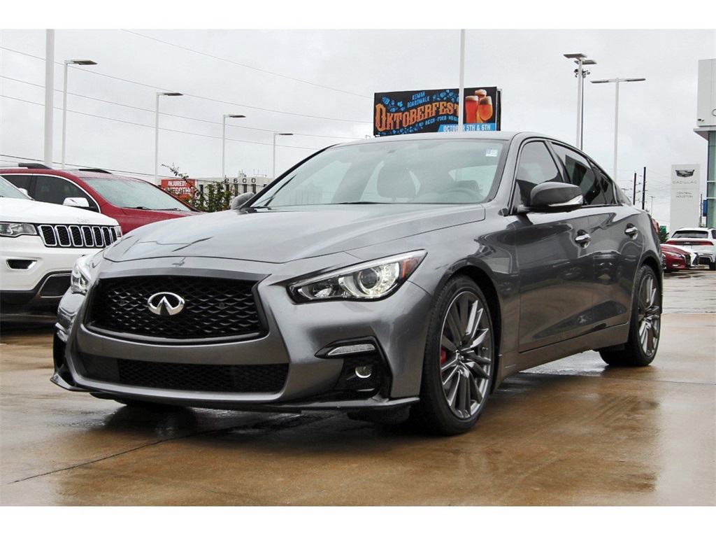 Central Houston Nissan is proud to present you with another True Market Priced Pre-Owned Vehicle. This 2021 INFINITI Q50 Red Sport 400 is loaded with the following Factory Options: 16 Speakers, 4-Wheel Disc Brakes, ABS brakes, Adaptive suspension, Air Conditioning, Alloy wheels, AM/FM radio: SiriusXM, Apple CarPlay/Android Auto, Auto High-beam Headlights, Auto tilt-away steering wheel, Auto-dimming door mirrors, Auto-dimming Rear-View mirror, Automatic temperature control, Blind Spot Warning, Brake assist, Bumpers: body-color, CD player, Compass, Delay-off headlights, Driver door bin, Driver vanity mirror, Dual front impact airbags, Dual front side impact airbags, Electronic Stability Control, Emergency communication system: INFINITI Connection, Four wheel independent suspension, Front anti-roll bar, Front Bucket Seats, Front Center Armrest, Front dual zone A/C, Front fog lights, Front reading lights, Fully automatic headlights, Garage door transmitter: HomeLink, Heated door mirrors, Heated front seats, Heated Front Sport Seats, Heated steering wheel, Illuminated entry, Leather Seating Surfaces, Leather Shift Knob, Leather steering wheel, Low tire pressure warning, Memory seat, Navigation system: INFINITI InTouch Navigation, Occupant sensing airbag, Outside temperature display, Overhead airbag, Overhead console, Panic alarm, Passenger door bin, Passenger vanity mirror, Power door mirrors, Power driver seat, Power moonroof, Power passenger seat, Power steering, Power windows, Radio data system, Radio: INFINITI InTouch w/Navigation, Rain sensing wipers, Rear anti-roll bar, Rear reading lights, Rear seat center armrest, Rear window defroster, Remote keyless entry, Security system, Speed control, Speed-Sensitive Wipers, Split folding rear seat, Steering wheel memory, Steering wheel mounted audio controls, Tachometer, Telescoping steering wheel, Tilt steering wheel, Traction control, Trip computer, Turn signal indicator mirrors, Variably intermittent wipers, and Wheels: 19" x 9" Fr/19" x 9.5" Rr Sport!!Central Houston Nissan is more than just your typical car dealership. When our customers visit us, our goal is to provide quality vehicles, exceptional service and a friendly atmosphere. Our staff has been trained to create ease during your purchase or service experience and we are always making sure you get everything you want and deserve out of your visit. Our vision and mission is an employee-centered and customer-focused environment. Vehicles may be subject to prep package and market adjustment. When you buy from Central Houston Nissan, we'll make it the best car buying experience you've ever had. When you purchase a New Nissan or a qualifying Pre-Owned vehicle from Central Houston Nissan, you are automatically enrolled into our Central Houston Nissan Central Care Program at no cost to you. You can’t beat that! Vehicles may be subject to prep package and market adjustment. Stop by 2901 S Loop W, Houston, Texas 77054 today!!!