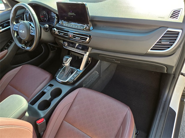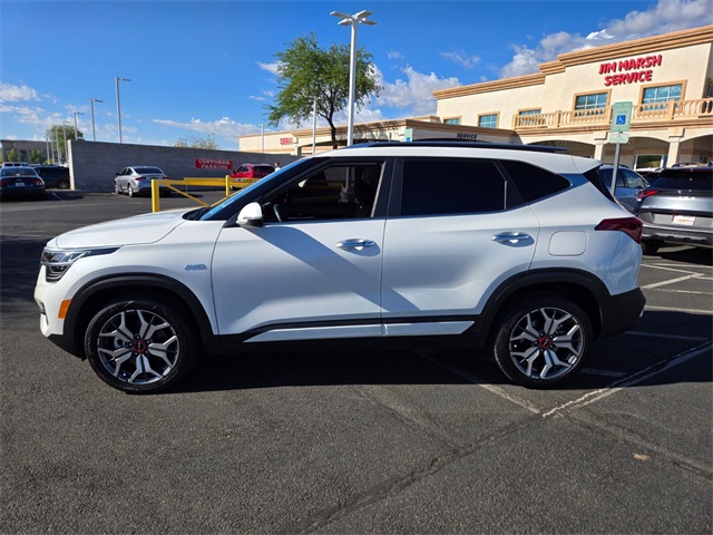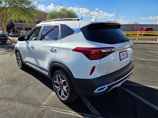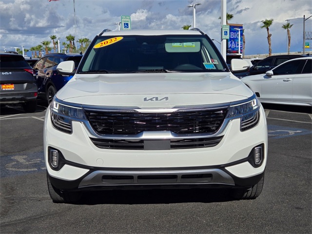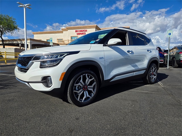 Recent Arrival!Priced below KBB Fair Purchase Price!Odometer is 21780 miles below market average!25/30 City/Highway MPGSnow White Pearl 2022 Kia Seltos SX AWD 7-Speed Automatic I4If you don't drive here, you can't save here!Price may not include recon fee. SX Plum Color Package, 4-Wheel Disc Brakes, 4.643 Axle Ratio, 8 Speakers, ABS brakes, Air Conditioning, Alloy wheels, AM/FM radio: SiriusXM, Apple CarPlay & Android Auto, Auto High-beam Headlights, Auto-dimming Rear-View mirror, Automatic temperature control, Brake assist, Bumpers: body-color, Carpeted Floor Mats, Delay-off headlights, Driver door bin, Driver vanity mirror, Dual front impact airbags, Dual front side impact airbags, Electronic Stability Control, Emergency communication system: 911 Connect, Exterior Parking Camera Rear, Four wheel independent suspension, Front anti-roll bar, Front Bucket Seats, Front Center Armrest, Front fog lights, Front reading lights, Fully automatic headlights, Heated door mirrors, Heated Front Bucket Seats, Heated front seats, Illuminated entry, Leather Shift Knob, Low tire pressure warning, Navigation System, Occupant sensing airbag, Outside temperature display, Overhead airbag, Overhead console, Panic alarm, Passenger door bin, Passenger vanity mirror, Power door mirrors, Power driver seat, Power steering, Power windows, Radio: AM/FM/MP3 Display Audio w/Navigation, Rear seat center armrest, Rear window defroster, Rear window wiper, Remote keyless entry, Roof rack: rails only, Security system, Sofino Premium Leatherette Seat Trim, Speed control, Speed-sensing steering, Split folding rear seat, Spoiler, Sport steering wheel, Steering wheel mounted audio controls, Tachometer, Telescoping steering wheel, Tilt steering wheel, Traction control, Trip computer, Turn signal indicator mirrors, Variably intermittent wipers, and Wheels: 18" Alloy w/Machined Finish.