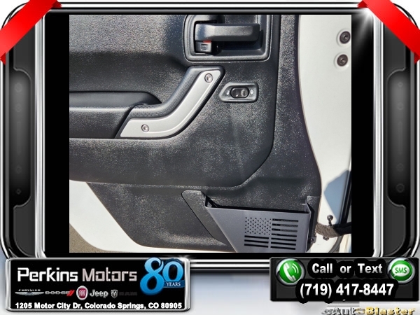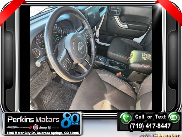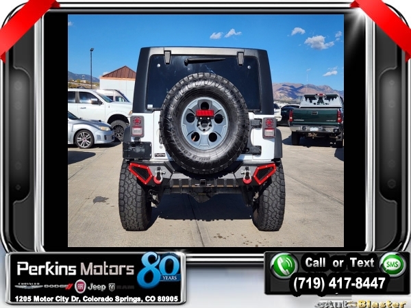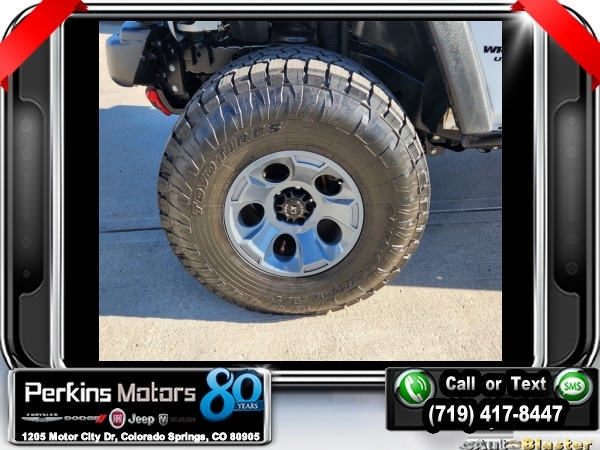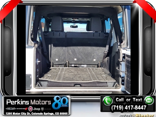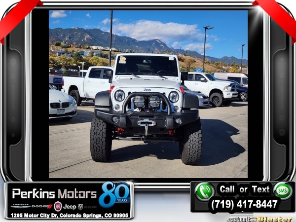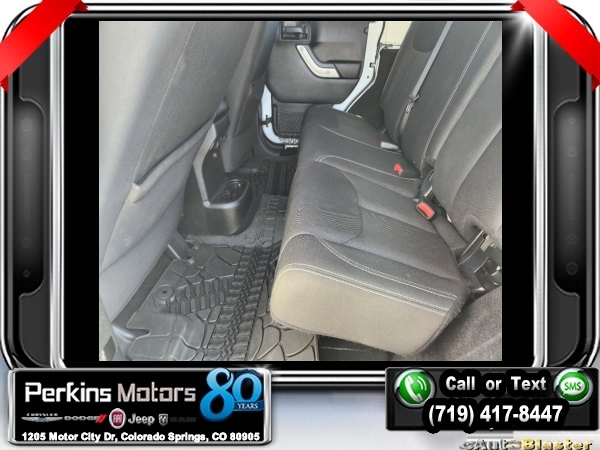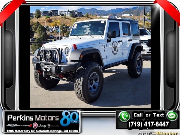 Bright White Clearcoat 4WD 3.6L V6 24V VVT 5-Speed Automatic<br><br>4.10 Rear Axle Ratio, 40GB Hard Drive w/28GB Available, 5-Year SiriusXM Travel Link Service, 6.5 Touchscreen Display, Add 4.10 Axle Ratio, Audio Jack Input for Mobile Devices, Black 3-Piece Hard Top, Class II Receiver Hitch, Delete Sunrider Soft Top, Freedom Panel Storage Bag, GPS Navigation, Max Tow Package, Quick Order Package 24R, Radio: 430 Nav, Rear Window Defroster, Rear Window Wiper/Washer, Remote USB Port, SiriusXM Travel Link, Trailer Tow w/4-Pin Connector Wiring.<br><br><br>Check us out at www.perkinsmotors.com to see our specials! Since opening our doors in 1944, we’ve been proud to serve Colorado Springs, CO, and the surrounding areas of Pueblo, Castle Rock and Denver, CO. Throughout this time of being family owned for 80 years, we’ve maintained a firm commitment to our customers: to offer a wide selection of New Chrysler, Dodge, Fiat, Jeep, and Ram vehicles and quality pre-owned vehicles, and provide a quick, no-hassle car-buying process that ensures everyone drives off the lot satisfied with their purchase.<br><br><br>Awards:<br> * 2017 KBB.com 10 Most Awarded Brands<br><br>Max Tow Package (Class II Receiver Hitch and Trailer Tow w/4-Pin Connector Wiring), Quick Order Package 24R, 4.10 Rear Axle Ratio, 40GB Hard Drive w/28GB Available, 5-Year SiriusXM Travel Link Service, 6.5 Touchscreen Display, Add 4.10 Axle Ratio, Audio Jack Input for Mobile Devices, Black 3-Piece Hard Top, Delete Sunrider Soft Top, Freedom Panel Storage Bag, GPS Navigation, Radio: 430 Nav, Rear Window Defroster, Rear Window Wiper/Washer, Remote USB Port, SiriusXM Travel Link, 17 x 7.5 Polished Mineral Gray Wheels, 4-Wheel Disc Brakes, 8 Speakers, ABS brakes, Air Conditioning, Alloy wheels, AM/FM radio: SiriusXM, Auto-dimming Rear-View mirror, Brake assist, CD player, Cloth Seats w/Adjustable Head Restraints, Compass, Cruise Control, Driver door bin, Driver vanity mirror, Dual front impact airbags, Electronic Stability Control, Front anti-roll bar, Front Bucket Seats, Front Center Armrest w/Storage, Front fog lights, Front reading lights, Fully automatic headlights, Heated door mirrors, Illuminated entry, Integrated roll-over protection, Leather steering wheel, Low tire pressure warning, Manufacturer's Statement of Origin, Occupant sensing airbag, Outside temperature display, Panic alarm, Passenger door bin, Passenger vanity mirror, Performance Suspension, Power door mirrors, Power steering, Power windows, Radio data system, Radio: 130, Rear anti-roll bar, Remote keyless entry, Remote Start System, Security system, Split folding rear seat, Steering wheel mounted audio controls, Tachometer, Tilt steering wheel, Traction control, Trip computer, and Variably intermittent wipers.