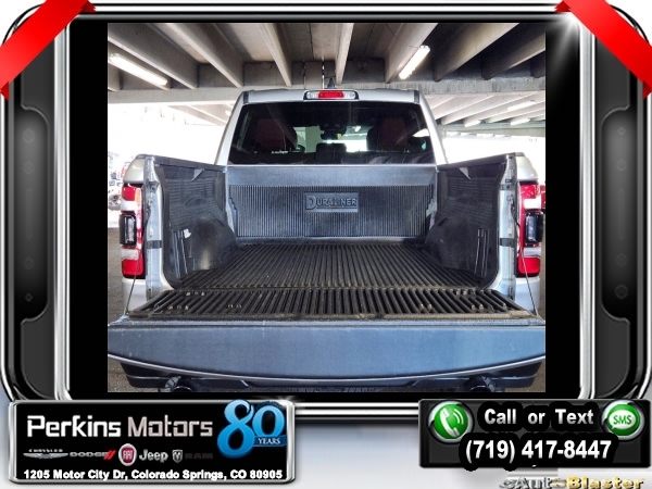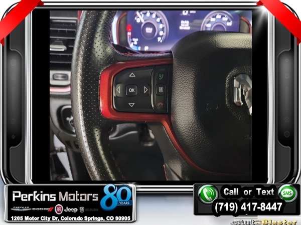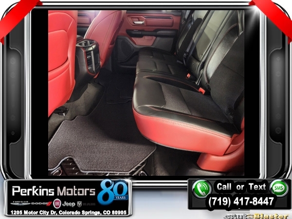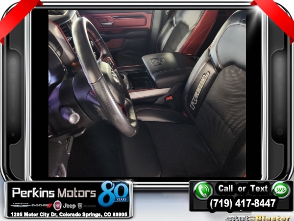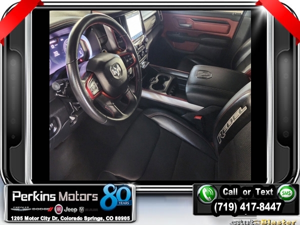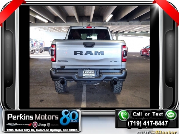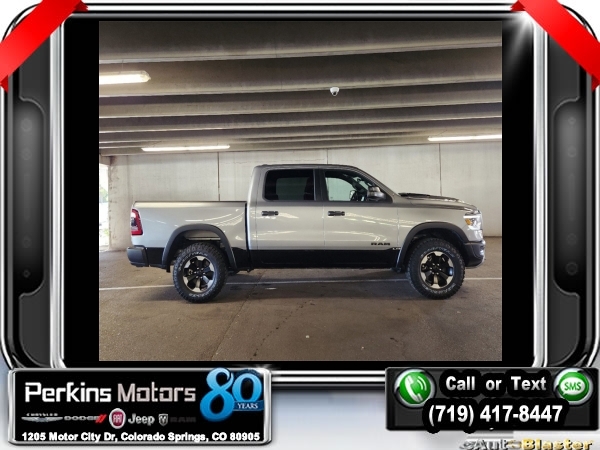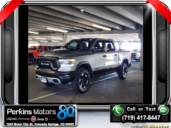 Billet Silver Metallic Clearcoat 4WD HEMI 5.7L V8 Multi Displacement VVT eTorque 8-Speed Automatic<br><br>3.92 Rear Axle Ratio, Front dual zone A/C, Quick Order Package 27W Rebel, Radio: Uconnect 5 Nav w/8.4 Display.<br><br><br>CARFAX One-Owner. Clean CARFAX.<br><br>Check us out at www.perkinsmotors.com to see our specials! Since opening our doors in 1944, we’ve been proud to serve Colorado Springs, CO, and the surrounding areas of Pueblo, Castle Rock and Denver, CO. Throughout this time of being family owned for 80 years, we’ve maintained a firm commitment to our customers: to offer a wide selection of New Chrysler, Dodge, Fiat, Jeep, and Ram vehicles and quality pre-owned vehicles, and provide a quick, no-hassle car-buying process that ensures everyone drives off the lot satisfied with their purchase.<br><br><br>Quick Order Package 27W Rebel, 3.92 Rear Axle Ratio, Front dual zone A/C, Radio: Uconnect 5 Nav w/8.4 Display, 4 Way Front Headrests, 4-Wheel Disc Brakes, 48V Belt Starter Generator, 4G LTE Wi-Fi Hot Spot, 6 Speakers, ABS brakes, Air Conditioning, Alloy wheels, AM/FM radio: SiriusXM with 360L, Apple CarPlay, Apple CarPlay/Android Auto, Auto-dimming Rear-View mirror, Automatic temperature control, Brake assist, Bucket Seats, Cloth/Vinyl Low Back Bucket Seats, Compass, Connected Travel & Traffic Services, Connectivity - US/Canada, Convex Wide-Angle Exterior Mirror Insert, Cruise Control, Delay-off headlights, Driver door bin, Dual front impact airbags, Dual front side impact airbags, Electronic Stability Control, Emergency communication system: RAM Connect, Exterior Mirrors w/Heating Element, For Details, Visit DriveUconnect.com, For More Info, Call 800-643-2112, Front anti-roll bar, Front Bucket Seats, Front Center Armrest w/Storage, Front fog lights, Front License Plate Bracket, Front reading lights, Front Seat Back Map Pockets, Front wheel independent suspension, Full Length Upgraded Floor Console, Fully automatic headlights, Global Telematics Box Module (TBM), Google Android Auto, GPS Navigation, HD Radio, Heated door mirrors, Illuminated entry, Instrument Cluster Theme 2 - Rebel, Integrated Voice Command w/Bluetooth, Leather steering wheel, Low tire pressure warning, Manufacturer's Statement of Origin, Navigation System, Occupant sensing airbag, Off-Road Information Pages, Outside temperature display, Overhead airbag, Overhead console, Panic alarm, ParkView Rear Back-Up Camera, Passenger door bin, Passenger vanity mirror, Power door mirrors, Power steering, Power windows, Radio data system, Rear 60/40 Folding Seat, Rear anti-roll bar, Rear seat center armrest, Rear step bumper, Remote keyless entry, SiriusXM Radio Service, SiriusXM w/360L, Split folding rear seat, Steering wheel mounted audio controls, Tachometer, Telescoping steering wheel, Tilt steering wheel, Traction control, Trip computer, USB Host Flip, Variably intermittent wipers, Voltmeter, and Wheels: 18 x 8.0 Painted Mid-Gloss BlacK.