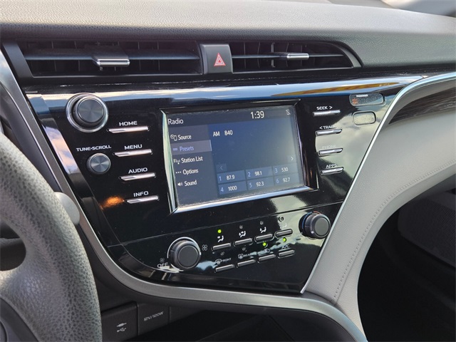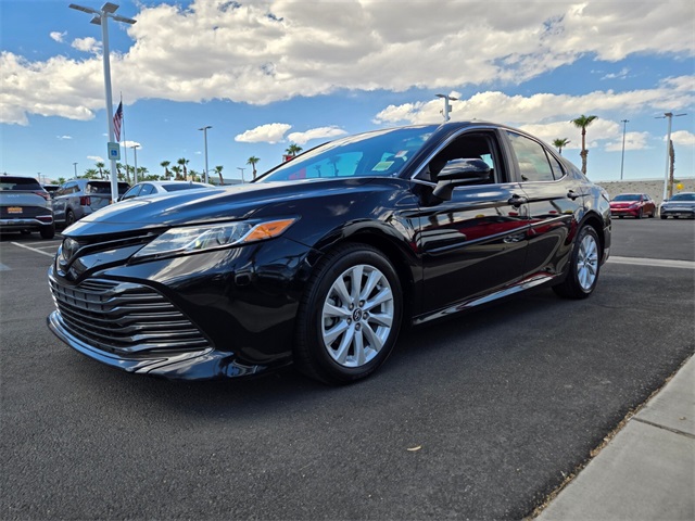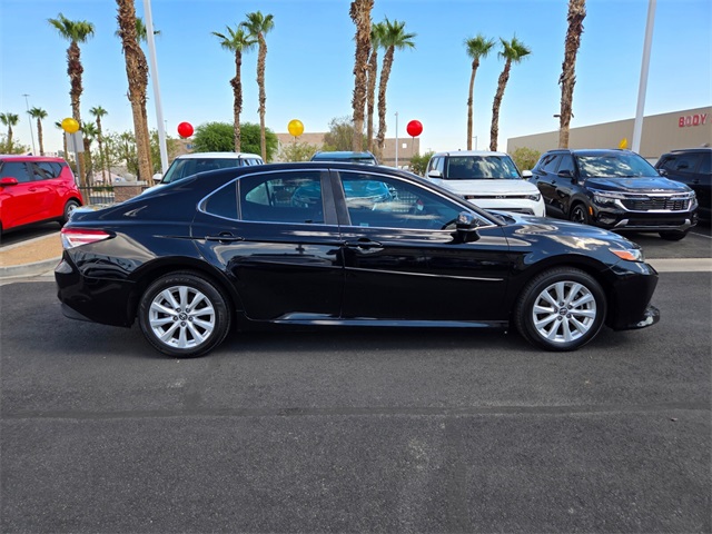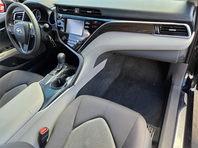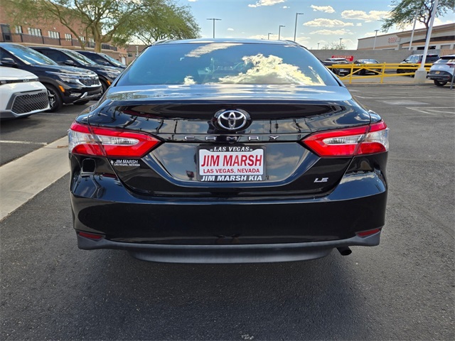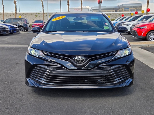 Odometer is 18077 miles below market average!Black 2018 Toyota Camry LE FWD 8-Speed Automatic 2.5L I4 DOHC 16VIf you don't drive here, you can't save here!Awards: * 2018 KBB.com 10 Most Awarded Cars * 2018 KBB.com Best Family Sedans * 2018 KBB.com 10 Best Sedans Under $25,000 * 2018 KBB.com 10 Most Awarded Brands * 2018 KBB.com Best Resale Value AwardsPrice may not include recon fee. 4-Wheel Disc Brakes, 6 Speakers, ABS brakes, Air Conditioning, Auto High-beam Headlights, Brake assist, Bumpers: body-color, Delay-off headlights, Driver door bin, Driver vanity mirror, Dual front impact airbags, Dual front side impact airbags, Electronic Stability Control, Exterior Parking Camera Rear, Four wheel independent suspension, Front anti-roll bar, Front Bucket Seats, Front Center Armrest, Front reading lights, Fully automatic headlights, Illuminated entry, Knee airbag, Low tire pressure warning, Occupant sensing airbag, Outside temperature display, Overhead airbag, Overhead console, Panic alarm, Passenger door bin, Passenger vanity mirror, Power door mirrors, Power steering, Power windows, Radio data system, Radio: Entune 3.0 Audio, Rear anti-roll bar, Rear reading lights, Rear side impact airbag, Rear window defroster, Remote keyless entry, Speed control, Speed-sensing steering, Steering wheel mounted audio controls, Tachometer, Telescoping steering wheel, Tilt steering wheel, Traction control, Trip computer, and Variably intermittent wipers.