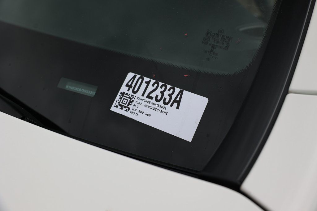 Polar White 2022 Mercedes-Benz GLC GLC 300 RWD 9-Speed Automatic I4 10.25" Center Touchscreen Display, 4-Way Lumbar Support, 6 Speakers, 64-Color Ambient Lighting, Air Conditioning, Apple CarPlay®/Android Auto®, Brake assist, Electronic Stability Control, Exterior Parking Camera Rear, Fully automatic headlights, Heated Front Bucket Seats, Illuminated Door Sills, MB-Tex Upholstery, Memory seat, Panorama Sunroof, Power Front Seat w/Driver Memory, Power Liftgate, Premium Package Lite, Radio: MBUX Multimedia System, Rear fog lights, Roof rack: rails only, SiriusXM Satellite Radio, Speed control, Wheels: 8J x 18 ET 38 Split 5-Spoke.22/27 City/Highway MPG