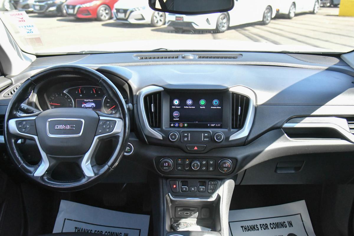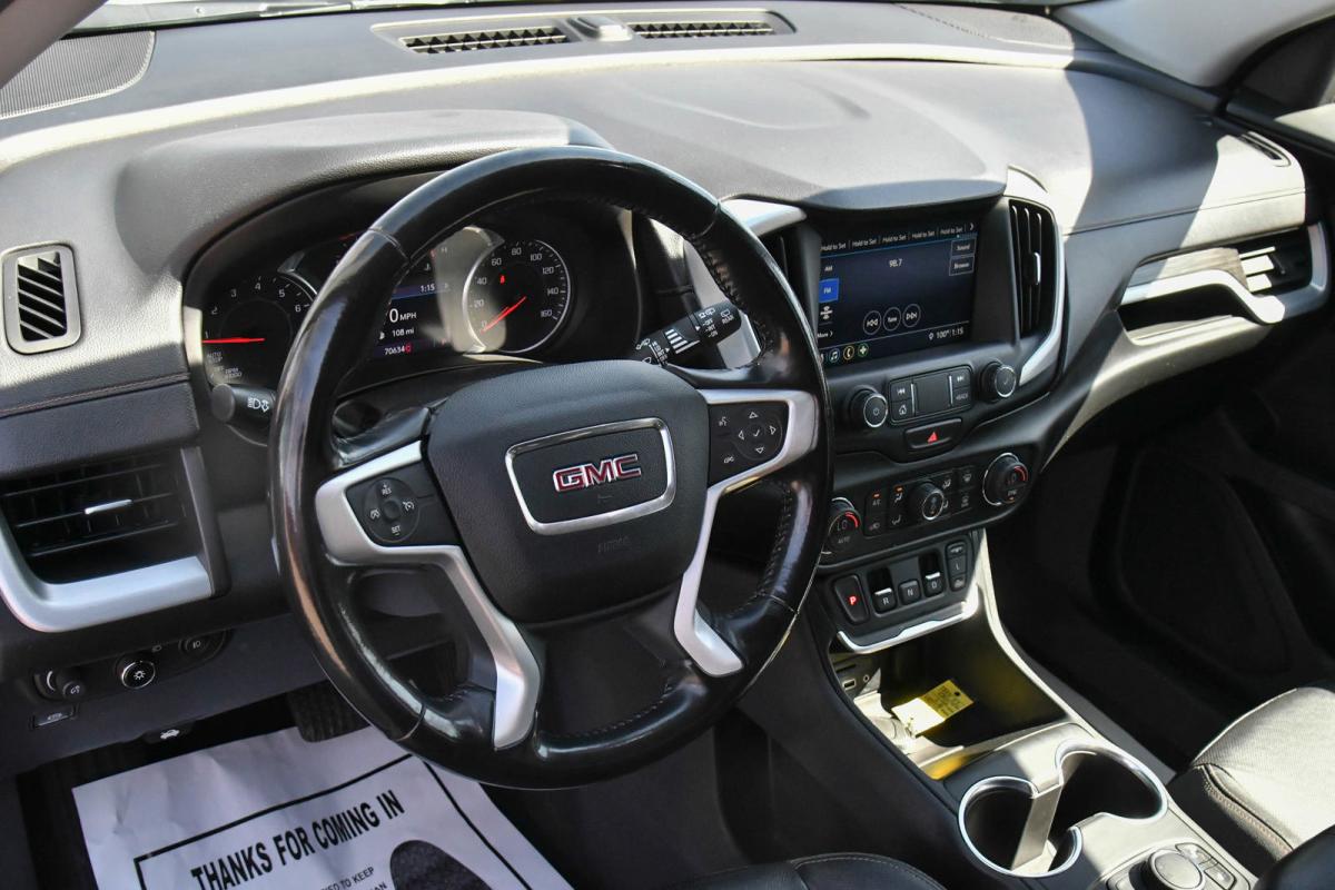 Scores 30 Highway MPG and 26 City MPG! This GMC Terrain boasts a Turbocharged Gas/E15 I4 1.5L/92 engine powering this Automatic transmission. WHEELS, 18 X 7 (45.7 CM X 17.8 CM), MACHINED ALUMINUM with Gray painted accents (STD), TRANSMISSION, 9-SPEED AUTOMATIC 9T45, ELECTRONICALLY-CONTROLLED WITH OVERDRIVE (STD), TIRES, P225/60R18 ALL-SEASON BLACKWALL (STD).*This GMC Terrain Comes Equipped with These Options *LICENSE PLATE FRONT MOUNTING PACKAGE , TIRE, SPARE, T135/70R16 BLACKWALL (STD), SLT PREFERRED EQUIPMENT GROUP Includes Standard Equipment, SEATS, FRONT BUCKET (STD), QUICKSILVER METALLIC, JET BLACK, PERFORATED LEATHER-APPOINTED SEAT TRIM, ENGINE, 1.5L TURBO DOHC 4-CYLINDER, SIDI, VVT (170 hp [127.0 kW] @ 5600 rpm, 203 lb-ft of torque [275.0 N-m] @ 2000 - 4000 rpm) (STD), AXLE, 3.47 FINAL DRIVE RATIO, AUDIO SYSTEM, 8 DIAGONAL GMC INFOTAINMENT SYSTEM includes multi-touch display, AM/FM/SiriusXM stereo, Bluetooth streaming audio for music and most phones, Android Auto and Apple CarPlay capability for compatible phones, advanced voice recognition, in-vehicle apps, personalized profiles for infotainment and vehicle settings (STD), Windows, power with rear Express-Down.