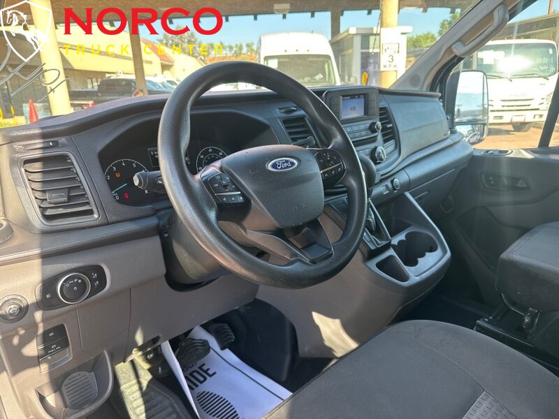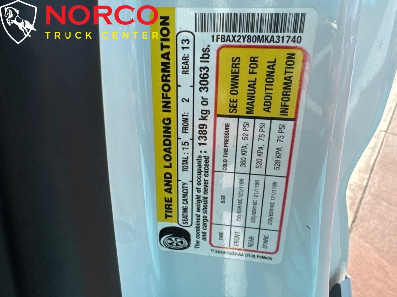 INSTALLED FEATURES: Front air conditioning, Front air conditioning zones: single, Rear air conditioning, Rear air conditioning zones: single, Airbag deactivation: occupant sensing passenger, Front airbags: dual, Side airbags: front, Side curtain airbags: fourth row / front / rear / third row, Antenna type: mast, Auxiliary audio input: Bluetooth / USB, Radio: AM/FM, Total speakers: 8, ABS: 4-wheel, Braking assist, Cornering brake control, Electronic brakeforce distribution, Electronic parking brake: auto off, Emergency braking preparation, Front brake diameter: 12.1, Front brake type: ventilated disc, Power brakes, Rear brake diameter: 12.1, Rear brake type: ventilated disc, Armrests: dual front / rear folding, Floor mat material: carpet, Floor material: carpet, Floor mats: front, Shift knob trim: urethane, Steering wheel trim: urethane, Assist handle: front / rear, Capless fuel filler system, Cargo area light, Center console: front console with storage, Cruise control, Cupholders: front, Multi-function remote: keyless entry / panic alarm / trunk release, One-touch windows: 1, Power outlet(s): 12V front / USB fourth row / USB front / USB rear / USB third row, Power steering: variable/speed-proportional, Reading lights: front / rear, Rearview mirror: manual day/night, Steering wheel: tilt and telescopic, Steering wheel mounted controls: audio / cruise control / multi-function / phone, Storage: door pockets, Vanity mirrors: dual illuminating, Axle ratio: 3.73, Alternator: 250 amps, Battery: maintenance-free, Battery rating: 610 CCA, Body side moldings: black, Door handle color: black, Front bumper color: body-color, Grille color: black / chrome surround, Headlight bezel color: chrome, Mirror color: black, Rear bumper color: black, Rear trunk/liftgate: barn, Side door type: passenger-side manual sliding, Window trim: black, Infotainment: SYNC, Infotainment screen size: 4 in., Clock, Digital odometer, Gauge: tachometer, Trip odometer, Warnings and reminders: coolant temperature warning / low fuel level / low oil pressure, Front fog lights, Headlights: auto delay off / auto high beam dimmer / auto on/off / halogen / wiper activated, Side mirror adjustments: power / power folding, Side mirrors: heated / integrated turn signals, OEM roof height: low, Automatic emergency braking: front / front pedestrian, Blind spot safety: sensor/alert / trailer coverage, Camera system: rearview, Child safety door locks, Child seat anchors: LATCH system, Cross traffic alert: rear, Driver attention alert system, Impact sensor: door unlock / post-collision safety system, Lane deviation sensors, Parking sensors: rear, Pre-collision warning system: audible warning / pedestrian detection / visual warning, Rearview monitor: in dash, Fourth row seatbelts: 3-point, Front seatbelts: 3-point, Rear seatbelts: 3-point, Seatbelt warning sensor: front, Third row seatbelts: 3-point, Driver seat manual adjustments: lumbar / reclining / 2, Fourth row headrests: 4, Fourth row seat type: 50-50 split bench, Front headrests: adjustable / 2, Front seat type: bucket, Passenger seat manual adjustments: reclining / 2, Rear headrests: 3, Rear seat manual adjustments: reclining, Rear seat type: bench, Third row headrests: 3, Third row seat type: split-bench, Upholstery: cloth, Anti-theft system: vehicle immobilizer, Power door locks: auto-locking, Crosswind stabilization, Hill holder control, Roll stability control, Stability control, Traction control, Trailer stability control, Front shock type: gas, Front spring type: coil, Front stabilizer bar, Front struts: MacPherson, Front suspension classification: independent, Front suspension type: lower control arms, Rear shock type: gas, Rear spring type: leaf, Rear suspension classification: solid live axle, Rear suspension type: multi-leaf, Smart device app compatibility: FordPass Connect, Smart device app function: engine start / lock operation / maintenance status / vehicle location, Wi-Fi: hotspot, Wireless data link: Bluetooth, Spare tire mount location: underbody, Spare tire size: full-size, Spare wheel type: steel, Tire Pressure Monitoring System, Tire type: all season, Wheel covers: full, Wheels: steel, Auxiliary transmission fluid cooler, Front wipers: rain sensing / variable intermittent, Liftgate window: fixed, Power windows: safety reverse, Solar-tinted glass, Window defogger: rear