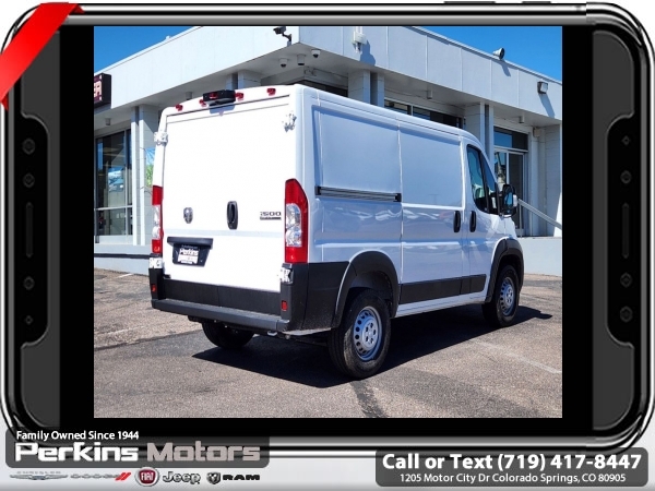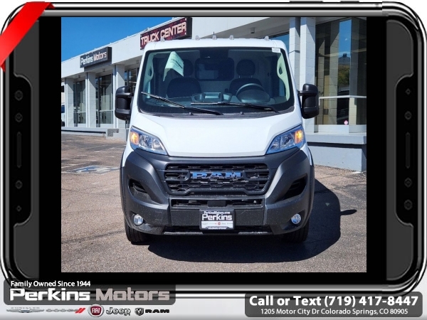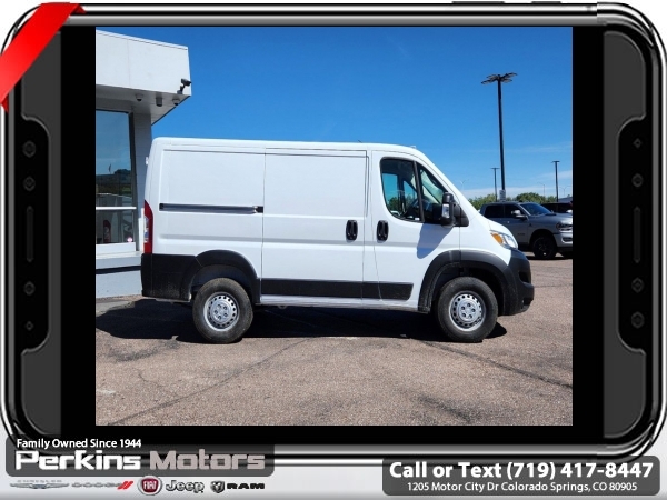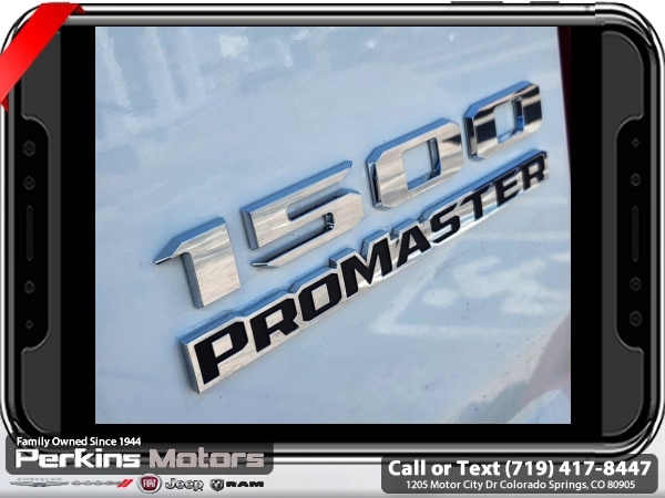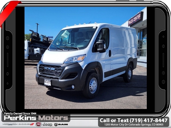 Factory MSRP: $48,970 $4,820 off MSRP! Priced below KBB Fair Purchase Price! Bright White Clearcoat 2025 Ram ProMaster 1500 Low Roof FWD 9-Speed 948TE Automatic 3.6L V6 24V VVT<br><br>Check us out at www.perkinsmotors.com to see our specials! Since opening our doors in 1944, we’ve been proud to serve Colorado Springs, CO, and the surrounding areas of Pueblo, Castle Rock and Denver, CO. Throughout this time of being family owned for 80 years, we’ve maintained a firm commitment to our customers: to offer a wide selection of New Chrysler, Dodge, Fiat, Jeep, and Ram vehicles and quality pre-owned vehicles, and provide a quick, no-hassle car-buying process that ensures everyone drives off the lot satisfied with their purchase.<br><br>Convenience Group (Exterior Mirrors w/Heating Element, Exterior Mirrors w/Supplemental Signals, Front Fog Lamps, Power Adjust Mirrors, Power Folding/Heated Mirrors, Power-Adjustable Convex Aux Mirrors, Power-Folding Mirrors, and Rear Cargo LED Lamp), Quick Order Package 22B Tradesman w/Pass Seat (4-Way Manual Adjust Front Passenger Seat and Passenger Bucket Seat), 4 Speakers, 4-Wheel Disc Brakes, 4.08 Axle Ratio, 4G LTE Wi-Fi Hotspot, ABS brakes, Adaptive Cruise Control w/Stop & Go, Air Conditioning, AM/FM radio: SiriusXM, Apple CarPlay, Apple CarPlay/Android Auto, Black/Gray Seats, Bodyside moldings, Brake assist, Cargo Partition w/Sliding Window, Cloth Bucket Seats, Connectivity - US/Canada, Driver door bin, Driver Seat Armrest, Driver's Seat Mounted Armrest, Electronic Stability Control, For Details, Visit DriveUconnect.com, For More Info, Call 800-643-2112, Front anti-roll bar, Front Bucket Seats, Front License Plate Bracket, Front reading lights, Front wheel independent suspension, Global Telematics Box Module (TBM), Google Android Auto, GPS Antenna Input, Illuminated entry, Light Duty Suspension, Low tire pressure warning, Manufacturer's Statement of Origin, MOPAR Cargo Compartment Floor Mat, Outside temperature display, Overhead airbag, Overhead console, ParkView Rear Back-Up Camera, Passenger door bin, Power steering, Power windows, Radio: Uconnect 5 w/7 Display, Remote keyless entry, SiriusXM Radio Service, Steering wheel mounted audio controls, Tachometer, Telescoping steering wheel, Traction control, Trip computer, Turn signal indicator mirrors, Variably intermittent wipers, Wheel Center Cap, and Wheels: 16 x 6.0 SteeL. Sale price includes all manufacture's incentives and dealer discounts. Sale price not available on lease or compatible with special APR. $3745 - 2025 National Minimum Employee Pricing Discount. Exp. 06/30/2025