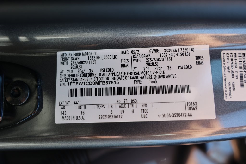 Carbonized Gray Metallic 2021 Ford F-150 XLT RWD 10-Speed Automatic 3.5L PowerBoost Full-Hybrid V6 3.5L PowerBoost Full-Hybrid V6, 10-Way Power Driver & Passenger Seats, 2-Bar Style Grille w/Chrome 2 Minor Bars, 360 Degree Camera, 8" Productivity Screen in Instrument Cluster, Accent-Color Step Bars, Air Conditioning, Auto-Dimming Rear-View Mirror, Black 2-Bar Style Grille w/Black Surround/Accents, Body-Color Door & Tailgate Handles, Body-Color Front & Rear Bumpers, Box Side Decals, Brake assist, Chrome Door & Tailgate Handles w/Body-Color Bezel, Chrome Single-Tip Exhaust, Chrome Step Bars, Class IV Trailer Hitch Receiver, Connected Built-In Navigation, Dual Zone Automatic Temperature Control, Electronic Locking w/3.55 Axle Ratio, Electronic Stability Control, Equipment Group 302A High, Evasive Steering Assist, Extended Range 36 Gallon Fuel Tank, Exterior Parking Camera Rear, Ford Co-Pilot360 Assist 2.0, Fully automatic headlights, GVWR: 7,050 lbs Payload Package, Heated Front Seats, Integrated Trailer Brake Controller, Intelligent Access w/Push Button Start, Intelligent Adaptive Cruise Control w/Stop & Go, Intersection Assist, Leather-Wrapped Steering Wheel, LED Box Lighting w/Zone Lighting, LED Reflector Headlamps, LED Sideview Mirror Spotlights, Max Trailer Tow Package, Navigation System, Onboard 400W Outlet, Power Glass Heated Sideview Mirrors, Pro Power Onboard - 7.2KW, Pro Trailer Backup Assist, Radio: AM/FM SiriusXM w/360L, Radio: B&O Sound System by Bang & Olufsen, Rear Under-Seat Storage, Remote Start System w/Remote Tailgate Release, SecuriCode Drivers Side Keyless-Entry Keypad, Speed Sign Recognition, SYNC 4 w/Enhanced Voice Recognition, Tailgate Step w/Tailgate Work Surface, Unique Sport Cloth 40/Console/40 Front-Seats, Wheels: 20" 6-Spoke Dark Alloy Painted Aluminum, XLT Chrome Appearance Package, XLT Sport Appearance Package.25/26 City/Highway MPG