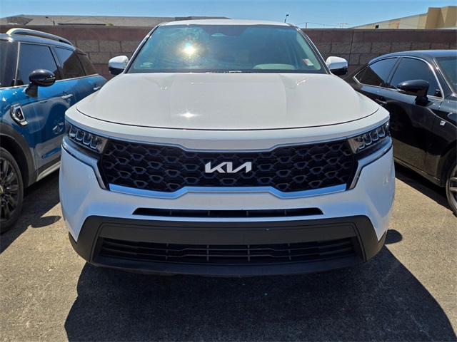 Recent Arrival!24/29 City/Highway MPGGlacial White Pearl 2022 Kia Sorento LX FWD 8-Speed Automatic 2.5L I4 DGI DOHC 16V LEV3-ULEV70 191hpIf you don't drive here, you can't save here!Price may not include recon fee. 3.798 Axle Ratio, 3rd row seats: split-bench, 4-Wheel Disc Brakes, 6 Speakers, 7.0J x 17" Alloy Wheels, ABS brakes, Air Conditioning, Alloy wheels, AM/FM radio, Apple CarPlay & Android Auto, Auto High-beam Headlights, Brake assist, Bumpers: body-color, Carpeted Floor Mats, Cloth Seat Trim, Delay-off headlights, Driver door bin, Driver vanity mirror, Dual front impact airbags, Dual front side impact airbags, Electronic Stability Control, Exterior Parking Camera Rear, Four wheel independent suspension, Front anti-roll bar, Front Bucket Seats, Front Center Armrest, Front reading lights, Fully automatic headlights, Heated door mirrors, Illuminated entry, Knee airbag, Low tire pressure warning, Occupant sensing airbag, Outside temperature display, Overhead airbag, Overhead console, Panic alarm, Passenger door bin, Passenger vanity mirror, Power door mirrors, Power steering, Power windows, Radio data system, Radio: AM/FM Audio System, Rear anti-roll bar, Rear reading lights, Rear seat center armrest, Rear window defroster, Rear window wiper, Remote keyless entry, Security system, Speed control, Speed-sensing steering, Split folding rear seat, Spoiler, Steering wheel mounted audio controls, Tachometer, Telescoping steering wheel, Tilt steering wheel, Traction control, Trip computer, Turn signal indicator mirrors, and Variably intermittent wipers.