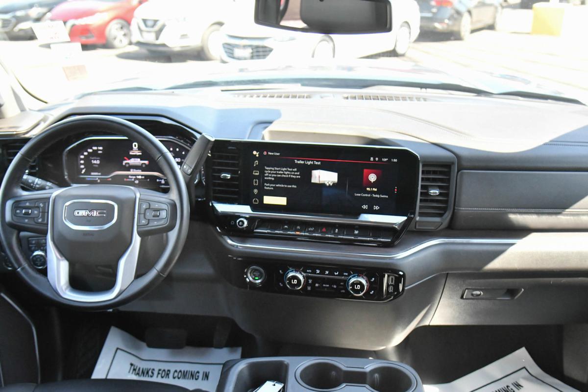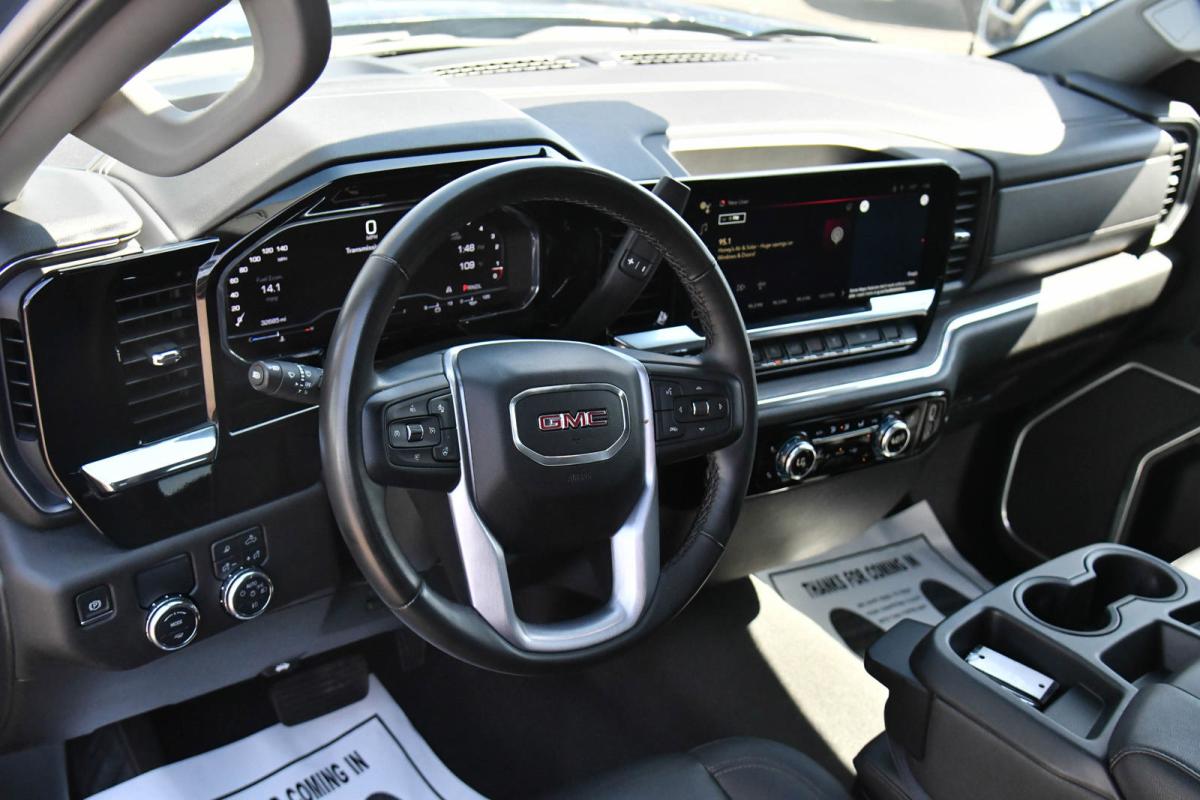This GMC Sierra 1500 has a dependable Gas V8 5.3L/325 engine powering this Automatic transmission. WHEELS, 18 X 8.5 (45.7 CM X 21.6 CM) 6-SPOKE MACHINED ALUMINUM with Dark Grey Metallic accents (STD), TRANSMISSION, 10-SPEED AUTOMATIC, (COLUMN SHIFTER) ELECTRONICALLY CONTROLLED with overdrive and tow/haul mode. Includes Cruise Grade Braking and Powertrain Grade Braking (STD), TIRES, 265/65R18SL ALL-SEASON, BLACKWALL (STD).*This GMC Sierra 1500 Comes Equipped with These Options *TIRE, SPARE 265/70R17SL ALL-SEASON, BLACKWALL (STD), STEERING COLUMN LOCK, ELECTRICAL (Beginning with start of production through July 31, 2023, vehicles will be forced to include (R7N) Not Equipped with Steering Column Lock, which removes Steering Column Lock. See dealer for details. Vehicles built on or after July 31, 2023 will include (N06) Steering Column Lock.), SLT PREFERRED EQUIPMENT GROUP Includes Standard Equipment, SEATS, FRONT 40/20/40 SPLIT-BENCH with covered armrest storage and under-seat storage (lockable) (STD), REAR AXLE, 3.23 RATIO, LICENSE PLATE KIT, FRONT, JET BLACK, PERFORATED LEATHER-APPOINTED FRONT OUTBOARD SEAT TRIM, GVWR, 6900 LBS. (3130 KG) (STD), ENGINE, 5.3L ECOTEC3 V8 (355 hp [265 kW] @ 5600 rpm, 383 lb-ft of torque [518 Nm] @ 4100 rpm); featuring Dynamic Fuel Management (STD), DOWNPOUR METALLIC.