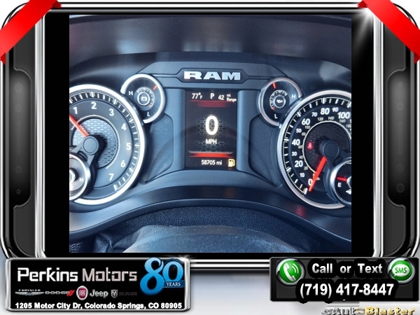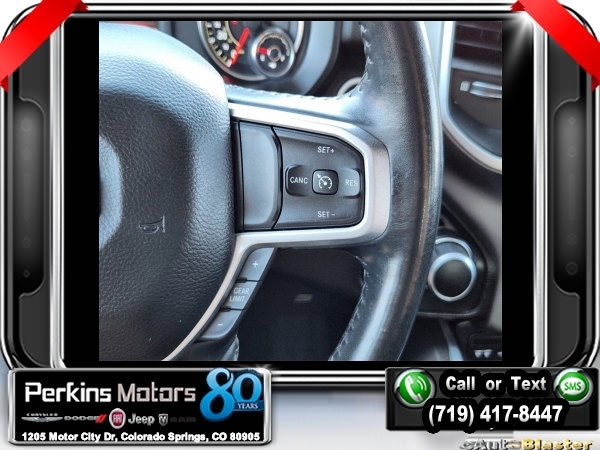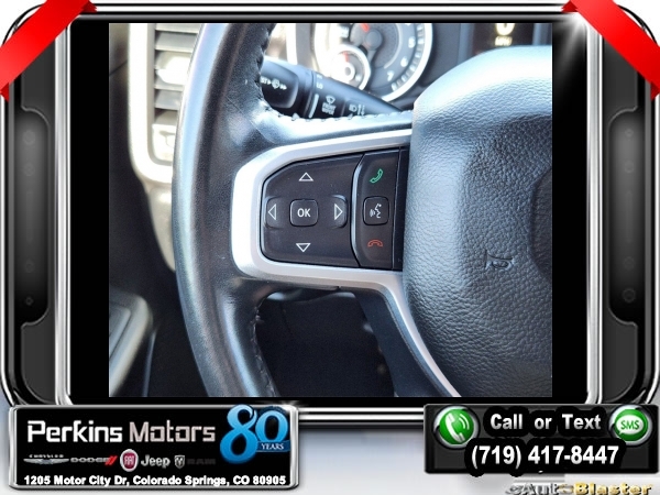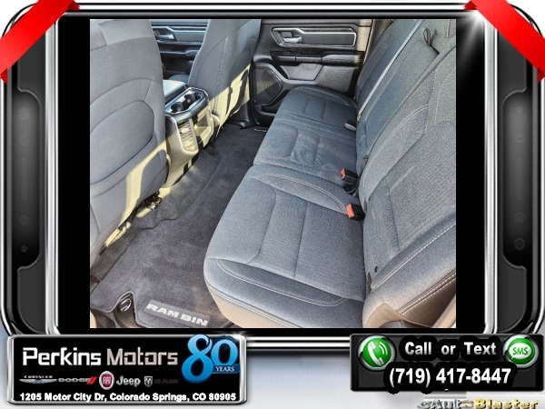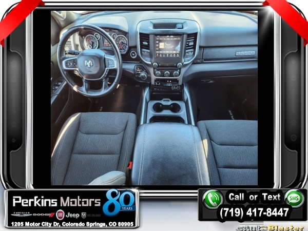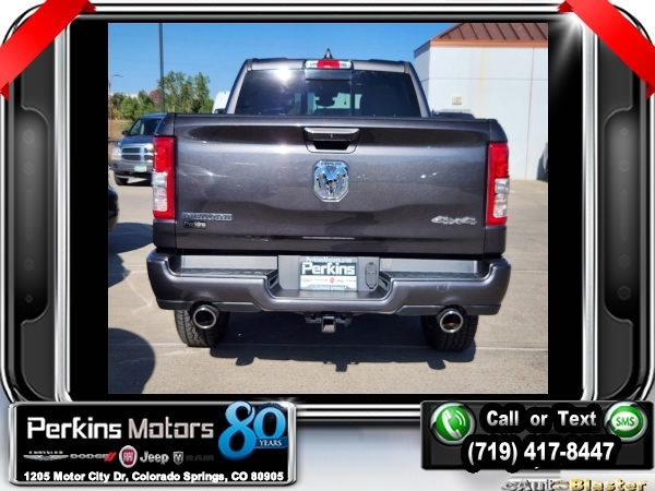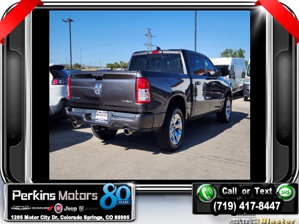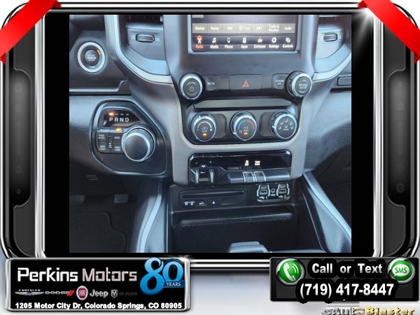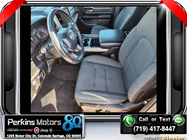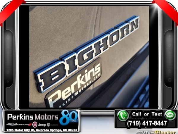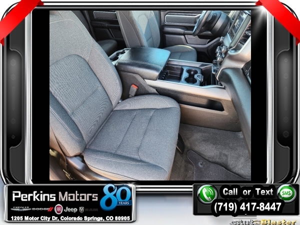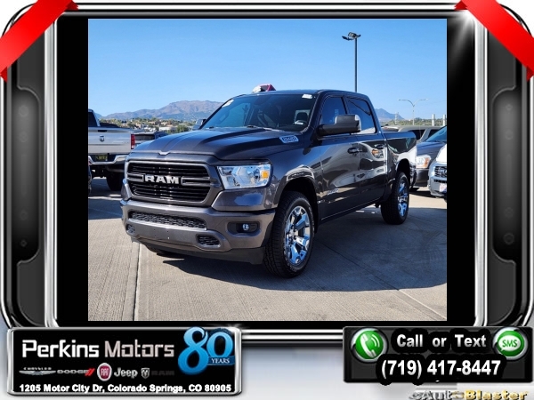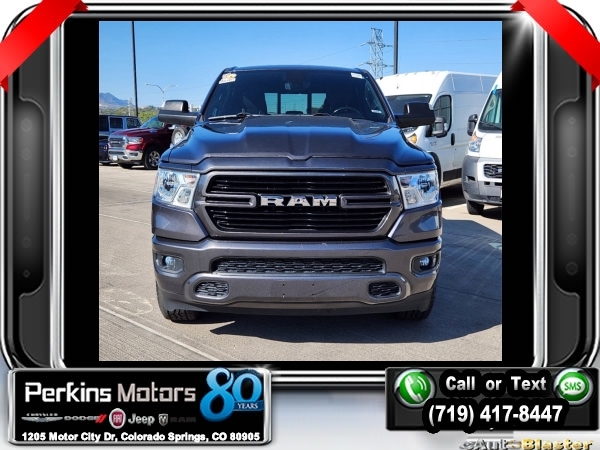 Granite Crystal Metallic Clearcoat 4WD HEMI 5.7L V8 Multi Displacement VVT 8-Speed Automatic<br><br>3 Rear Seat Head Restraints, 3.92 Rear Axle Ratio, 33 Gallon Fuel Tank, 4 Adjustable Cargo Tie-Down Hooks, 4 Way Front Headrests, Add Class IV Receiver Hitch, Auto-Dimming Exterior Driver Mirror, Auto-Dimming Rear-View Mirror, Bed Utility Group, Big Horn IP Badge, Big Horn Level 1 Equipment Group, Black Interior Accents, Body Color Door Handles, Body Color Front Bumper, Body Color Rear Bumper w/Step Pads, Bucket Seats, Center Console Parts Module, Class IV Receiver Hitch, Cluster 3.5 TFT Color Display, Deluxe Cloth Bucket Seats, Exterior Mirrors Courtesy Lamps, Exterior Mirrors w/Memory, Exterior Mirrors w/Supplemental Signals, Foam Bottle Insert (Door Trim Panel), Front Seat Back Map Pockets, Full Length Floor Console, Glove Box Lamp, Grille B/Color Outline 1 Texture 2, Manual Adjust 4-Way Front Passenger Seat, Pick-Up Box Lighting, Power 4-Way Driver Lumbar Adjust, Power 8-Way Driver Seat, Power Adjustable Pedals, Power Black Trailer Tow Mirrors, Power Heated Fold Away Mirrors, Power Heated Fold-Away Mirrors, Power-Folding Mirrors, Quick Order Package 25Z Big Horn/Lone Star, Radio: Uconnect 4 w/8.4 Display, Rear 60/40 Folding Seat, Rear Dome w/On/Off Switch Lamp, Rear Power Sliding Window, Rear Window Defroster, Single Disc Remote CD Player, SiriusXM Satellite Radio, Sport Appearance Package, Spray In Bedliner, Steering Wheel Mounted Audio Controls, Sun Visors w/Illuminated Vanity Mirrors, Trailer Brake Control, Trailer Tow Group, Trailer Tow Mirrors, Universal Garage Door Opener.<br><br><br>CARFAX One-Owner. Clean CARFAX.<br><br>Check us out at www.perkinsmotors.com to see our specials! Since opening our doors in 1944, we’ve been proud to serve Colorado Springs, CO, and the surrounding areas of Pueblo, Castle Rock and Denver, CO. Throughout this time of being family owned for 80 years, we’ve maintained a firm commitment to our customers: to offer a wide selection of New Chrysler, Dodge, Fiat, Jeep, and Ram vehicles and quality pre-owned vehicles, and provide a quick, no-hassle car-buying process that ensures everyone drives off the lot satisfied with their purchase.<br><br><br>Awards:<br> * Motor Trend Automobiles of the year * 2019 KBB.com Best Auto Tech Awards * 2019 KBB.com 10 Favorite New-for-2019 Cars * NACTOY 2019 North American Truck of the Year * 2019 KBB.com 10 Best Road Trip Cars<br><br>Bed Utility Group (4 Adjustable Cargo Tie-Down Hooks, Pick-Up Box Lighting, and Spray In Bedliner), Big Horn Level 1 Equipment Group (Auto-Dimming Rear-View Mirror, Big Horn IP Badge, Class IV Receiver Hitch, Cluster 3.5 TFT Color Display, Foam Bottle Insert (Door Trim Panel), Glove Box Lamp, Power 4-Way Driver Lumbar Adjust, Power 8-Way Driver Seat, Power Adjustable Pedals, Power Heated Fold Away Mirrors, Radio: Uconnect 4 w/8.4 Display, Rear Dome w/On/Off Switch Lamp, Rear Power Sliding Window, Rear Window Defroster, Single Disc Remote CD Player, SiriusXM Satellite Radio, Sun Visors w/Illuminated Vanity Mirrors, and Universal Garage Door Opener), Quick Order Package 25Z Big Horn/Lone Star (Steering Wheel Mounted Audio Controls), Sport Appearance Package (3 Rear Seat Head Restraints, 4 Way Front Headrests, Auto-Dimming Exterior Driver Mirror, Black Interior Accents, Body Color Door Handles, Body Color Front Bumper, Body Color Rear Bumper w/Step Pads, Bucket Seats, Center Console Parts Module, Deluxe Cloth Bucket Seats, Exterior Mirrors Courtesy Lamps, Exterior Mirrors w/Memory, Exterior Mirrors w/Supplemental Signals, Front Seat Back Map Pockets, Full Length Floor Console, Grille B/Color Outline 1 Texture 2, Manual Adjust 4-Way Front Passenger Seat, Power Heated Fold-Away Mirrors, Power-Folding Mirrors, and Rear 60/40 Folding Seat), Trailer Tow Group (Add Class IV Receiver Hitch, Power Black Trailer Tow Mirrors, Trailer Brake Control, and Trailer Tow Mirrors), 3.92 Rear Axle Ratio, 33 Gallon Fuel Tank, 4-Wheel Disc