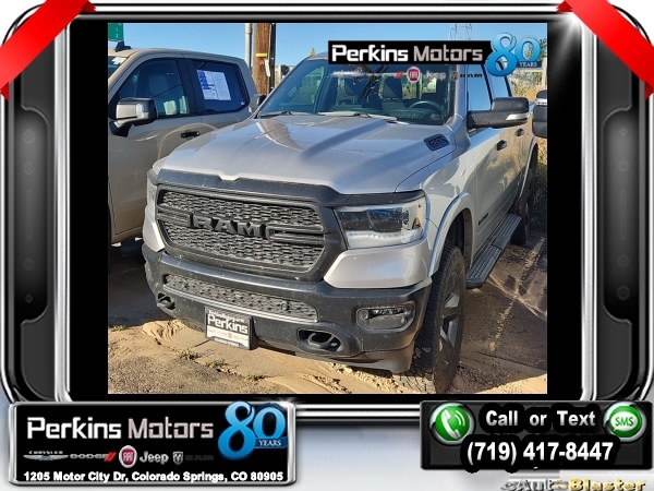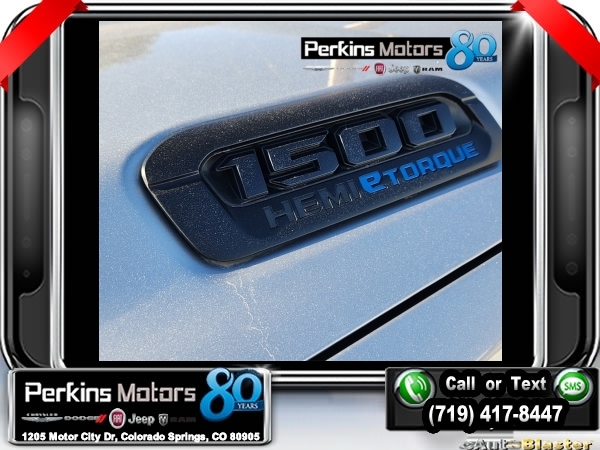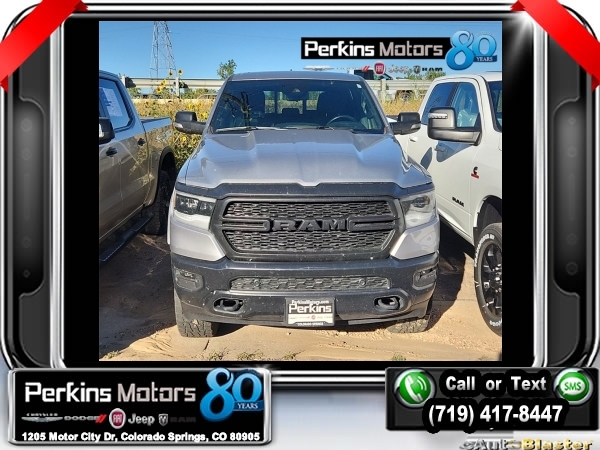 Billet Silver Metallic Clearcoat 4WD HEMI 5.7L V8 Multi Displacement VVT 8-Speed Automatic<br><br>1-Yr SiriusXM Guardian Trial, 115V Auxiliary Power Outlet, 115V Auxiliary Rear Power Outlet, 12 Touchscreen Display, 20 x 9 Aluminum Wheels, 2nd Row In Floor Storage Bins, 3 Rear Seat Head Restraints, 3.92 Rear Axle Ratio, 4 Way Front Headrests, 400W Inverter, 4G LTE Wi-Fi Hot Spot, 5-Year SiriusXM Traffic Service, 5-Year SiriusXM Travel Link Service, 9 Amplified Speakers w/Subwoofer, Add Class IV Receiver Hitch, Advanced Brake Assist, Air Conditioning ATC w/Dual Zone Control, Apple CarPlay, Auto-Dimming Exterior Driver Mirror, Auto-Dimming Rear-View Mirror, Bed Utility Group, Big Horn Badge, Big Horn Level 2 Equipment Group, Black Door Handles, Black Exterior Truck Badging, Black Front Bumper, Black Headlamp Bezels, Black Onyx Interior Accent, Black Premium Power Mirrors, Black Rear Bumper, Blind Spot & Cross Path Detection, Body Color Fender Flares, Bucket Seats, Built-To-Serve Edition, Built-To-Serve Edition I/P Badge, Center Console Parts Module, Class IV Receiver Hitch, Cluster 3.5 TFT Color Display, Cluster 7.0 TFT Color Display, Disassociated Touchscreen Display, Dome Dual LED Reading Lamp, Dual Exhaust w/Black Tips, Dual-Pane Panoramic Sunroof, E-Locker Rear Axle, Exterior Mirrors Courtesy Lamps, Exterior Mirrors w/Supplemental Signals, Foam Bottle Insert (Door Trim Panel), For Details, Visit DriveUconnect.com, For More Info, Call 800-643-2112, Front Extra HD Shock Absorbers, Front LED Fog Lamps, Full Length Floor Console, Full Speed Forward Collision Warning Plus, Glove Box Lamp, Google Android Auto, GPS Antenna Input, GPS Navigation, Grille Surround 1 Black Texture 1 Black, HD Radio, Heads-Up Display, Heated Front Seats, Heated Steering Wheel, Hill Descent Control, Integrated Center Stack Radio, Integrated Voice Command w/Bluetooth, Lane Keep Assist, LED CHMSL Lamp, LED Footwell Lighting, LED Reflector Headlamps, LED Taillamps, Level 1 Safety Group, Media Hub w/2 Charge Only USBs, MOPAR 4 Adjustable Cargo Tie-Down Hooks, Mopar Black Tubular Side Steps, MOPAR Deployable Bed Step, MOPAR Front & Rear Rubber Floor Mats, MOPAR Lockable Console Storage, MOPAR Spray In Bedliner, Overhead LED Lamps, ParkSense Front/Rear Park Assist w/Stop, Pedestrian Emergency Braking, Pick-Up Box Lighting, Power 4-Way Driver Lumbar Adjust, Power 8-Way Driver Seat, Power Adjustable Pedals, Power-Folding Mirrors, Premium Cloth/Vinyl Bucket Seats, Premium Overhead Console, Quick Order Package 27Z Big Horn, Radio: Uconnect 12 w/Navigation, RAM Grille Badge - Black, Rear 60/40 Folding Seat, Rear Dome w/On/Off Switch Lamp, Rear Extra HD Shock Absorbers, Rear Power Sliding Window, Rear Window Defroster, Rearview Autodim Digital Display Mirror, Security Alarm, SiriusXM Radio Service, SiriusXM Satellite Radio, SiriusXM Traffic Plus, SiriusXM Travel Link, SiriusXM w/360L, Sun Visors w/Illuminated Vanity Mirrors, Technology Group, Tow Hooks, Trailer Brake Control, Trailer Light Check, Trailer Reverse Steering Control, Trailer Tire Pressure Monitoring System, Trailer Tow Group, Universal Garage Door Opener, US Flag Decal, USB Host Flip.<br><br><br>Check us out at www.perkinsmotors.com to see our specials! Since opening our doors in 1944, we’ve been proud to serve Colorado Springs, CO, and the surrounding areas of Pueblo, Castle Rock and Denver, CO. Throughout this time of being family owned for 80 years, we’ve maintained a firm commitment to our customers: to offer a wide selection of New Chrysler, Dodge, Fiat, Jeep, and Ram vehicles and quality pre-owned vehicles, and provide a quick, no-hassle car-buying process that ensures everyone drives off the lot satisfied with their purchase.<br><br><br>Bed Utility Group (MOPAR 4 Adjustable Cargo Tie-Down Hooks, MOPAR Deployable Bed Step, MOPAR Spray In Bedliner, and Pick-Up Box Lighting), Big Horn Level 2 Equipment Group (115V Auxiliary Power Outlet, 115V Auxiliary Rear Power Outlet, 2nd Row In Floor Sto