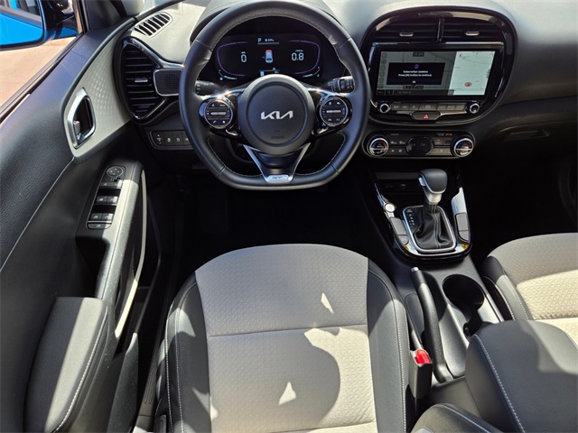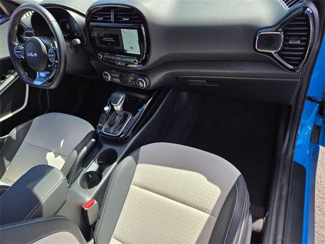 CARFAX One-Owner.Priced below KBB Fair Purchase Price!27/33 City/Highway MPGSurf Blue w/Black Roof 2024 Kia Soul GT-Line FWD IVT 2.0L I4 DOHCIf you don't drive here, you can't save here!Price may not include recon fee. Black & White Interior Color Package, GT-Line Designer Package, 4-Wheel Disc Brakes, 6 Speakers, 7.5J x 18" Alloy Wheels, ABS brakes, Air Conditioning, Alloy wheels, AM/FM radio: SiriusXM, Apple CarPlay & Android Auto, Auto High-beam Headlights, Automatic temperature control, Brake assist, Bumpers: body-color, Carpeted Floor Mats, Combination Cloth/Artificial Leather Seat Trim, Compass, Delay-off headlights, Driver door bin, Driver vanity mirror, Dual front impact airbags, Dual front side impact airbags, Electronic Stability Control, Emergency communication system, Exterior Parking Camera Rear, Front anti-roll bar, Front Bucket Seats, Front Center Armrest, Front dual zone A/C, Front reading lights, Front wheel independent suspension, Fully automatic headlights, Heated door mirrors, Illuminated entry, Leather Shift Knob, Leather steering wheel, Low tire pressure warning, Navigation System, Occupant sensing airbag, Outside temperature display, Overhead airbag, Overhead console, Panic alarm, Passenger door bin, Passenger vanity mirror, Power door mirrors, Power moonroof, Power steering, Power windows, Radio data system, Radio: AM/FM/MP3/HD Audio System, Rear seat center armrest, Rear window defroster, Rear window wiper, Remote keyless entry, Speed control, Speed-sensing steering, Split folding rear seat, Sport steering wheel, Steering wheel mounted audio controls, Tachometer, Telescoping steering wheel, Tilt steering wheel, Traction control, Trip computer, Turn signal indicator mirrors, and Variably intermittent wipers.