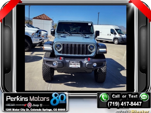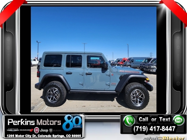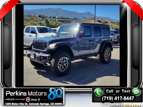 Factory MSRP: $61,540 $10,000 off MSRP! Anvil Clear Coat 2024 Jeep Wrangler Rubicon 4WD 8-Speed Automatic 3.6L V6 24V VVT<br><br>Check us out at www.perkinsmotors.com to see our specials! Since opening our doors in 1944, we’ve been proud to serve Colorado Springs, CO, and the surrounding areas of Pueblo, Castle Rock and Denver, CO. Throughout this time of being family owned for 80 years, we’ve maintained a firm commitment to our customers: to offer a wide selection of New Chrysler, Dodge, Fiat, Jeep, and Ram vehicles and quality pre-owned vehicles, and provide a quick, no-hassle car-buying process that ensures everyone drives off the lot satisfied with their purchase.<br><br>Convenience Group, Quick Order Package 24R Rubicon, 12.3 Touchscreen Display, 4-Wheel Disc Brakes, 4.10 Rear Axle Ratio, 8 Speakers, 97 MPH Vehicle Max Speed Calibration, ABS brakes, Air Conditioning, Alloy wheels, AM/FM radio: SiriusXM, Apple CarPlay, Apple CarPlay/Android Auto, Automatic temperature control, Aux Battery, Body Color 3-Piece Hard Top, Brake assist, Cloth Low-Back Bucket Seats, Compass, Connectivity - US/Canada, Cruise Control, Delay-off headlights, Disassociated Touchscreen Display, Driver door bin, Driver vanity mirror, Dual front impact airbags, Dual front side impact airbags, Electronic Stability Control, Emergency communication system: Jeep Connect, Front anti-roll bar, Front Bucket Seats, Front Center Armrest w/Storage, Front dual zone A/C, Front fog lights, Front License Plate Bracket, Front reading lights, Fully automatic headlights, Google Android Auto, Heated door mirrors, Illuminated entry, Integrated Center Stack Radio, Integrated roll-over protection, Integrated Voice Command w/Bluetooth, Jeep Trail Rated Kit, Low tire pressure warning, MOPAR All-Weather Floor Mats, Non-Lock Fuel Cap w/o Discriminator, Occupant sensing airbag, Outside temperature display, Overhead airbag, Panic alarm, ParkView Rear Back-Up Camera, Passenger door bin, Passenger vanity mirror, Performance Suspension, Power door mirrors, Power steering, Power windows, Radio data system, Radio: Uconnect 5 w/12.3 Display, Rear anti-roll bar, Rear reading lights, Remote keyless entry, Security system, Split folding rear seat, Steering wheel mounted audio controls, Stop-Start Dual Battery System, Tachometer, Telescoping steering wheel, Tilt steering wheel, Traction control, Trip computer, Variably intermittent wipers, Voltmeter, and Wheels: 17 x 7.5 Machined/Painted Black. Sale price includes all manufacture's incentives and dealer discounts. Sale price not available on lease or compatible with special APR. $3000 - 2024 Bonus Cash . Exp. 10/31/2024