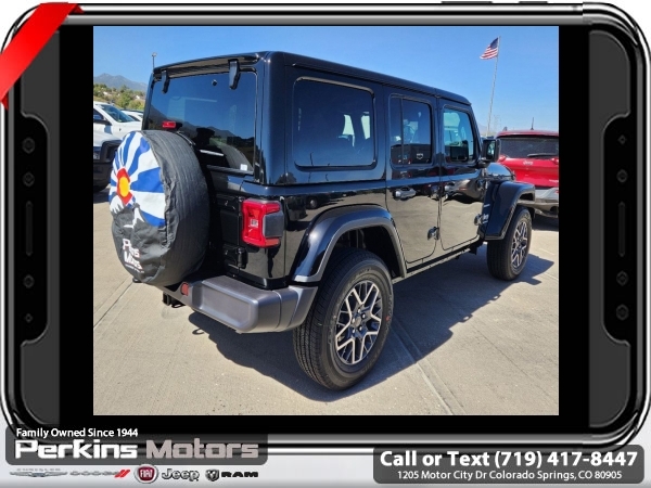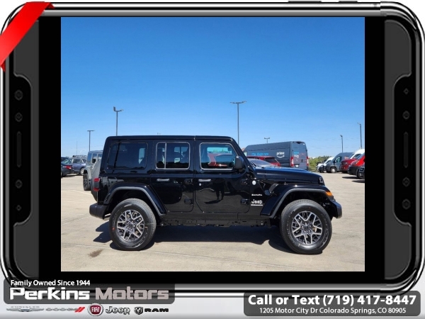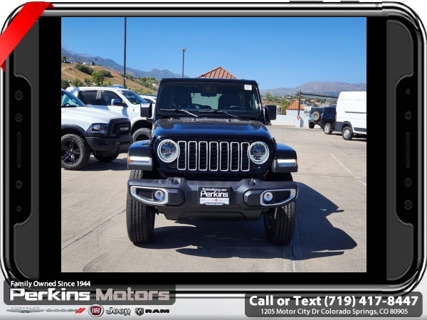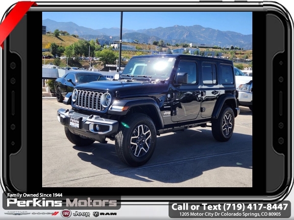 Factory MSRP: $57,135 $13,431 off MSRP! Priced below KBB Fair Purchase Price! Black Clearcoat 2024 Jeep Wrangler Sahara 4WD 8-Speed Automatic 2.0L I4 DOHC<br><br>Check us out at www.perkinsmotors.com to see our specials! Since opening our doors in 1944, we’ve been proud to serve Colorado Springs, CO, and the surrounding areas of Pueblo, Castle Rock and Denver, CO. Throughout this time of being family owned for 80 years, we’ve maintained a firm commitment to our customers: to offer a wide selection of New Chrysler, Dodge, Fiat, Jeep, and Ram vehicles and quality pre-owned vehicles, and provide a quick, no-hassle car-buying process that ensures everyone drives off the lot satisfied with their purchase.<br><br>Quick Order Package 22G Sahara, Trailer Tow & Aux Switch Group (7 & 4 Pin Wiring Harness, Auxiliary Switches, and Class II Receiver Hitch), 110 MPH Vehicle Max Speed Calibration, 12.3 Touchscreen Display, 3.45 Overall Top Gear Ratio, 4-Wheel Disc Brakes, 8 Speakers, ABS brakes, Air Conditioning, Alloy wheels, AM/FM radio: SiriusXM, Apple CarPlay, Apple CarPlay/Android Auto, Automatic temperature control, Aux Battery, Body Color 3-Piece Hard Top, Brake assist, Cloth Low-Back Bucket Seats, Compass, Connectivity - US/Canada, Cruise Control, Delay-off headlights, Disassociated Touchscreen Display, Driver door bin, Driver vanity mirror, Dual front impact airbags, Dual front side impact airbags, Electronic Stability Control, Emergency communication system: Jeep Connect, Freedom Panel Storage Bag, Front anti-roll bar, Front Bucket Seats, Front Center Armrest w/Storage, Front dual zone A/C, Front fog lights, Front License Plate Bracket, Front reading lights, Fully automatic headlights, Google Android Auto, Heated door mirrors, Heated front seats, Heated steering wheel, Heavy Duty Suspension w/Gas Shocks, Illuminated entry, Integrated Center Stack Radio, Integrated roll-over protection, Integrated Voice Command w/Bluetooth, Jeep Trail Rated Kit, Low tire pressure warning, MOPAR All-Weather Floor Mats, No Soft Top, Non-Lock Fuel Cap w/o Discriminator, Occupant sensing airbag, Outside temperature display, Overhead airbag, Panic alarm, ParkView Rear Back-Up Camera, Passenger door bin, Passenger vanity mirror, Power door mirrors, Power steering, Power windows, Radio data system, Radio: Uconnect 5 w/12.3 Display, Rear anti-roll bar, Rear reading lights, Rear Window Defroster, Rear Window Wiper/Washer, Remote keyless entry, Security system, Split folding rear seat, Steering wheel mounted audio controls, Stop-Start Dual Battery System, Tachometer, Telescoping steering wheel, Tilt steering wheel, Traction control, Trip computer, Variably intermittent wipers, Voltmeter, and Wheels: 18 x 7.5 Machine/Painted Gray. Sale price includes all manufacture's incentives and dealer discounts. Sale price not available on lease or compatible with special APR. $3000 - 2024 Bonus Cash . Exp. 06/30/2025