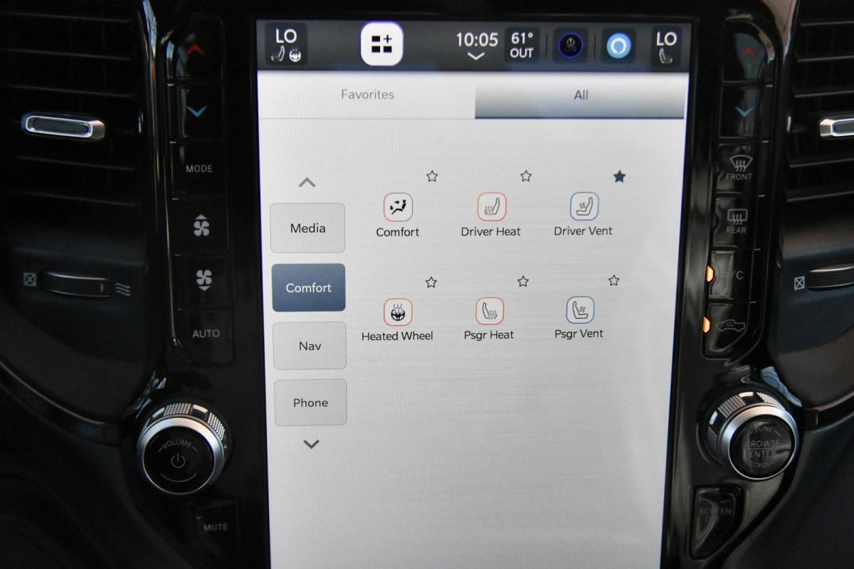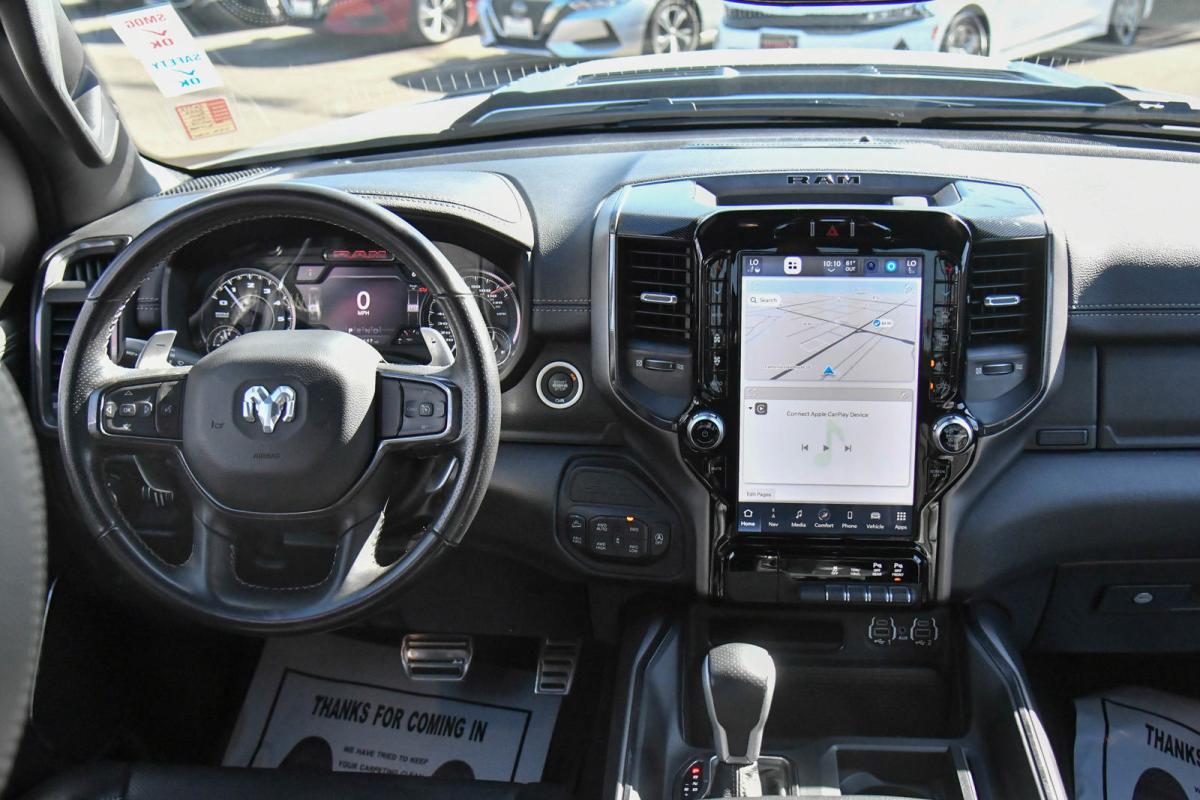 This Ram 1500 has a powerful Regular Unleaded V-8 5.7 L/345 engine powering this Automatic transmission. WHEELS: 18 X 8.0 PAINTED MID-GLOSS BLACK (STD), TRANSMISSION: 8-SPEED AUTOMATIC (8HP75), REBEL LEVEL 2 EQUIPMENT GROUP -inc: Google Android Auto, SiriusXM Radio Service, Bluetooth Handsfree Phone & Audio, USB Host Flip, Rear Window Defroster, Rain Sensitive Windshield Wipers, For Details, Visit DriveUconnect.com, Integrated Center Stack Radio, ParkSense Front/Rear Park Assist w/Stop, Power Adjustable Pedals, Rear Dome w/On/Off Switch Lamp, Connectivity - US/Canada, Body Color Door Handles, 4G LTE Wi-Fi Hot Spot, 115V Auxiliary Rear Power Outlet, Media Hub w/2 Charge Only USBs, Exterior Mirrors w/Heating Element, Auto Dim Exterior Driver Mirror, Heated Front Seats, Radio: Uconnect 5 W w/8.4 Display, Heated Steering Wheel, 8.4 Touchscreen Display, Foam Bottle Insert (Door Trim Panel), Security Alarm, Black Premium Power Mirrors, Apple CarPlay, Remote Start System, SiriusXM Satellite Radio, Exterior Mirrors w/Supplemental Signals, Exterior Mirrors Courtesy Lamps, Air Conditioning ATC w/Dual Zone Control, 2-Door Passive Entry, Front Door Locks, Universal Garage Door Opener,.*This Ram 1500 Comes Equipped with These Options *QUICK ORDER PACKAGE 27W REBEL -inc: Engine: 5.7L V8 HEMI MDS VVT eTorque, Transmission: 8-Speed Automatic (8HP75), G/T PACKAGE -inc: Premium Overhead Console, Under Seat Lighting, Leather Wrapped Shift Knob, Leather-Wrapped Steering Wheel, Power Adjustable Pedals w/Memory, Steering Wheel Mounted Shift Control, MOPAR Bright Pedal Kit, MOPAR Cold Air Intake System, Passive Cold End Exhaust, Overhead LED Lamps, Floor Console, G/T Decal, LED Dome Lamp w/On/Off Switch, Exterior Mirrors w/Memory, Front Door Accent Lighting, GT Interior Theme, Radio/Driver Seat/Mirrors/Pedals Memory, Rear Door Accent Lighting, LED Footwell Lighting , REAR WHEELHOUSE LINERS, MOPAR SPRAY IN BEDLINER, MONOTONE PAINT, GVWR: 7,100 LBS, ENGINE: 5.7L V8 HEMI MDS VVT ETORQUE -inc: Active Noise Control System, Heavy Duty Engine Cooling, Passive Tuned Mass Damper, Dual Exhaust w/Black Tips, GPEC 5 Engine Controller, GVWR: 7,100 lbs, HEMI Badge, 23 Gallon Fuel Tank, 18 Aluminum Spare Wheel, ELECTRIC SHIFT ON DEMAND TRANSFER CASE, BRIGHT WHITE CLEARCOAT, BLACK, LEATHER/VINYL BUCKET SEATS -inc: Heated Front Seats, Heated Steering Wheel, Driver Seat Memory, Power 4-Way Passenger Lumbar Adjust, Power 8-Way Driver & Passenger Seats, Ventilated Front Seats, Power 4-Way Driver Lumbar Adjust.