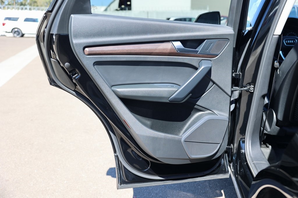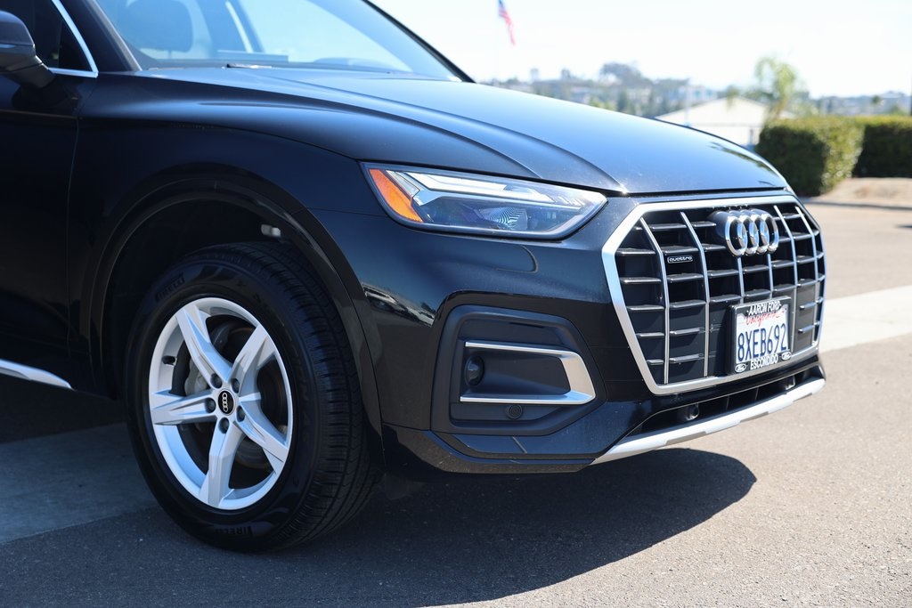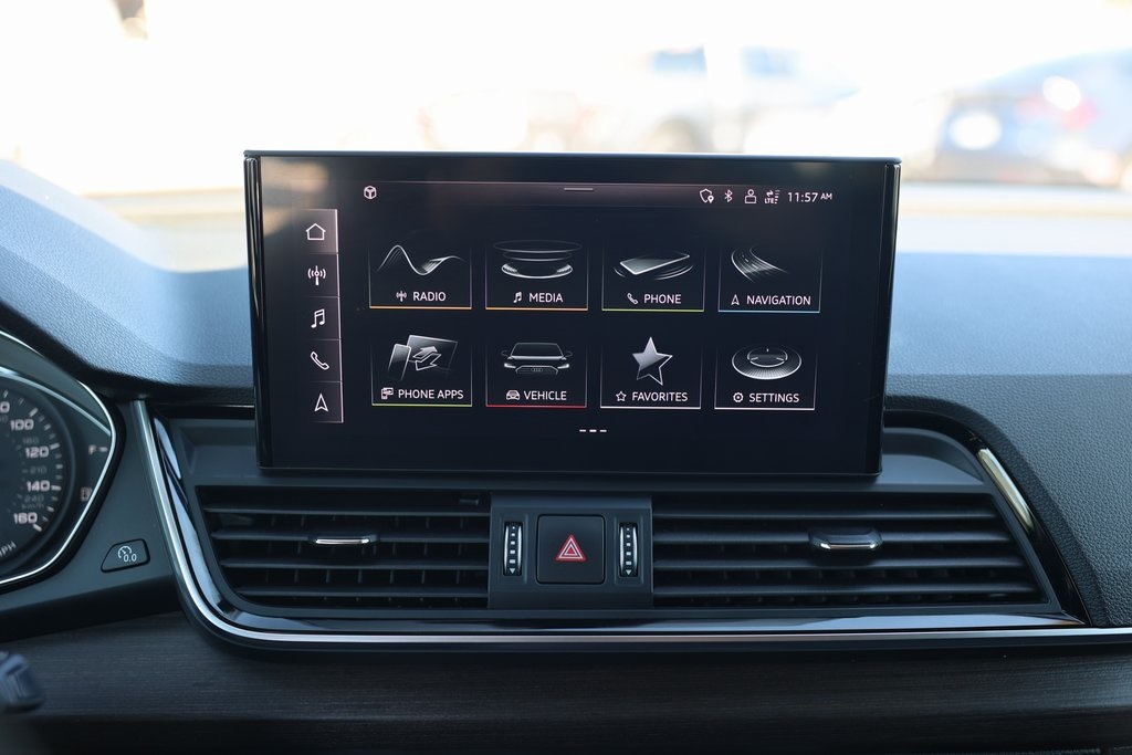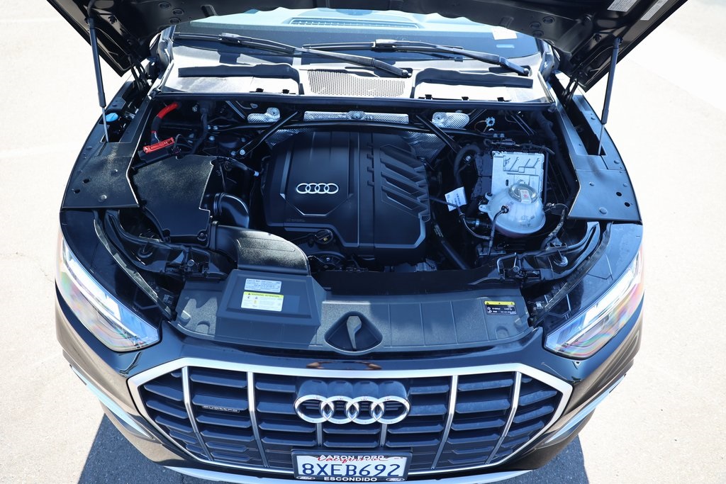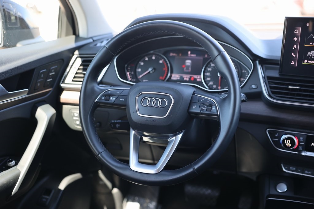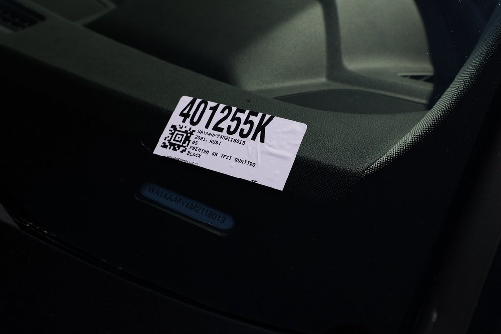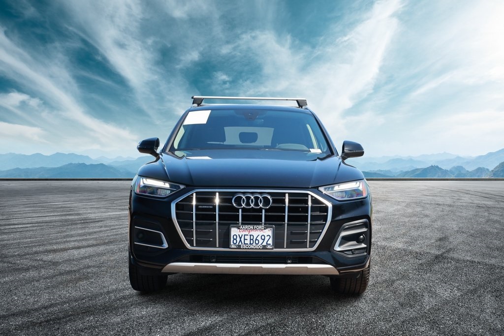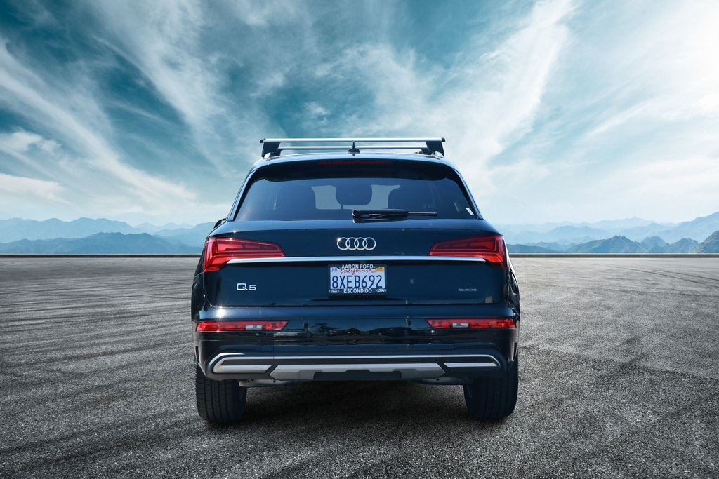 Brilliant Black 2021 Audi Q5 45 Premium quattro quattro 7-Speed Automatic S tronic 2.0L Turbocharged Rock Gray w/Leather Seating Surfaces, 10 Speakers, ABS brakes, Air Conditioning, Alloy wheels, Audi Advanced Key, Auto-Dimming Power Folding Exterior Mirrors, Compass, Convenience Package, Driver Seat Memory, Electronic Stability Control, Exterior Parking Camera Rear, Front dual zone A/C, Front fog lights, Heated door mirrors, Heated front seats, Heated Steering Wheel, Illuminated entry, Low tire pressure warning, Panoramic Sunroof, Power Liftgate, Rear fog lights, Remote keyless entry, SiriusXM All Access Service, Spoiler, Traction control, Wheels: 18" 5-Arm-Star Design.23/28 City/Highway MPG