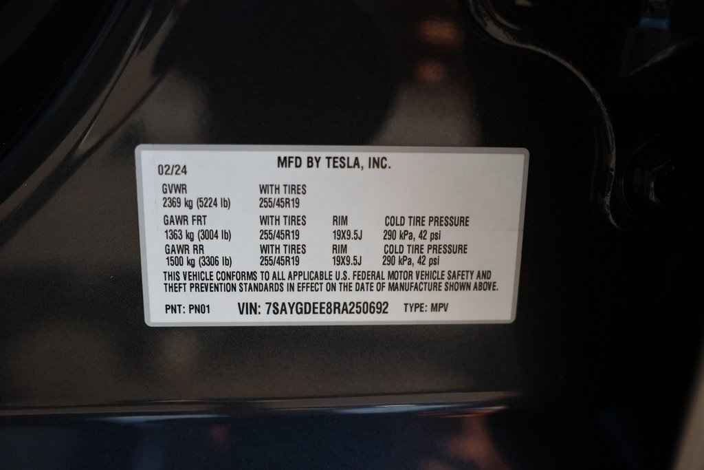 Stealth Gray 2024 Tesla Model Y Long Range AWD 1-Speed Automatic Electric Motor 14 Speakers, Air Conditioning, Brake assist, Electronic Stability Control, Exterior Parking Camera Rear, Front fog lights, Fully automatic headlights, Heated front seats, Heated rear seats, Lane Departure Warning System, Memory seat, Navigation System, Power Liftgate, Radio: Premium Audio System w/13 Speakers, Security system, Vegan Leather Seat Trim, Wheels: 19" x 9.5" Gemini Dark.122/112 City/Highway MPG