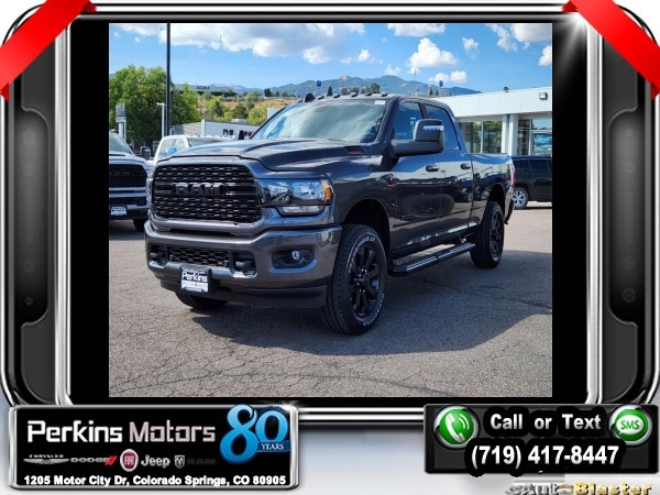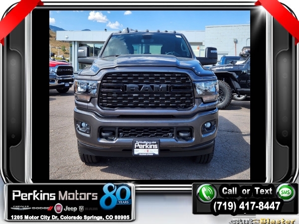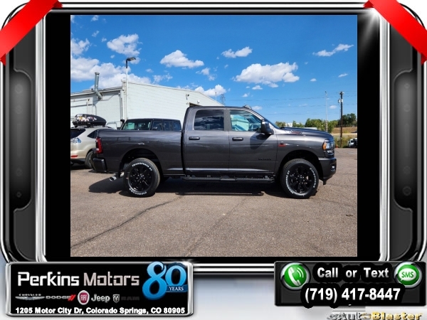 Factory MSRP: $80,010 $14,500 off MSRP! Granite Crystal Metallic Clearcoat 2024 Ram 2500 Big Horn 4WD 6-Speed Automatic Cummins 6.7L I6 Turbodiesel<br><br>Check us out at www.perkinsmotors.com to see our specials! Since opening our doors in 1944, we’ve been proud to serve Colorado Springs, CO, and the surrounding areas of Pueblo, Castle Rock and Denver, CO. Throughout this time of being family owned for 80 years, we’ve maintained a firm commitment to our customers: to offer a wide selection of New Chrysler, Dodge, Fiat, Jeep, and Ram vehicles and quality pre-owned vehicles, and provide a quick, no-hassle car-buying process that ensures everyone drives off the lot satisfied with their purchase.<br><br>Bed Utility Group (LED Bed Lighting, MOPAR Deployable Bed Step, and MOPAR Spray In Bedliner), Cold Weather Group (Engine Block Heater and MOPAR Winter Front Grille Cover), Heated Seats & Wheel Group (Heated Front Seats, Heated Steering Wheel, Leather Wrapped Steering Wheel, and Steering Wheel Mounted Audio Controls), Level 1 Equipment Group (2 Way Rear Headrest Seat, 2nd Row In Floor Storage Bins, 4 Way Front Headrests, 40/20/40 Split Bench Seat, 4G LTE Wi-Fi Hot Spot, 8.4 Touchscreen Display, Apple CarPlay, Auto Power-Folding Mirrors, Big Horn IP Badge, Black Exterior Mirrors, Bluetooth Handsfree Phone & Audio, Center Hub, Connectivity - US/Canada, Dual Glove Boxes, Exterior Mirrors Courtesy Lamps, Exterior Mirrors w/Heating Element, Exterior Mirrors w/Supplemental Signals, Foam Bottle Insert (Door Trim Panel), Footwell Courtesy Lamp, For Details, Visit DriveUconnect.com, For More Info, Call 800-643-2112, Forward & Reverse Utility Lights, Front Armrest w/Cupholders, Front Center Seat Cushion Storage, Front Fog Lamps, Front Seat Back Map Pockets, Global Telematics Box Module (TBM), Glove Box Lamp, Google Android Auto, GPS Antenna Input, Integrated Center Stack Radio, Integrated Voice Command w/Bluetooth, Locking Lower Glove Box, Manual Adjust 4-Way Front Passenger Seat, Mirror Running Lights, Power 2-Way Driver Lumbar Adjust, Power Adjust 8-Way Driver Seat, Power Adjust Mirrors, Power Adjustable Convex Aux Mirrors, Power Heated Fold Telescope Mirrors, Power Telescoping Mirrors, Rear 60/40 Folding Seat, Rear Dome w/On/Off Switch Lamp, Remote USB Port - Charge Only, Selectable Tire Fill Alert, SiriusXM Radio Service, SiriusXM Satellite Radio, Storage Tray, and Wheels: 18 x 8.0 Polished Aluminum), Night Edition (Black Exterior Truck Badging, Black Headlamp Bezels, Black Interior Accents, Black Ram Head Tailgate Badge, Black Tail Lamp Bezels, Black Wheel Center Hub, Body Color Door Handles, Body Color Grille Surround, Gloss Black Nostrils/MIC Black Grille, Painted Front Bumper, Painted Rear Bumper, ParkSense Front/Rear Park Assist System, and Wheels: 20 x 8.0 Black Painted Aluminum), Protection Group (Tow Hooks), Quick Order Package 2HZ Big Horn, 12 Touchscreen Display, 220 Amp Alternator, 3.73 Axle Ratio, 4-Wheel Disc Brakes, 5th Wheel/Gooseneck Towing Prep Group, 6 Speakers, 9 Alpine Speakers w/Subwoofer, ABS brakes, Active Noise Control System, Air Conditioning, Air Conditioning ATC w/Dual Zone Control, Alexa Built-In, All R1 High Radios, All Radio Equipped Vehicles, Auto Level Rear Air Suspension, Blind Spot & Cross Path Detection, Brake assist, Bumpers: chrome, Center Stack Storage Drawer, Clearance Lamps, Cloth 40/20/40 Bench Seat, Compass, Connected Travel & Traffic Services, Cruise Control, Dash Pass Thru Wire Circuits, Delay-off headlights, Disassociated Touchscreen Display, Driver door bin, Dual front impact airbags, Dual front side impact airbags, Electronic Stability Control, Electronically Controlled Throttle, Emergency communication system: SiriusXM Guardian, Front anti-roll bar, Front Center Armrest w/Storage, Front License Plate Bracket, Sale price includes all manufacture's incentives and dealer discounts. Sale price not available on lease or compatible with special APR. $1000 - 2024 Bonus Cash . Exp. 0