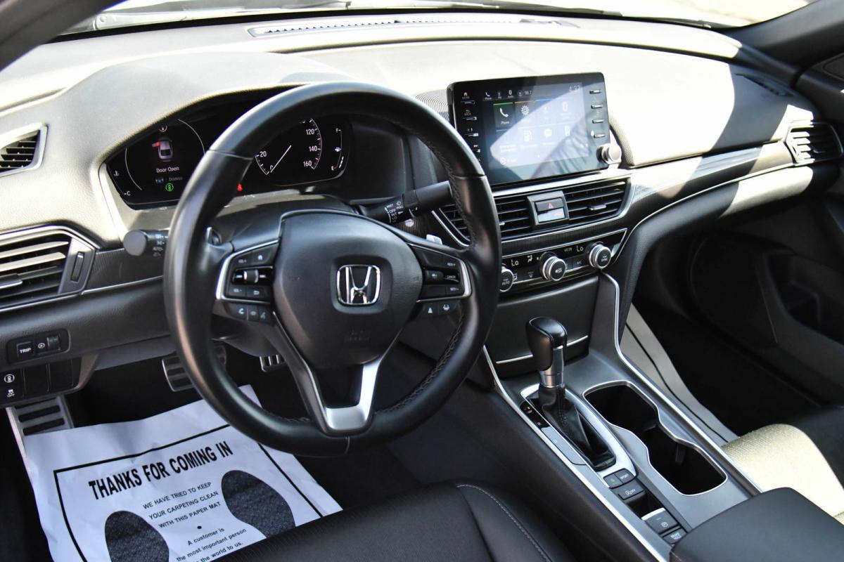 Boasts 35 Highway MPG and 29 City MPG! This Honda Accord Sedan delivers a Intercooled Turbo Regular Unleaded I-4 1.5 L/91 engine powering this Variable transmission. Wheels: 19 Machine-Finished Alloy w/Black Inserts, Vehicle Stability Assist (VSA) Electronic Stability Control (ESC), Valet Function.*This Honda Accord Sedan Comes Equipped with These Options *Trunk Rear Cargo Access, Trip Computer, Transmission: Continuously Variable -inc: sport mode and paddle shifters, Tires: 235/40R19 96V AS, Strut Front Suspension w/Coil Springs, Steel Spare Wheel, Speed Sensitive Variable Intermittent Wipers, Side Impact Beams, Seats w/Leatherette Back Material, Remote Releases -Inc: Power Cargo Access.